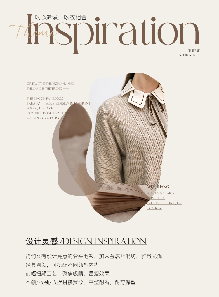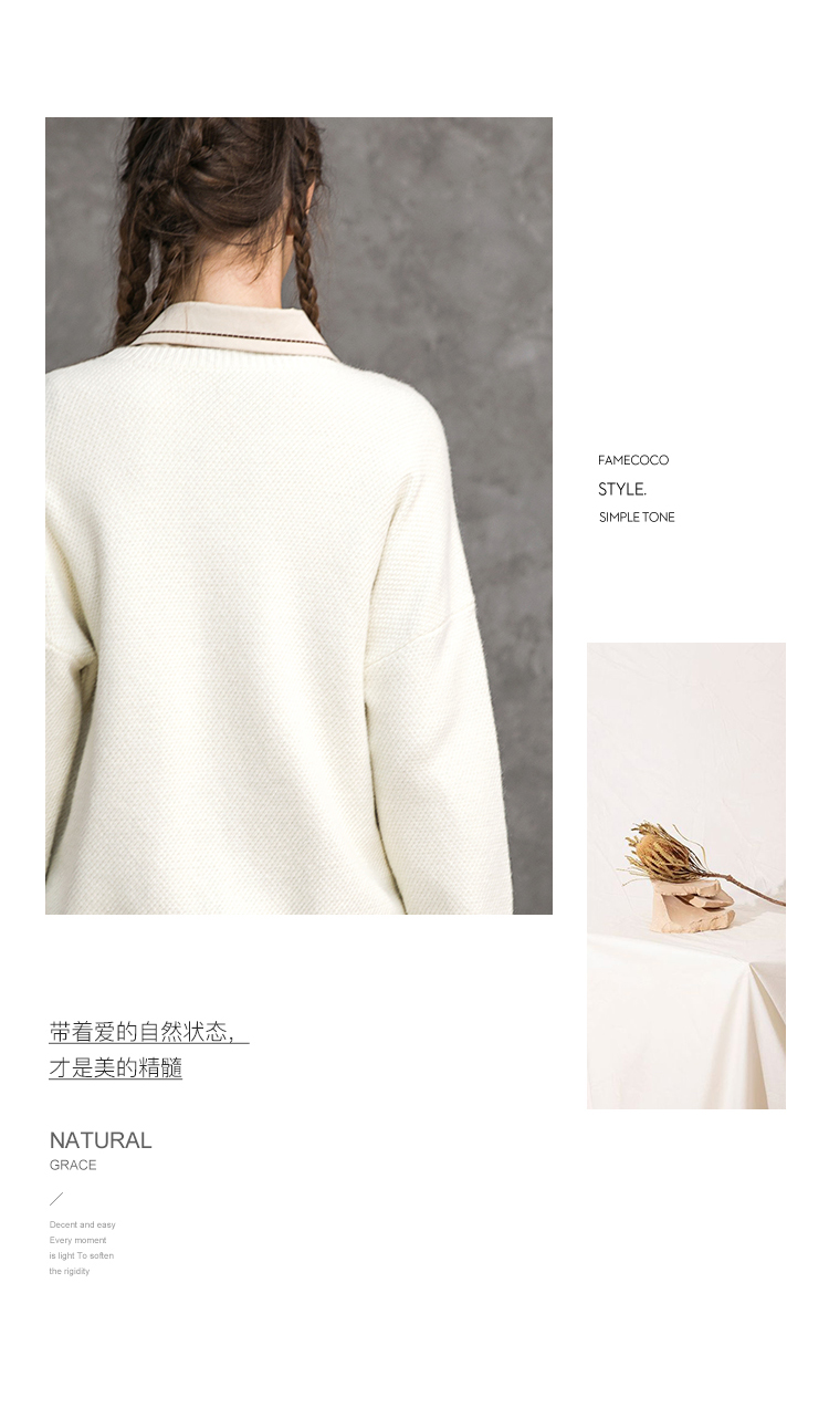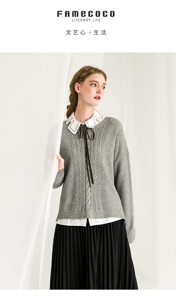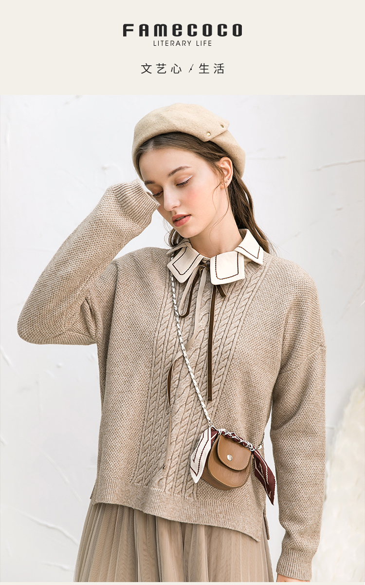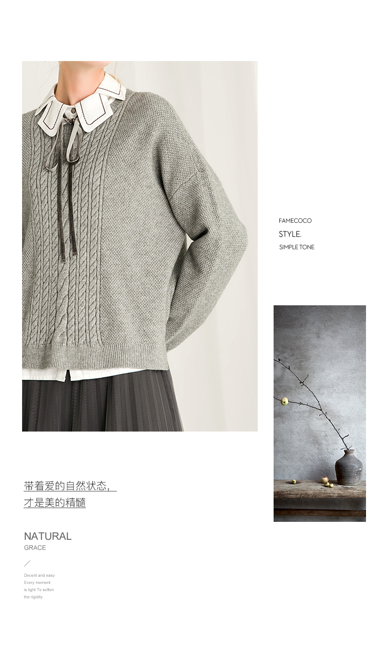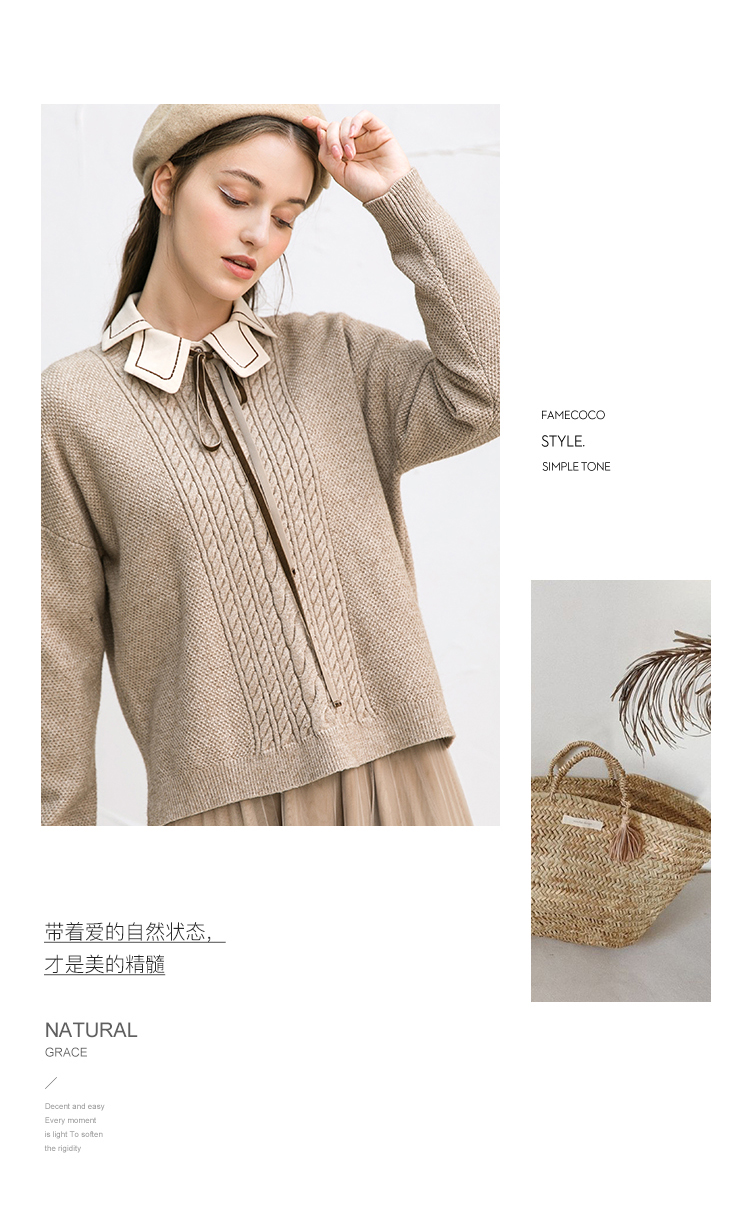 Famecoco范可儿毛衣女秋冬宽松羊毛针织上衣F218DB003