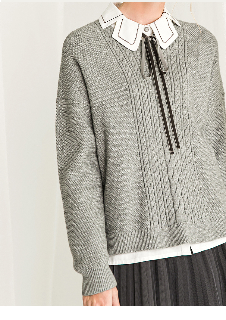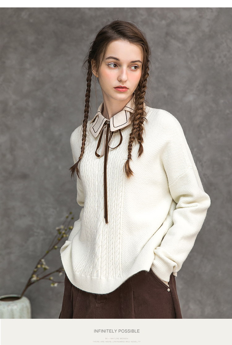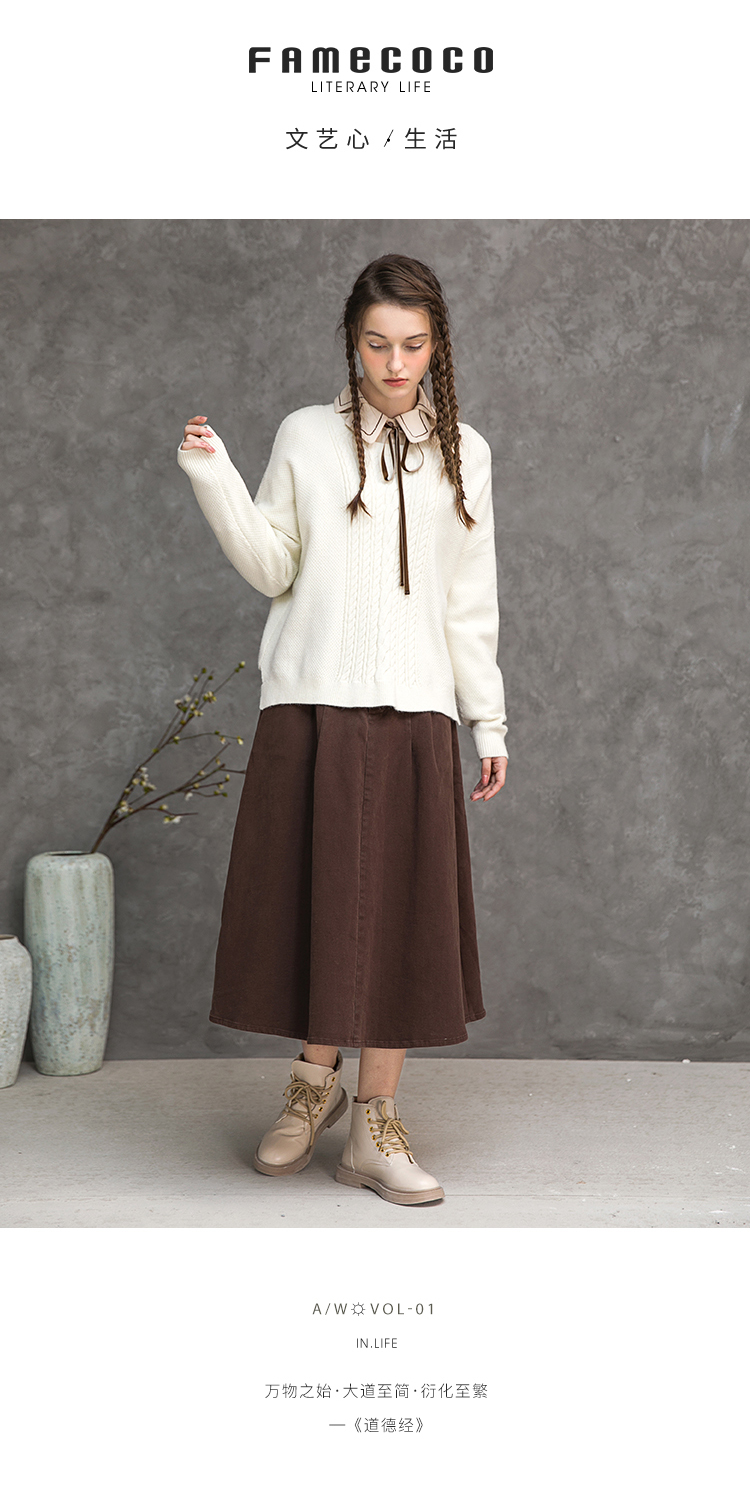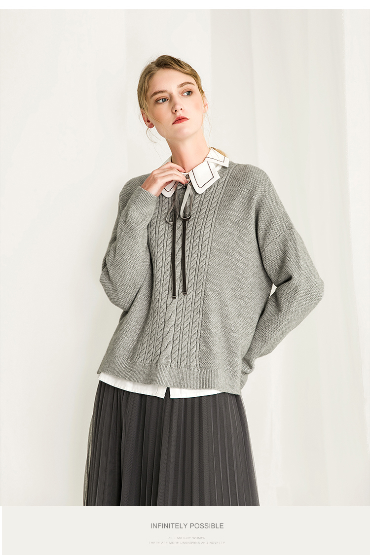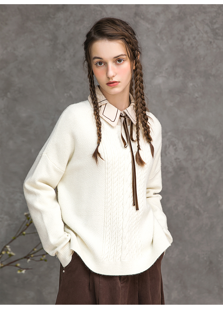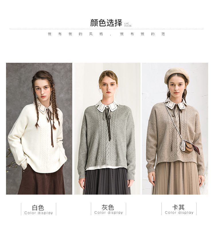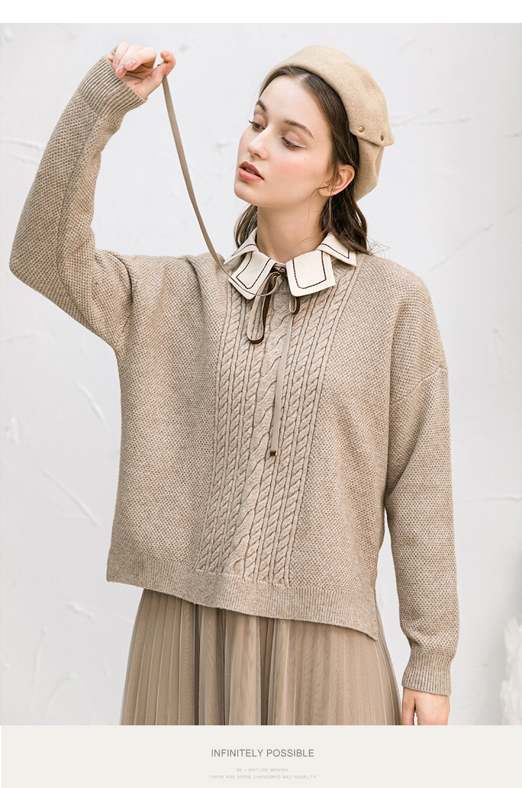 Famecoco范可儿毛衣女秋冬宽松羊毛针织上衣F218DB003