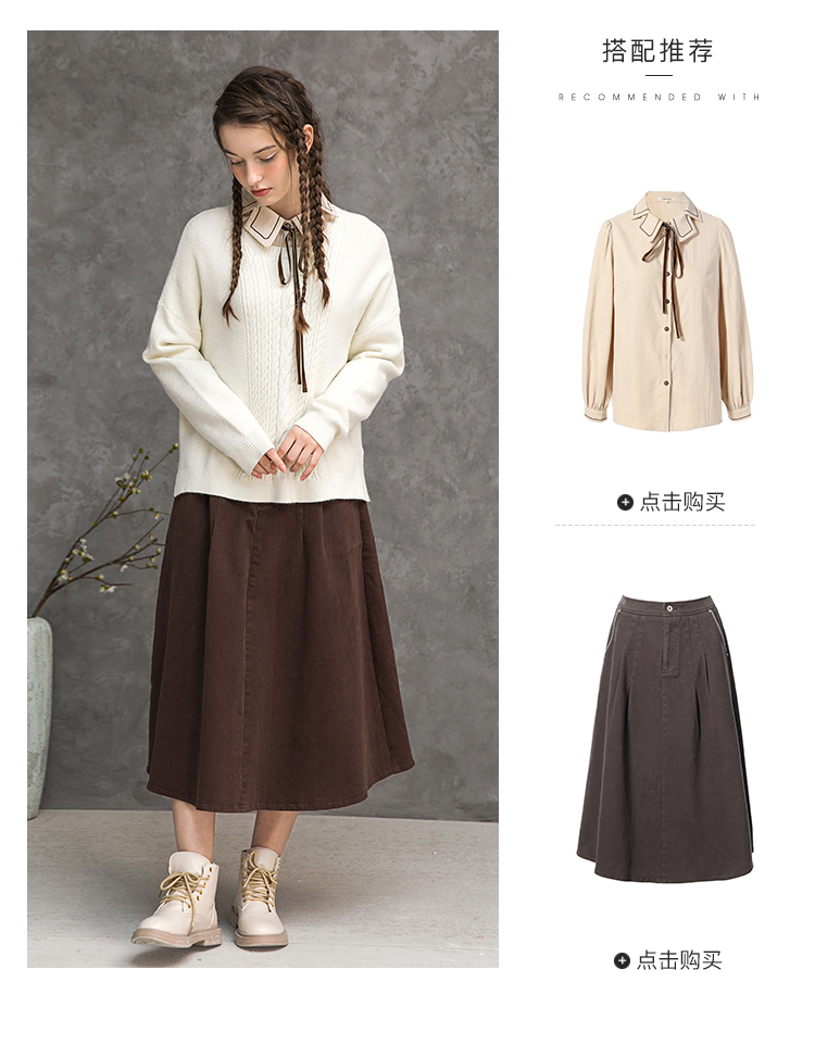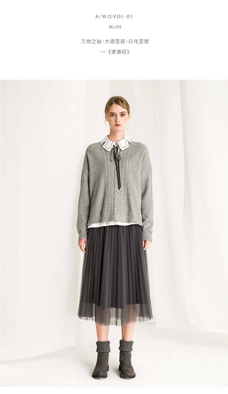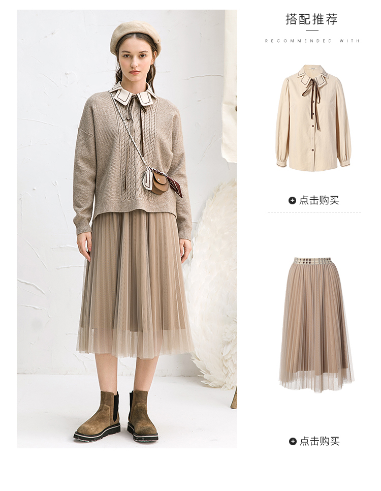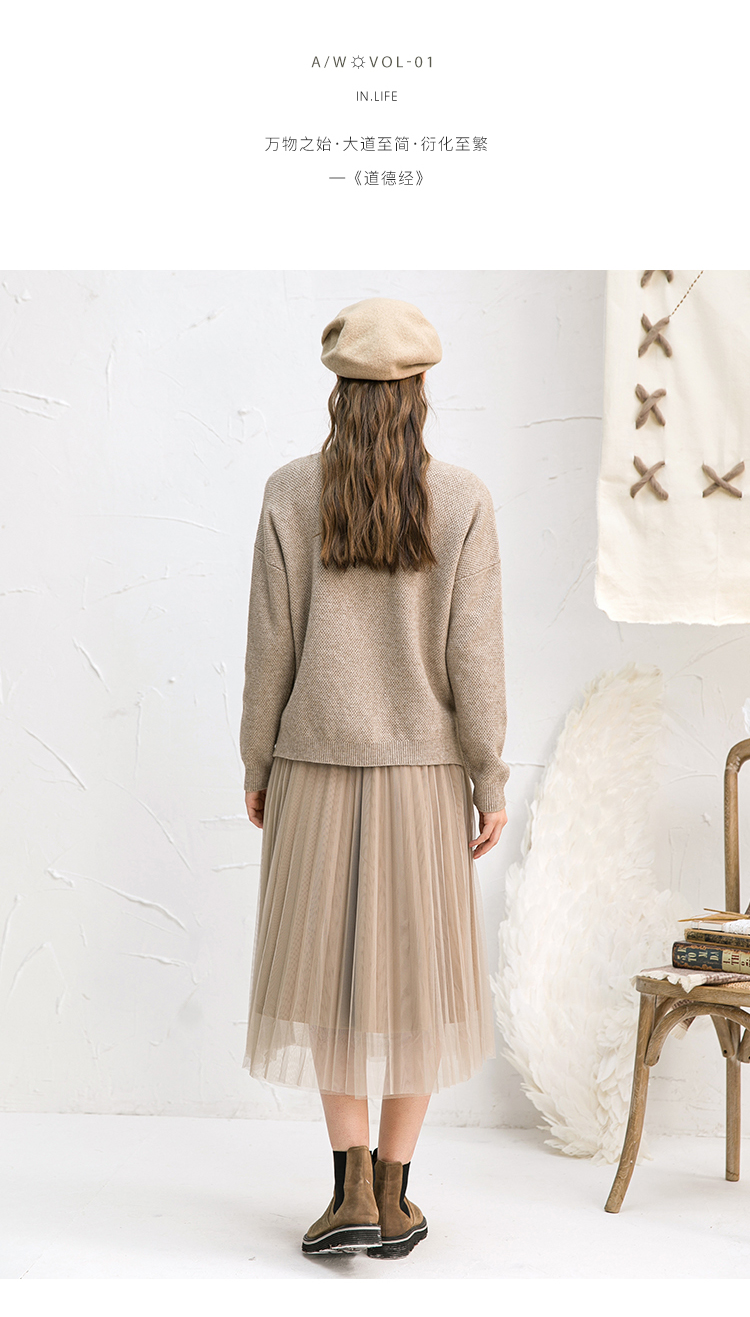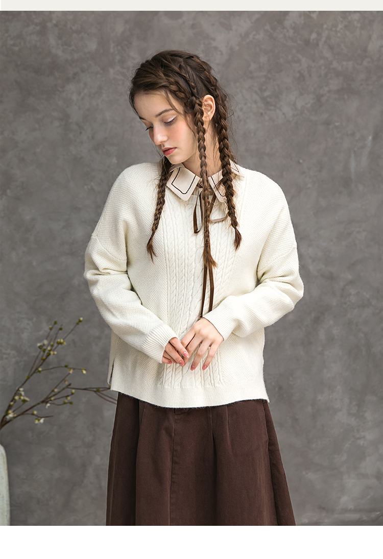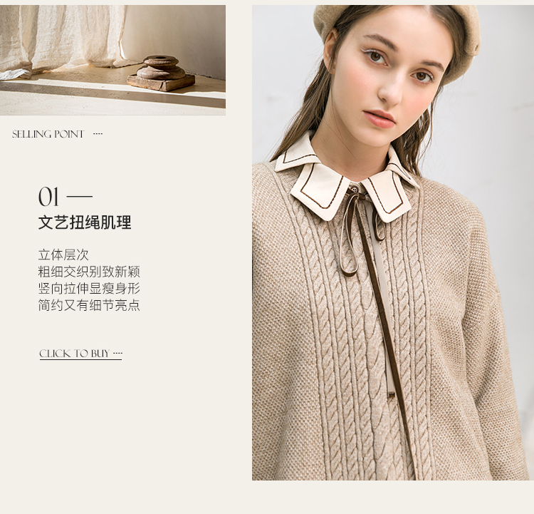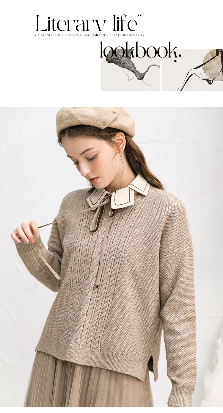 Famecoco范可儿毛衣女秋冬宽松羊毛针织上衣F218DB003