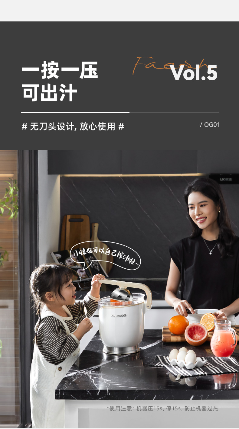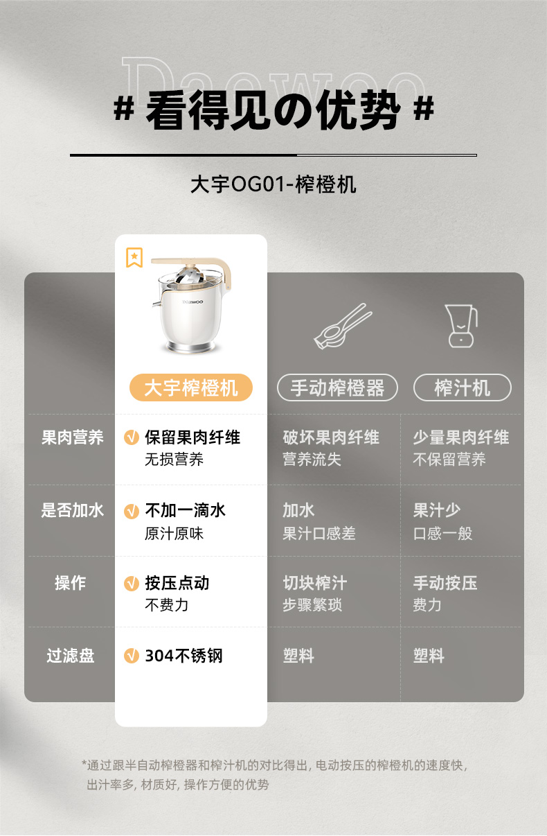 大宇榨橙机OG01不加一滴水 原汁鲜榨