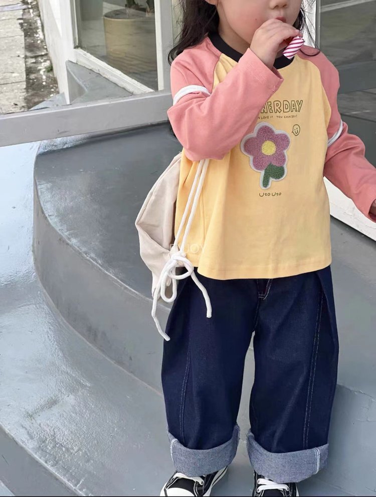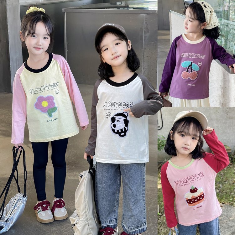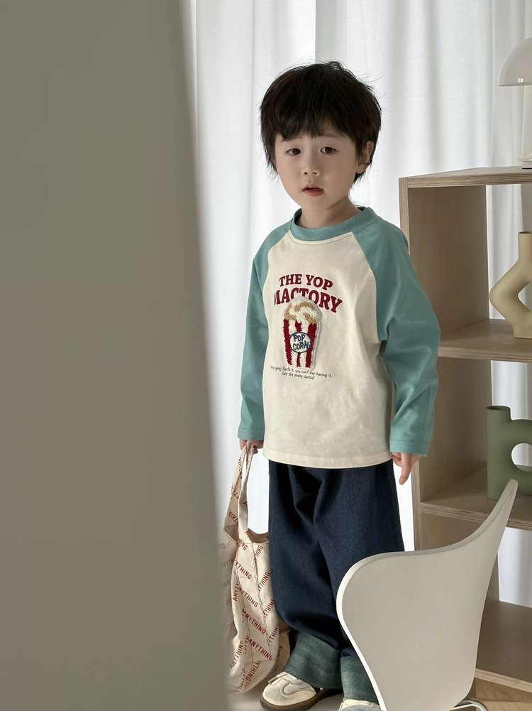 【商品名称】:儿童10色毛巾绣插肩T恤