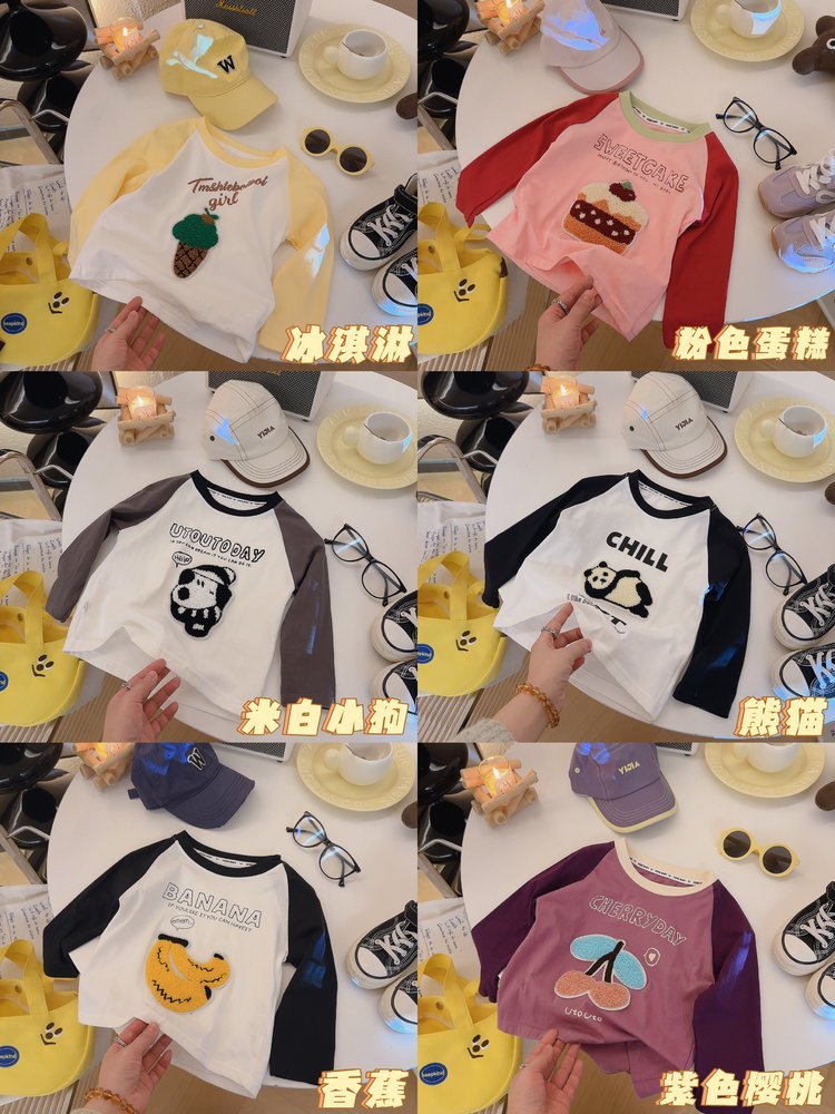 宝妈闭眼入❗100%棉儿童T恤❗【儿童10色毛巾绣插肩T恤】小朋友超爱的卡通图案❗性价比超高❗️80-160码❗️男女宝同款👏