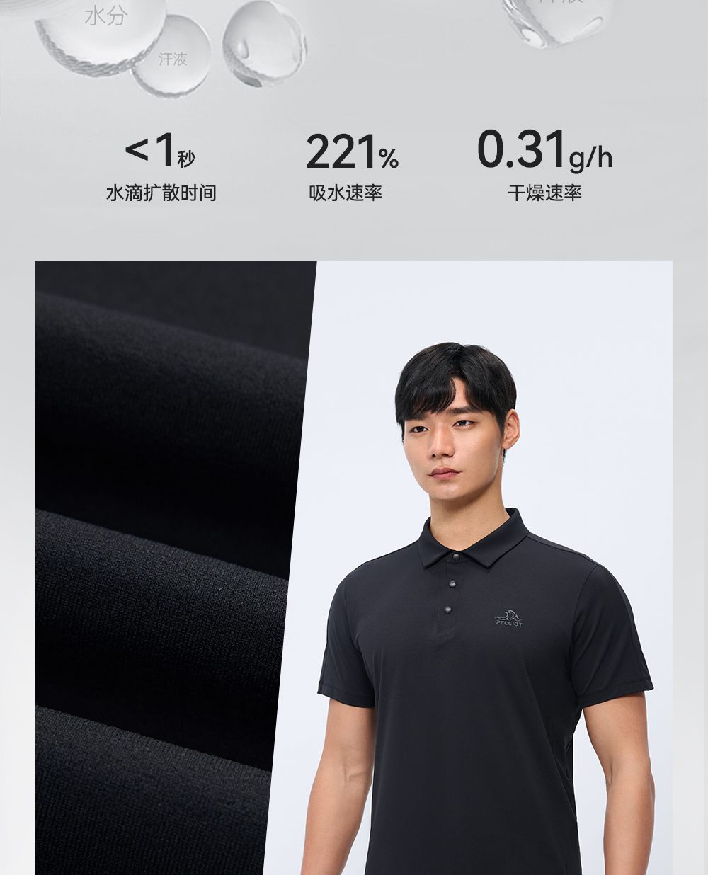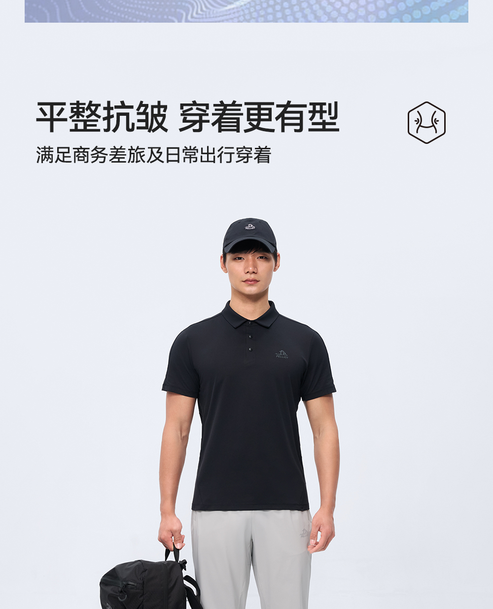 伯希和户外速干T恤男25新款保罗衫抗菌运动半袖高弹轻量防晒短袖