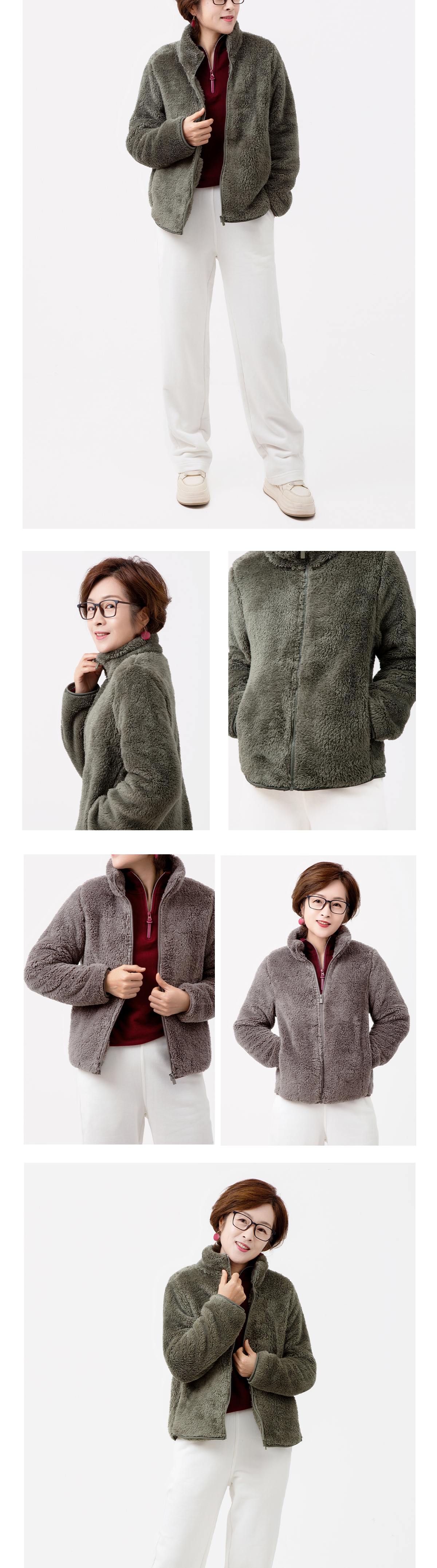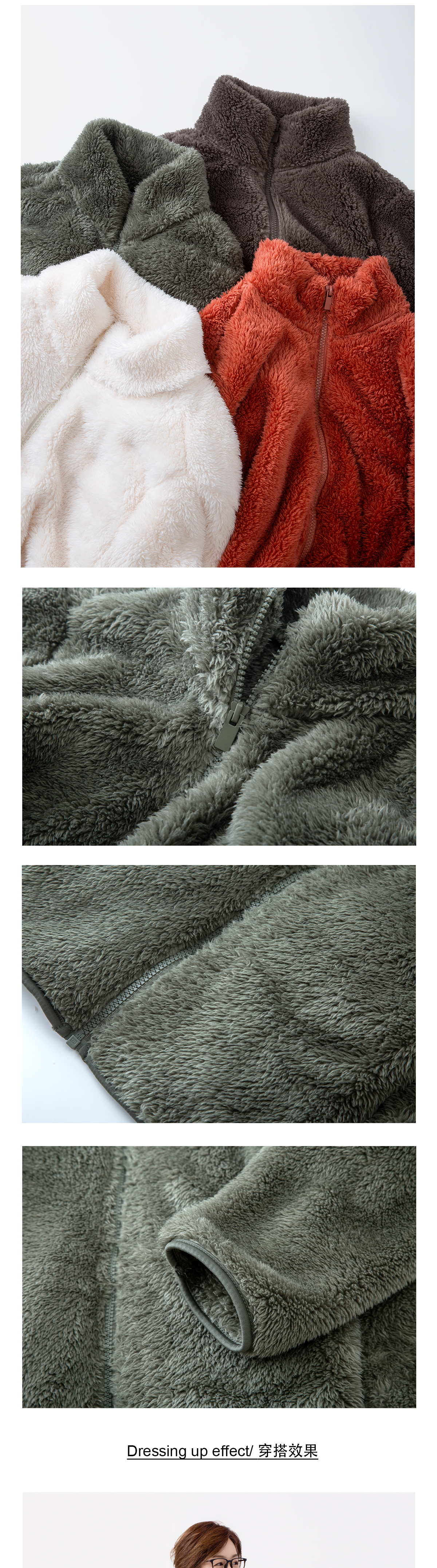 加厚长绒拉链外套