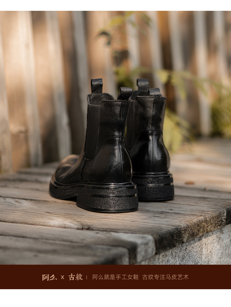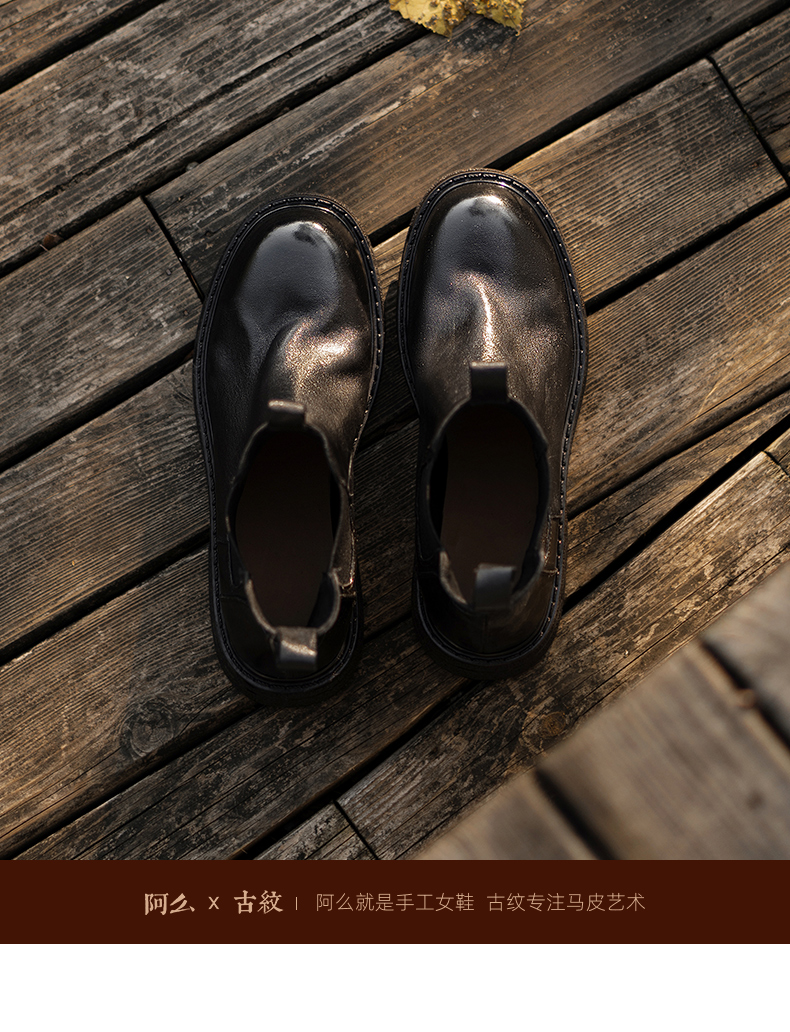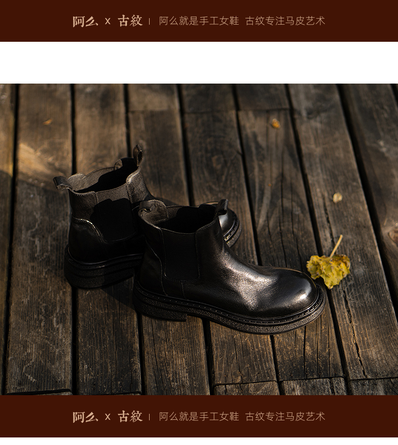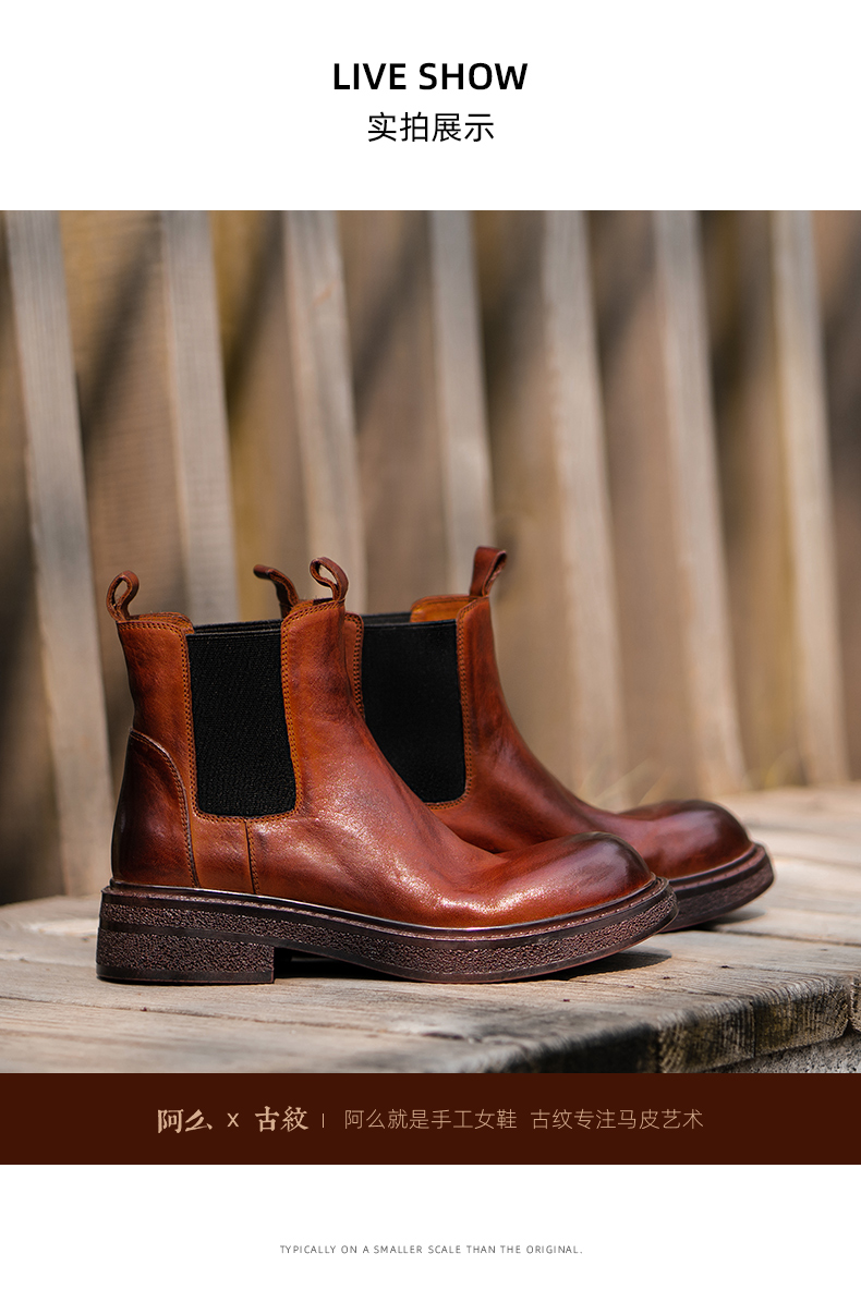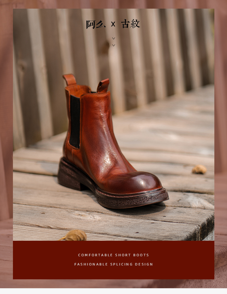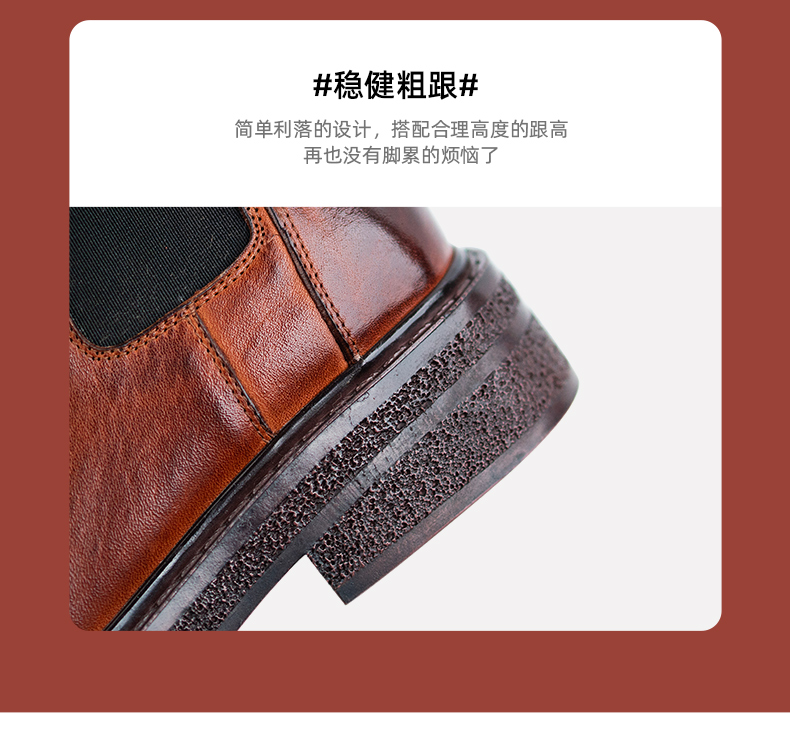 【阿么古纹马皮鞋】英伦风粗跟切尔西靴秋冬撞色拼接百搭短靴3.5CM