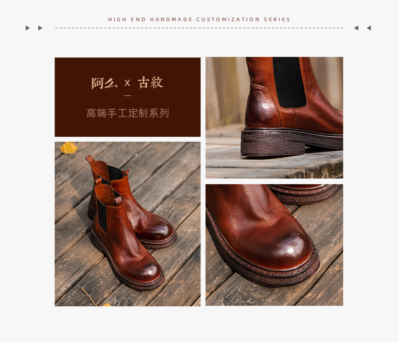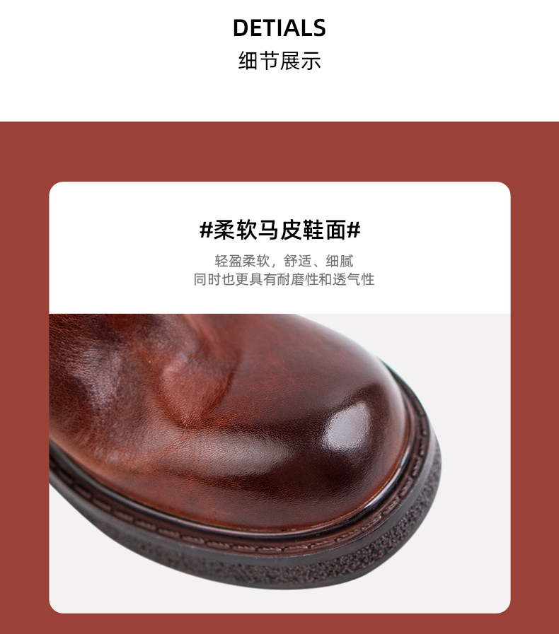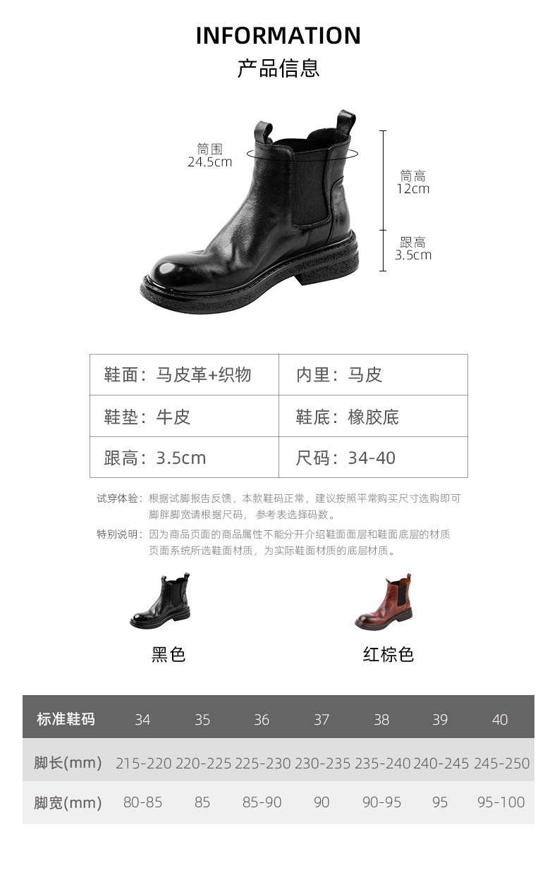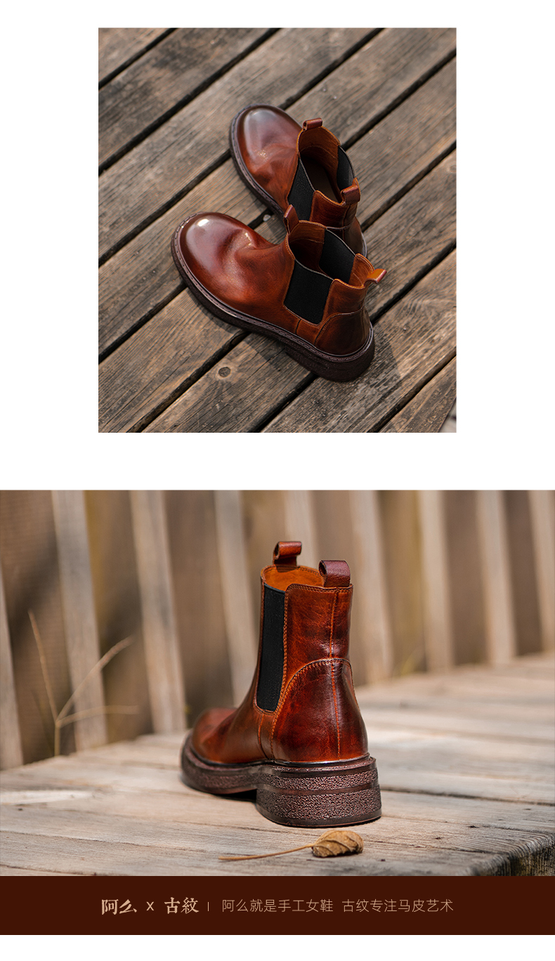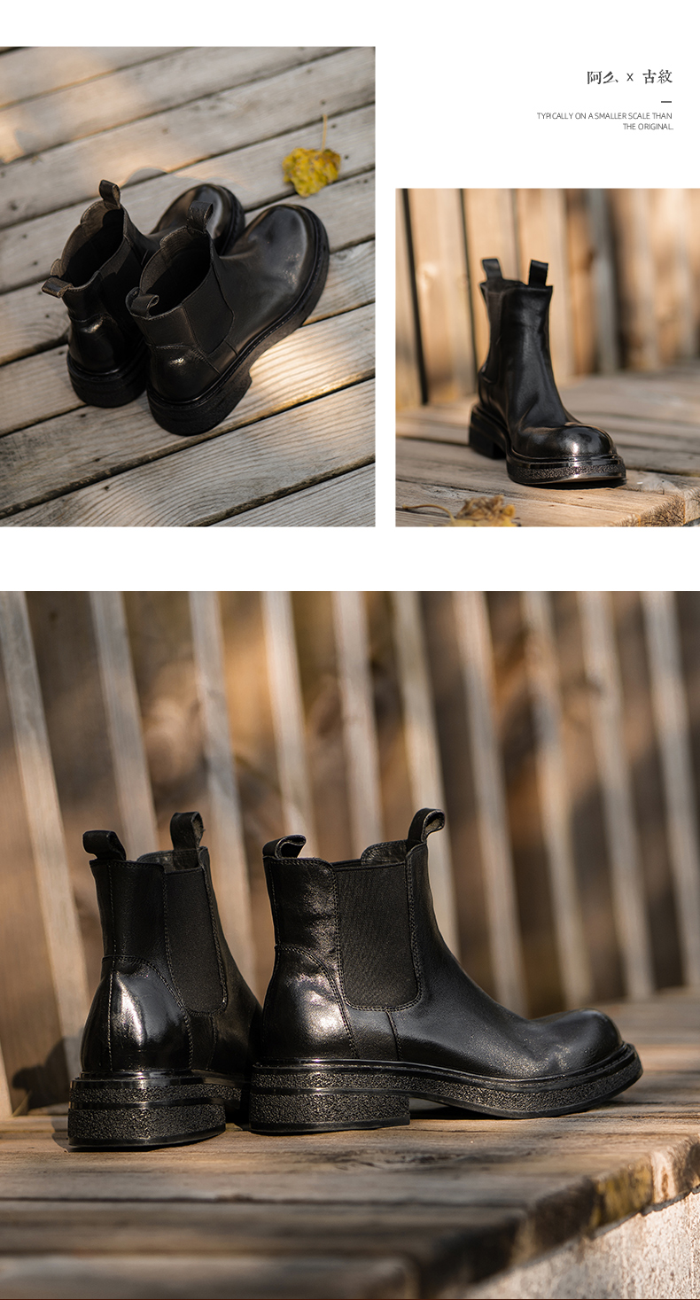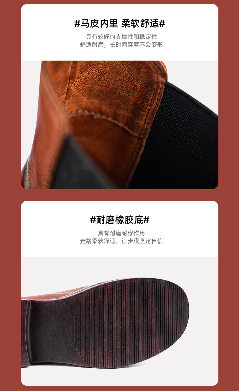 【阿么古纹马皮鞋】英伦风粗跟切尔西靴秋冬撞色拼接百搭短靴3.5CM