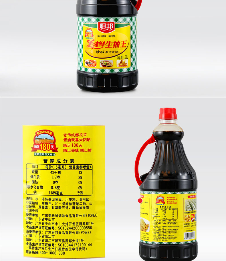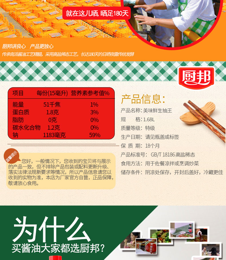 厨邦 酱油 美味鲜生抽王 特级酿造 180天 炒菜凉拌蒸煮炖烧 1.68L