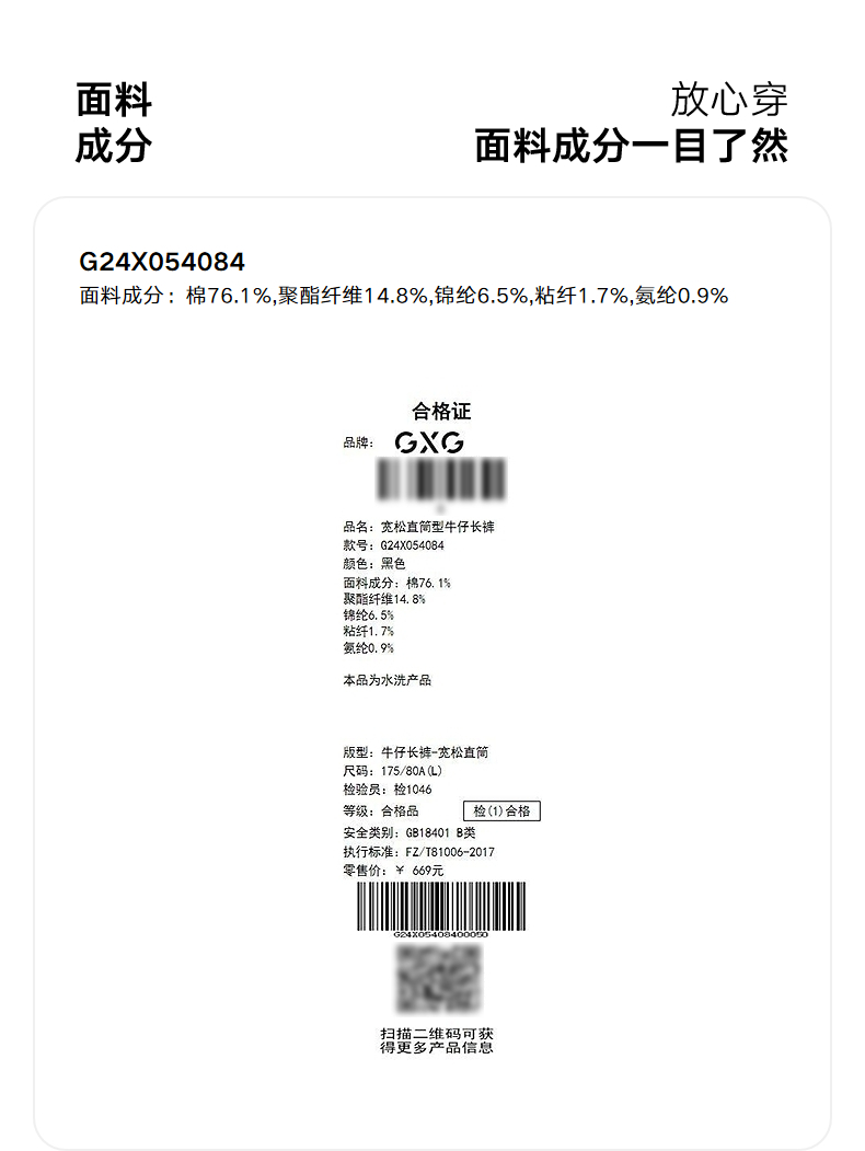GXG男装 宽松直筒牛仔裤休闲长裤 24年冬新品G24X054084