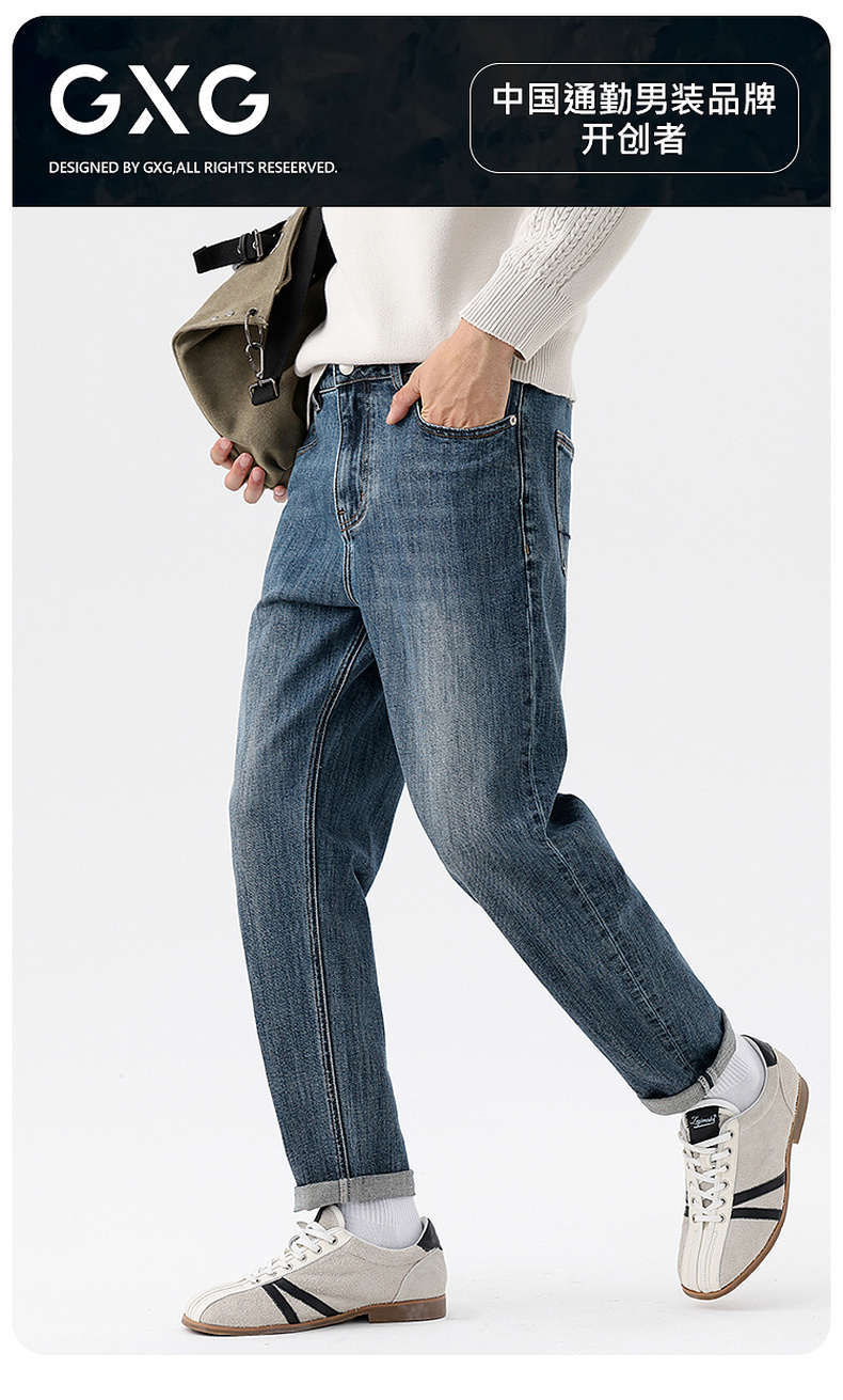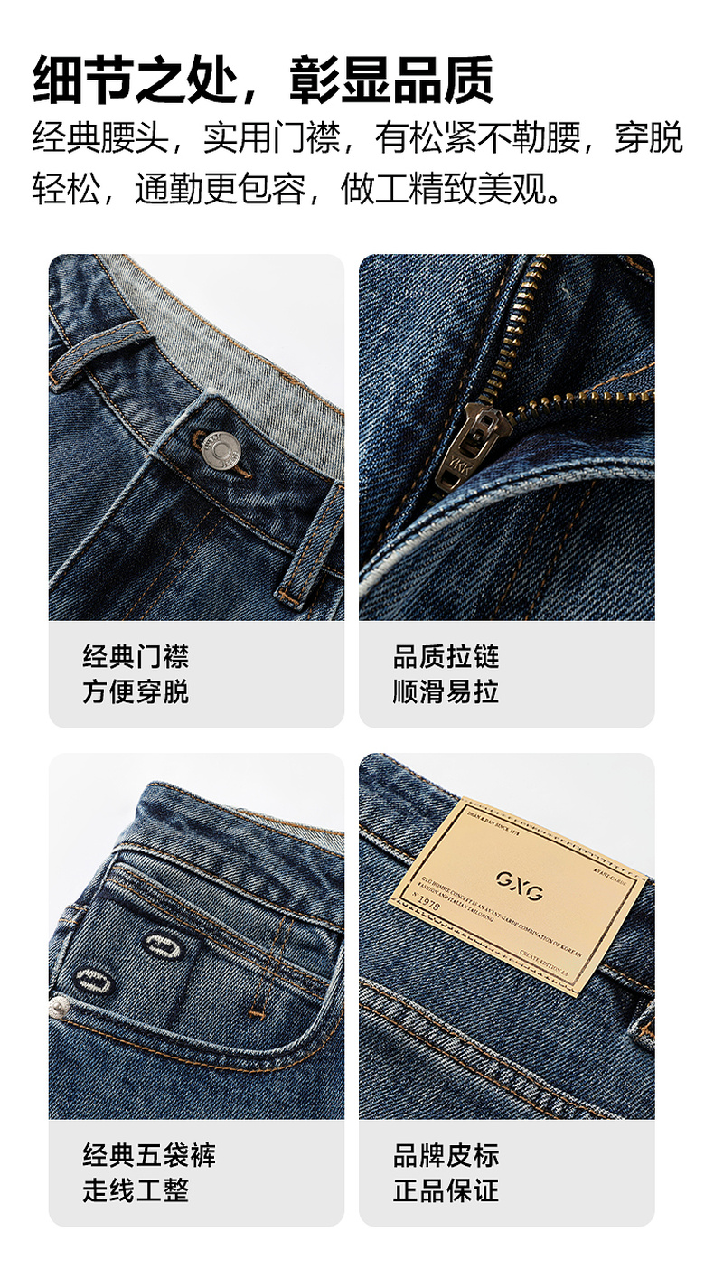 GXG男装25秋季日常通勤纯色简约百搭休闲时尚亲肤男式直筒牛仔裤K&C