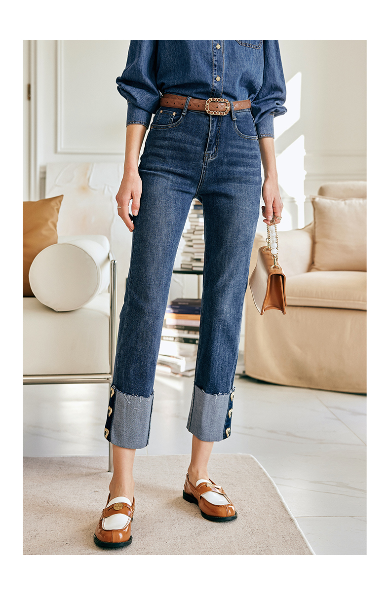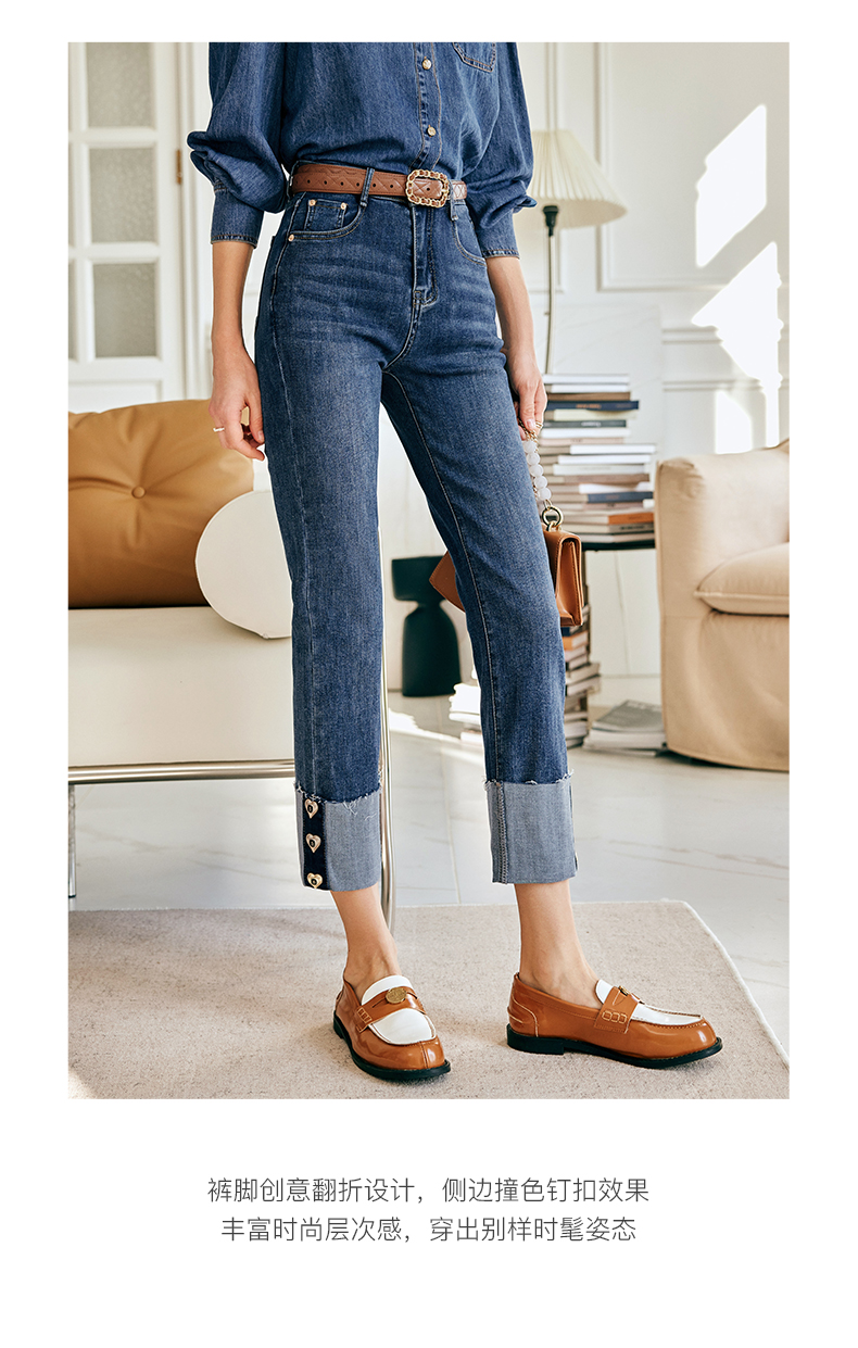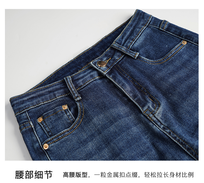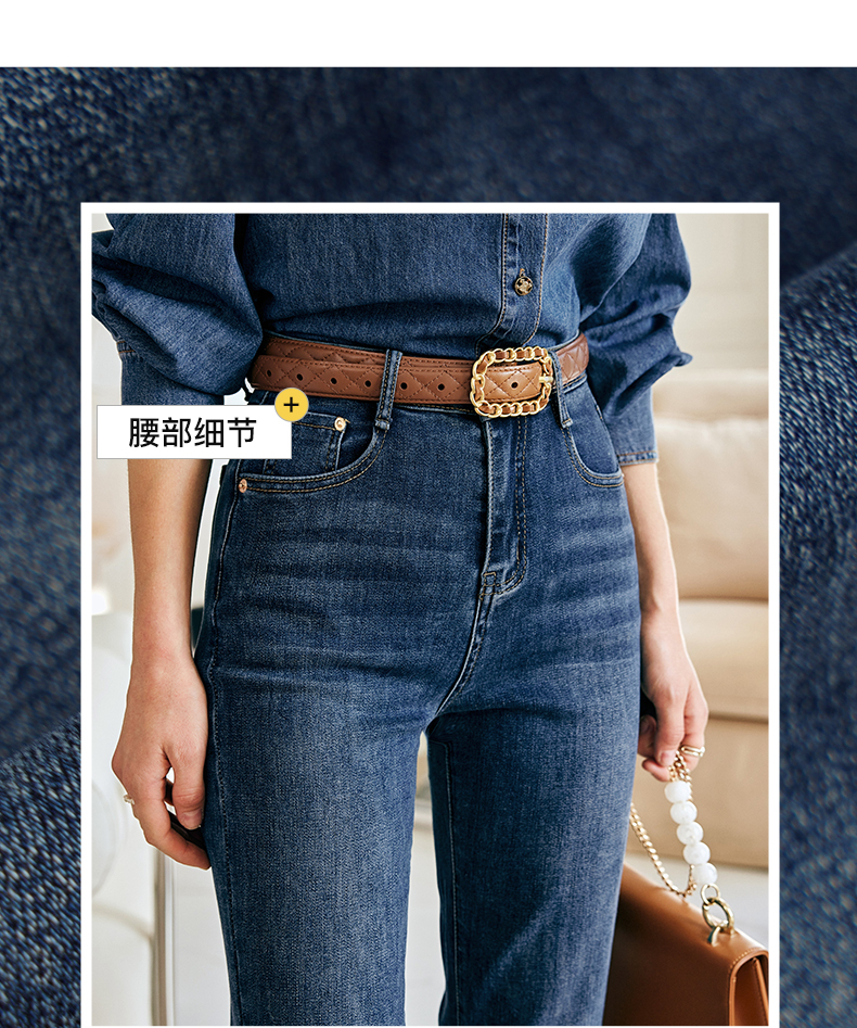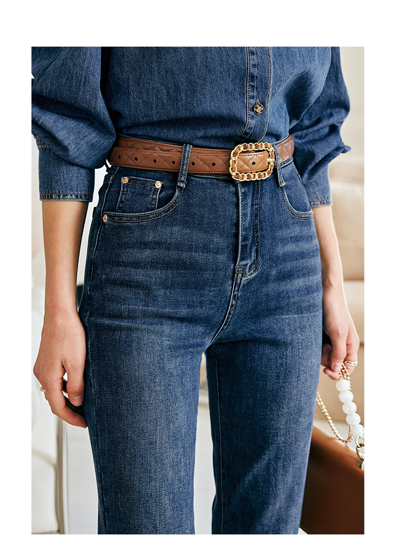 OLrain欧芮儿法式蓝色牛仔裤女春季2023新款高腰显瘦紧身小脚裤