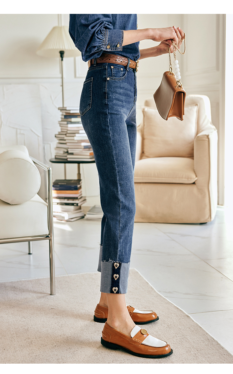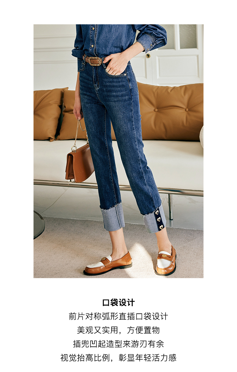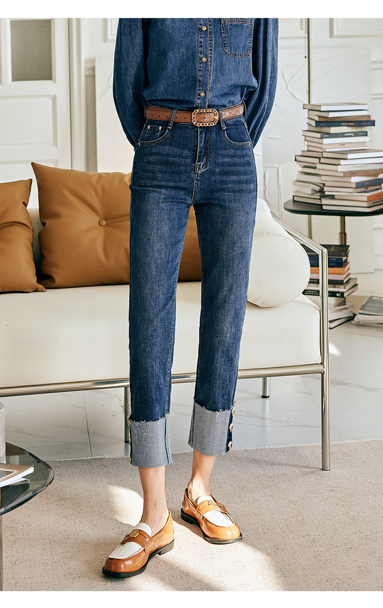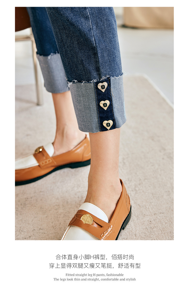 OLrain欧芮儿法式蓝色牛仔裤女春季2023新款高腰显瘦紧身小脚裤