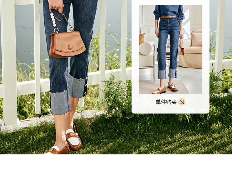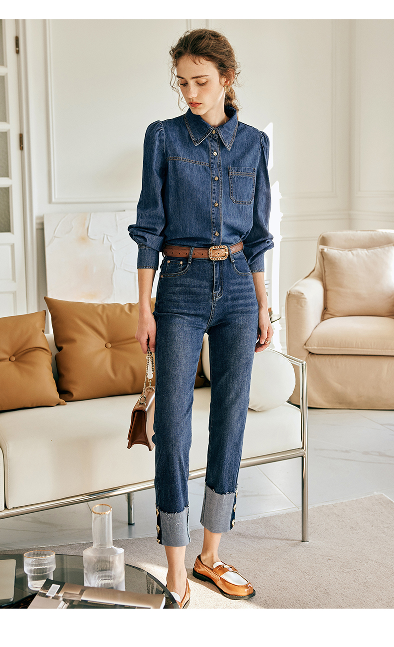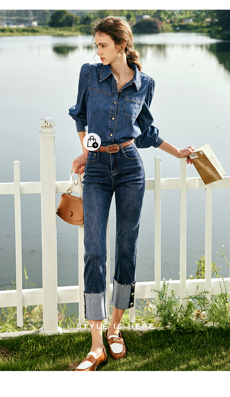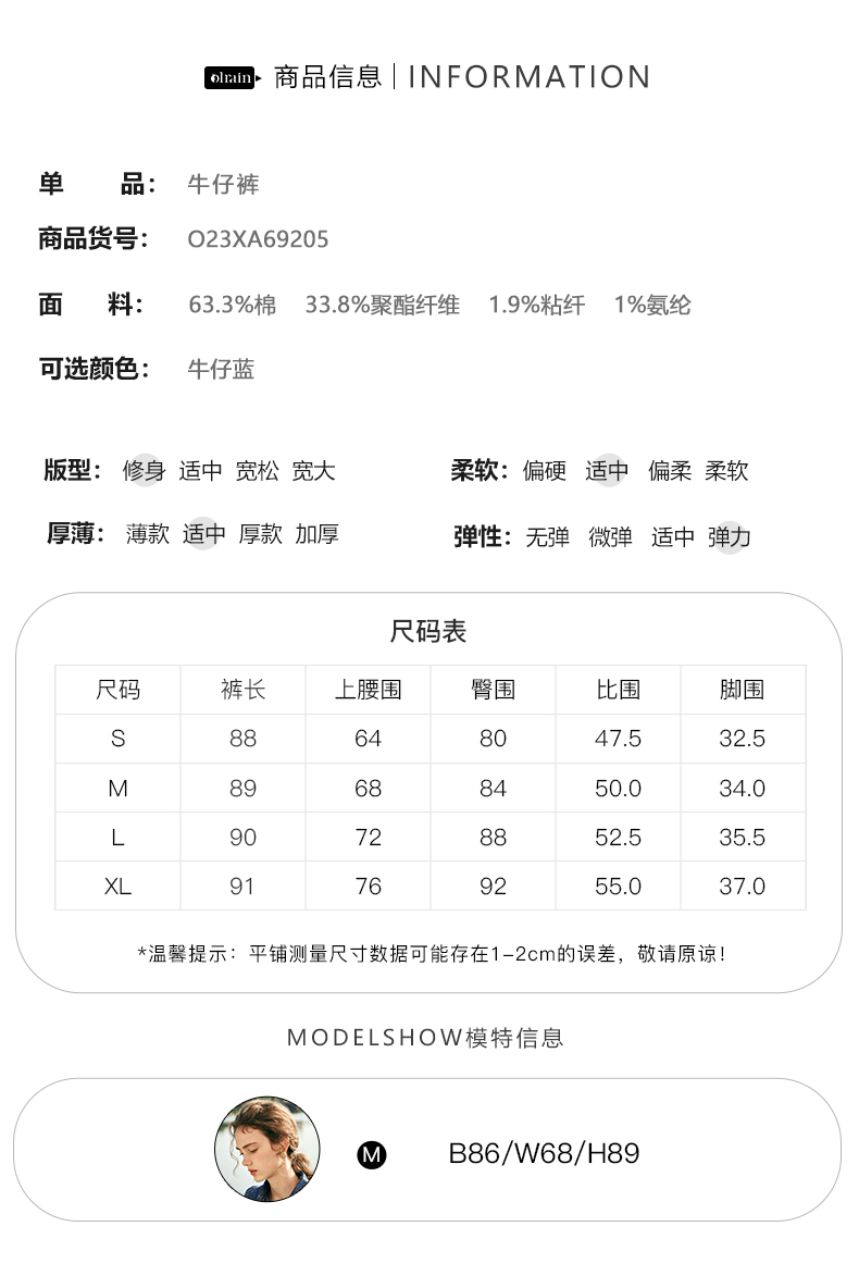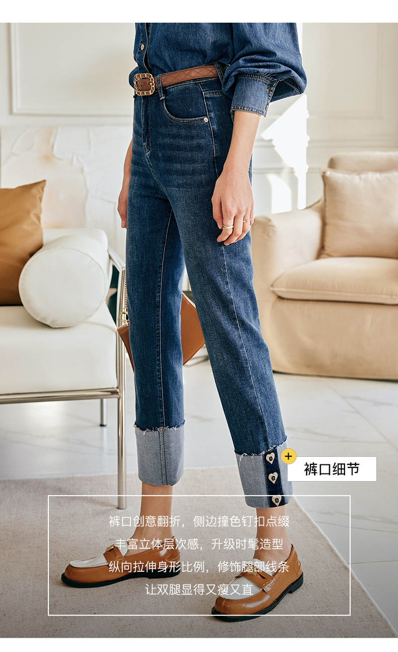 OLrain欧芮儿法式蓝色牛仔裤女春季2023新款高腰显瘦紧身小脚裤