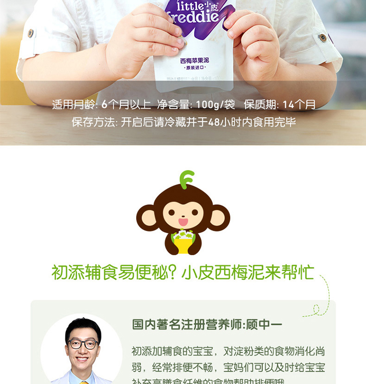英国little freddie小皮西梅苹果泥 100g