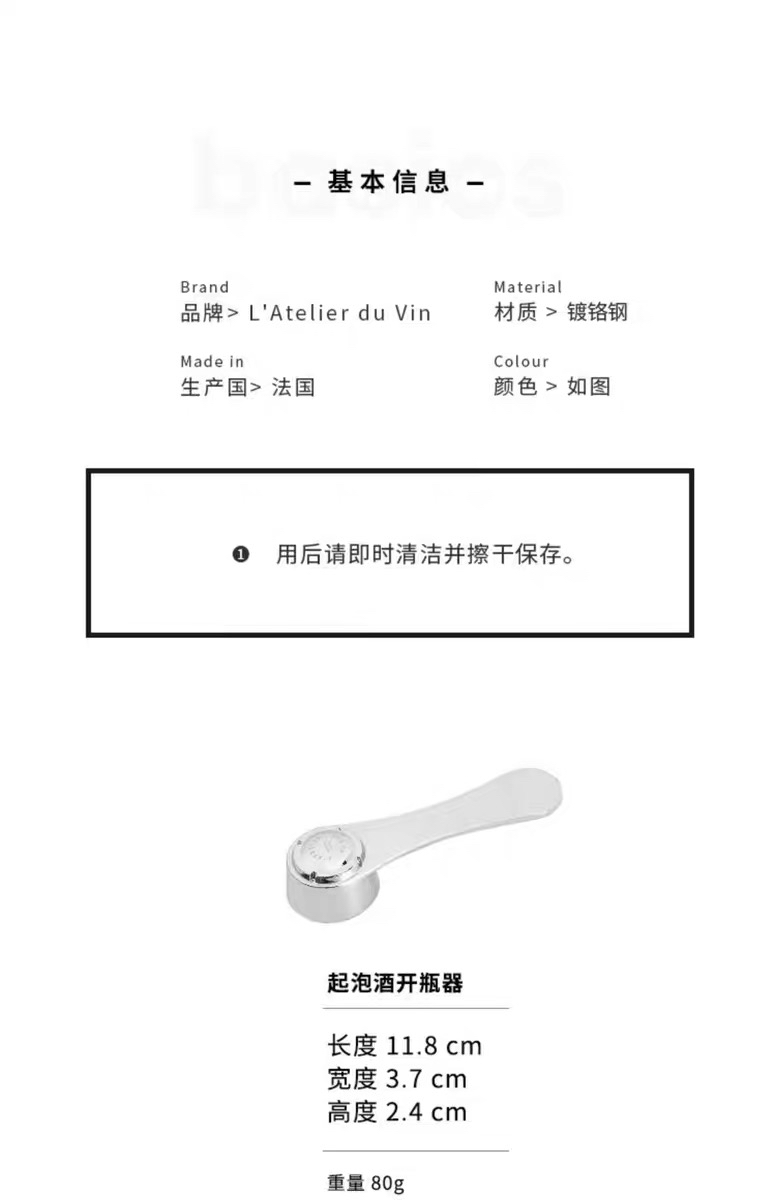 法国L'Atelier du Vin单柄旋转香槟开瓶器 家用便携气泡酒起瓶器