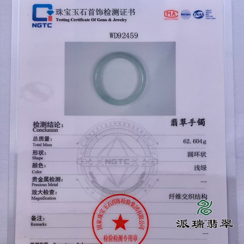派瑞翡翠 翡翠手镯 糯种 浅绿