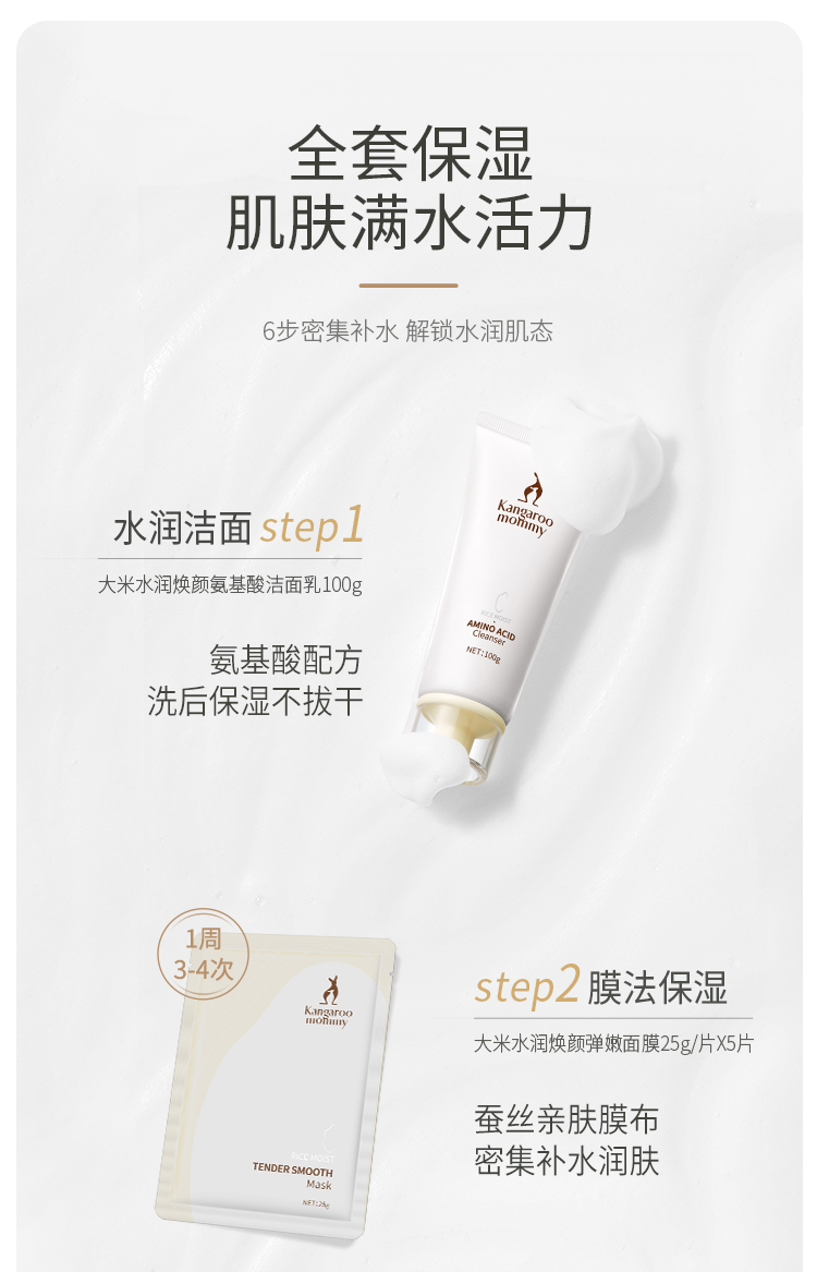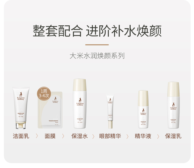 【补水保湿5件套】 干皮必入 舒缓干燥 大米精粹 改善暗沉肌肤 大米水润焕颜5件套(洁面乳100g+保湿水150ml+保湿乳120g+精华液50ml+眼部精华液30g)