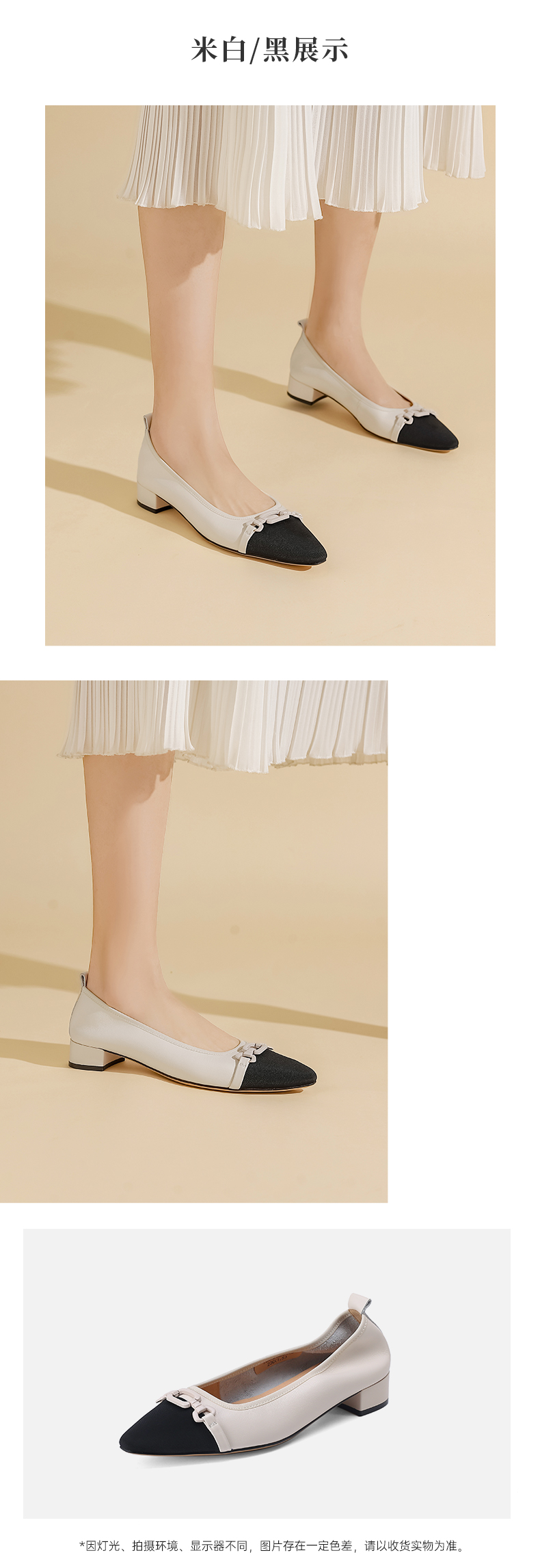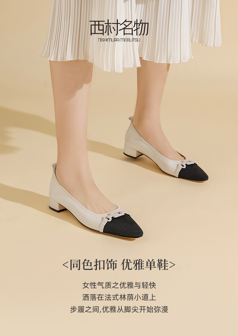 西村名物2023春季新款尖头小香风通勤平底同色扣饰优雅单鞋T23AE12301