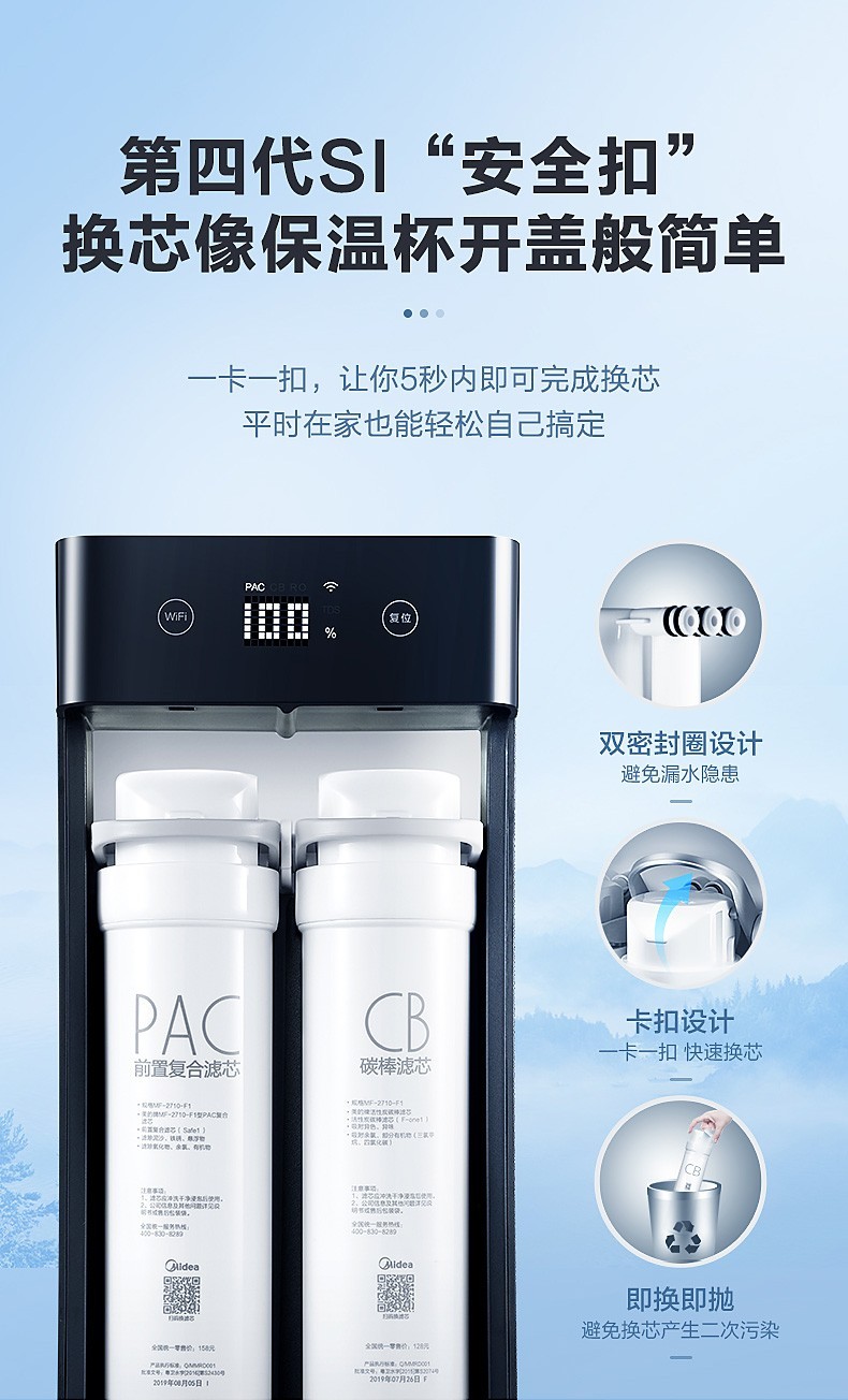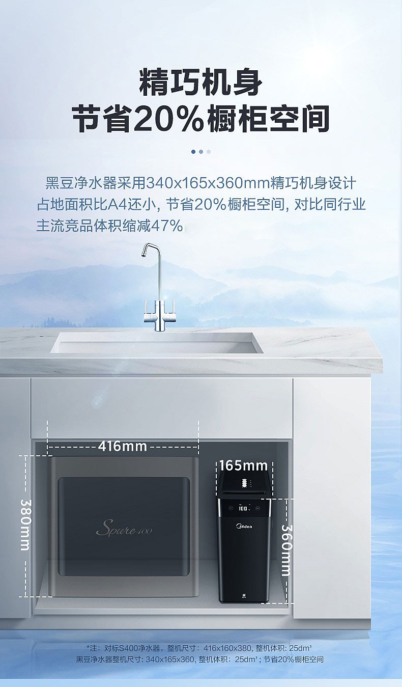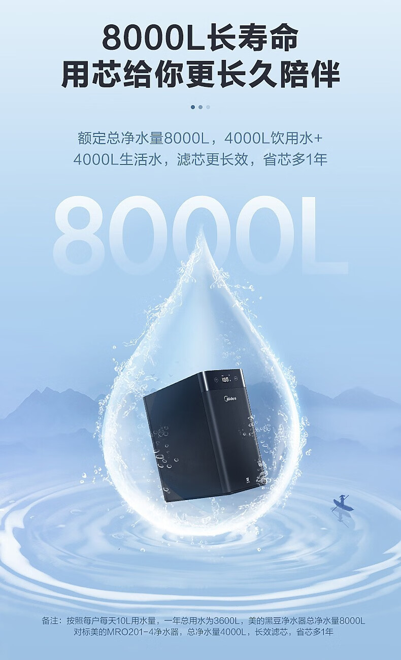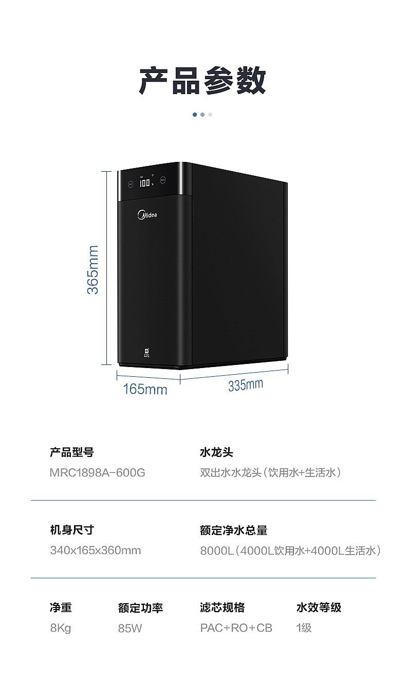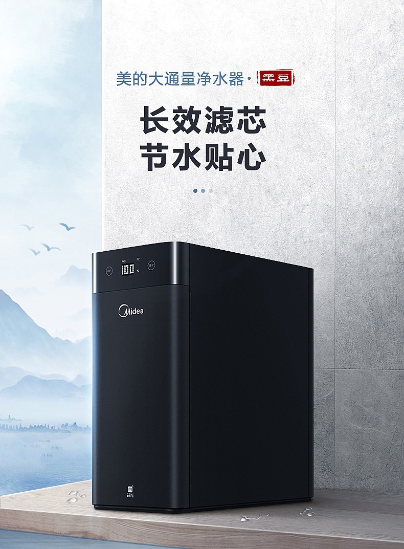 美的(Midea)家用厨下式净水器 反渗透600G大通量净水机 5重净化 MRC1898A-600G 黑豆 企业采购