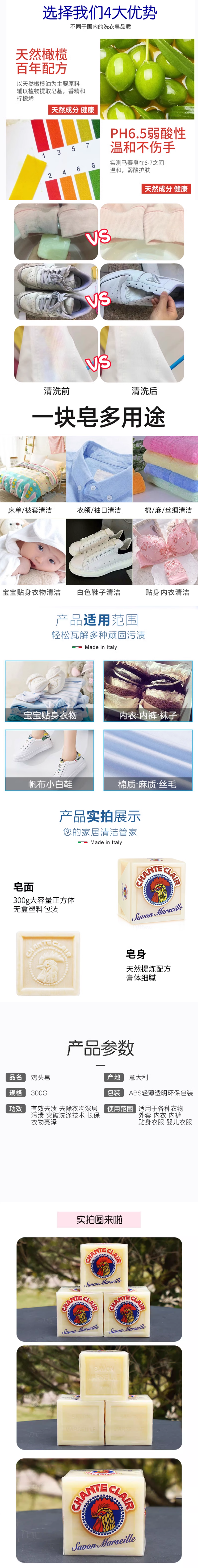 【16元会员福利】大公鸡客家马赛洗衣皂300g 白衣,校服,油污 多功能清洁皂