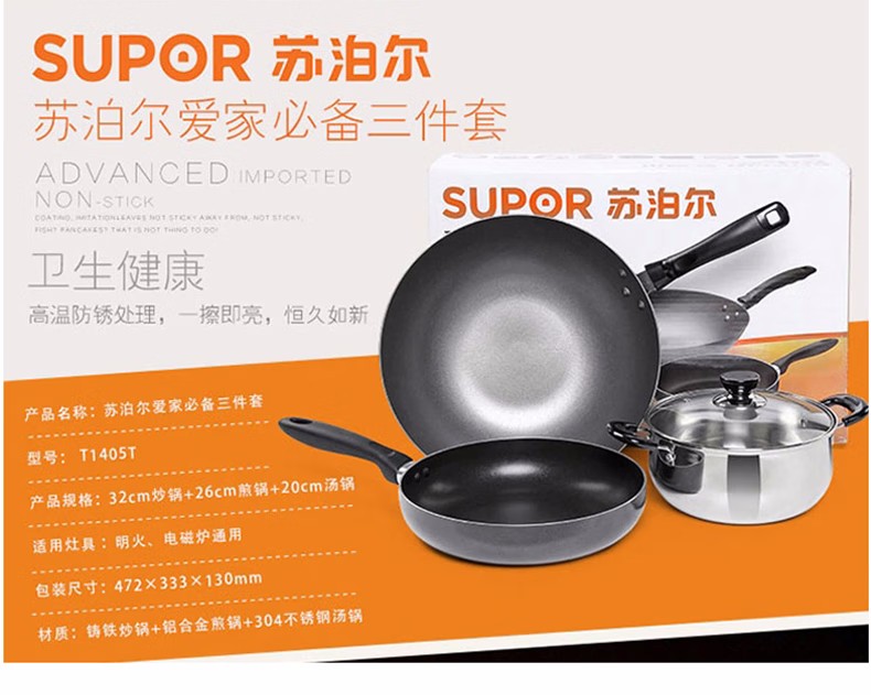 苏泊尔 炒锅汤锅煎锅爱家必备三件套T1405T