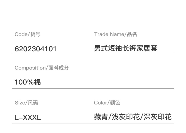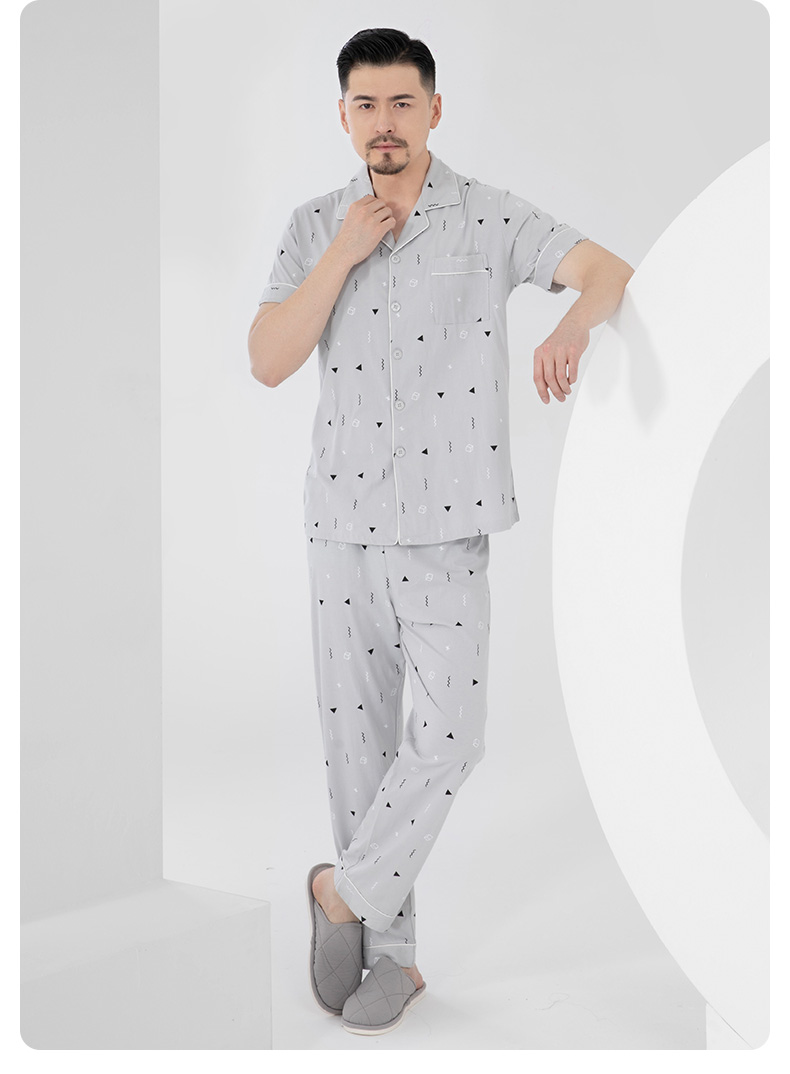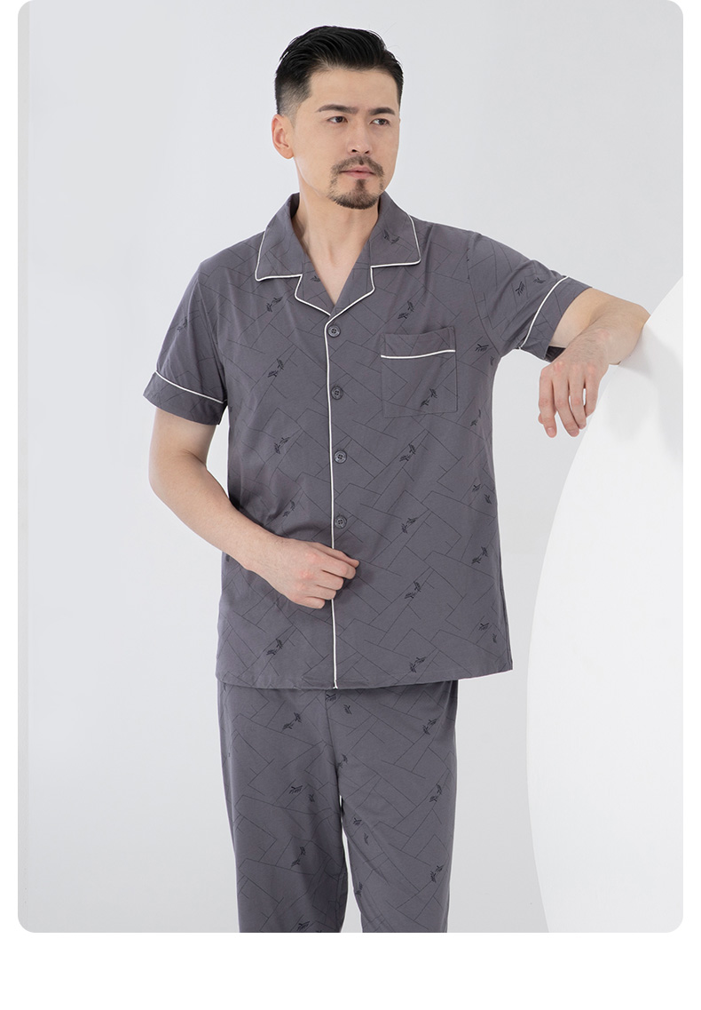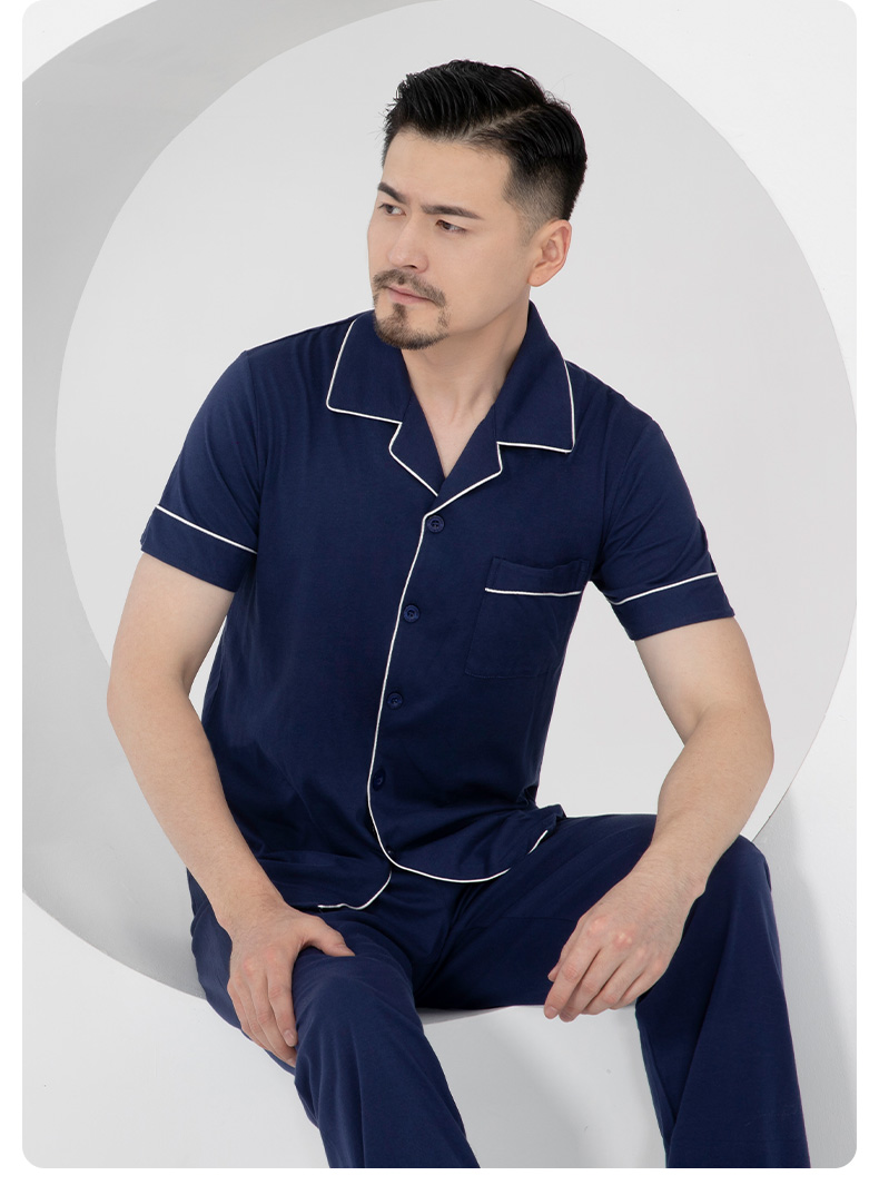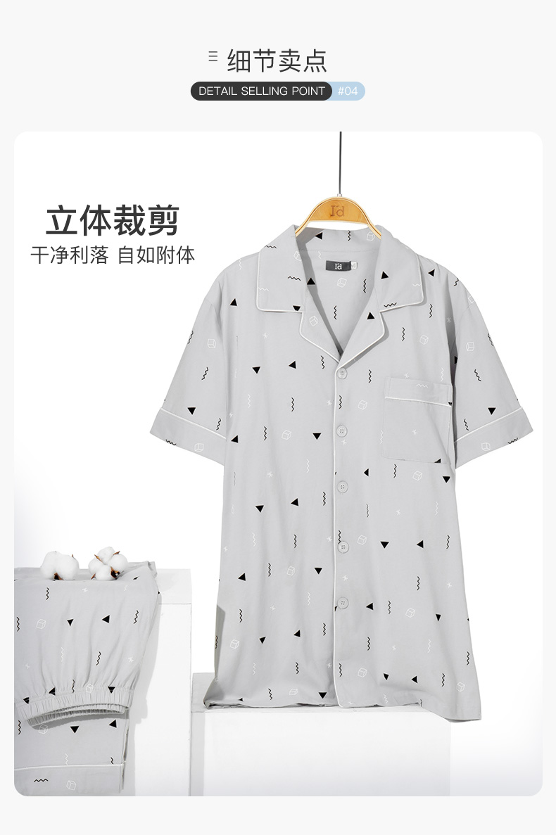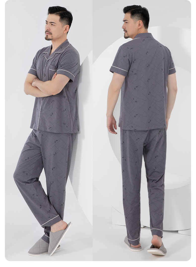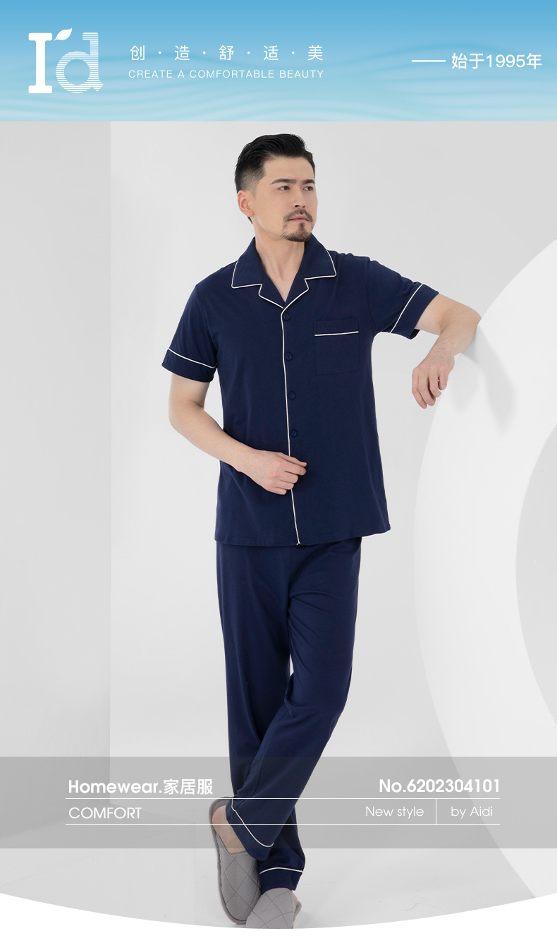 I'd爱帝男式睡衣夏季纯棉短袖长裤家居套
