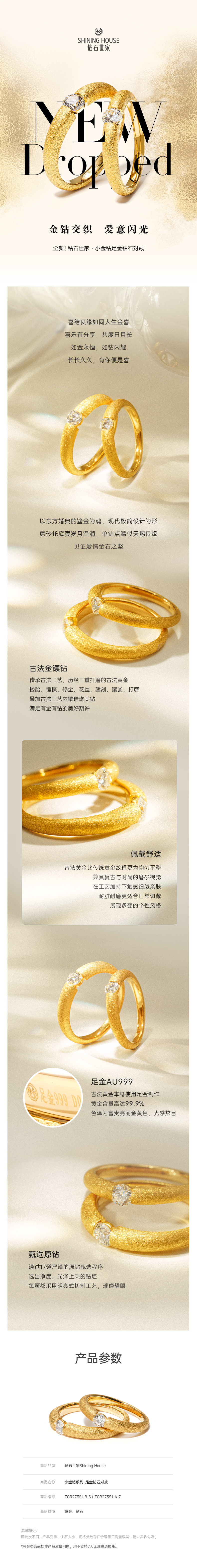 【钻石情侣戒】钻石世家 小金钻系列 足金镶钻情侣戒指 金钻光芒交织 让爱一生闪耀【黄金产品不支持无理由退换货】预计3-5天发货