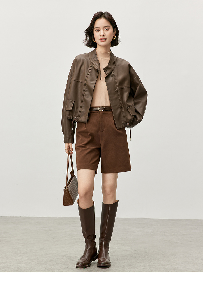 【内购】简约通勤净色打底衫套头立领坑条磨毛针织厚实弹力上衣-W44S57116