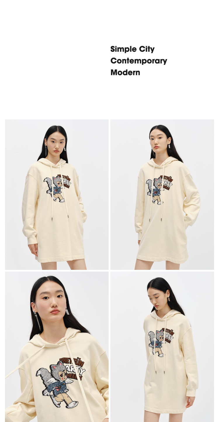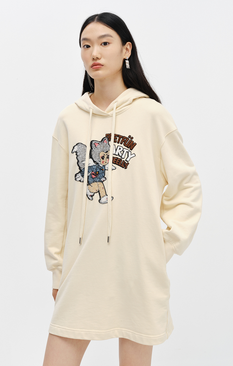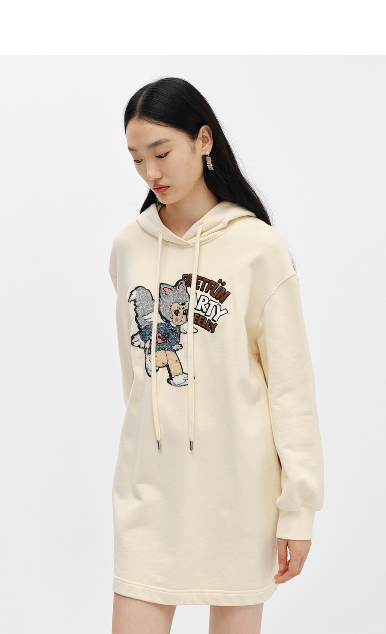 NEELLY纳俪商场同款连衣裙女卫衣连帽卡通亮片减龄设计套头A字裙N22102Y01059
