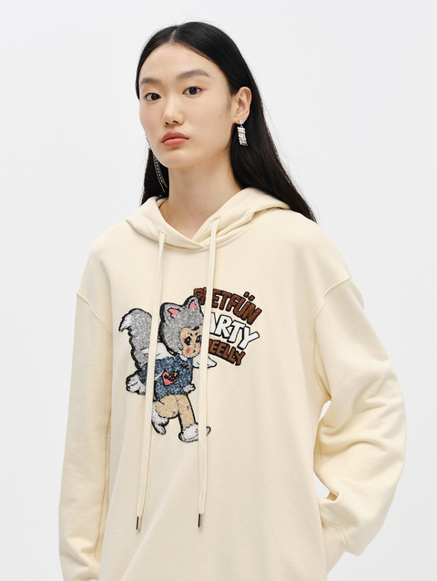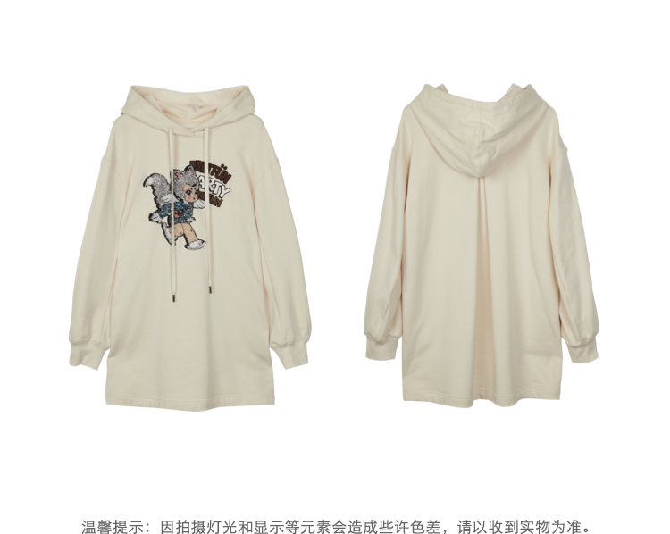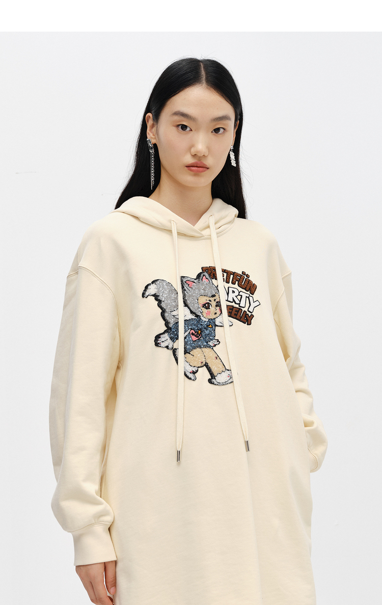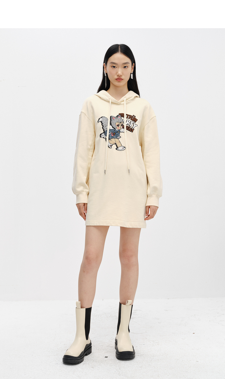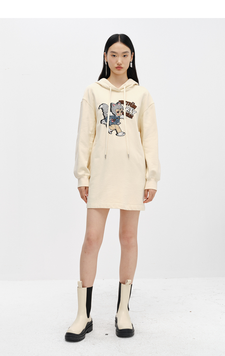 NEELLY纳俪商场同款连衣裙女卫衣连帽卡通亮片减龄设计套头A字裙N22102Y01059