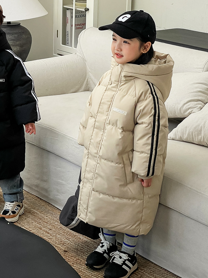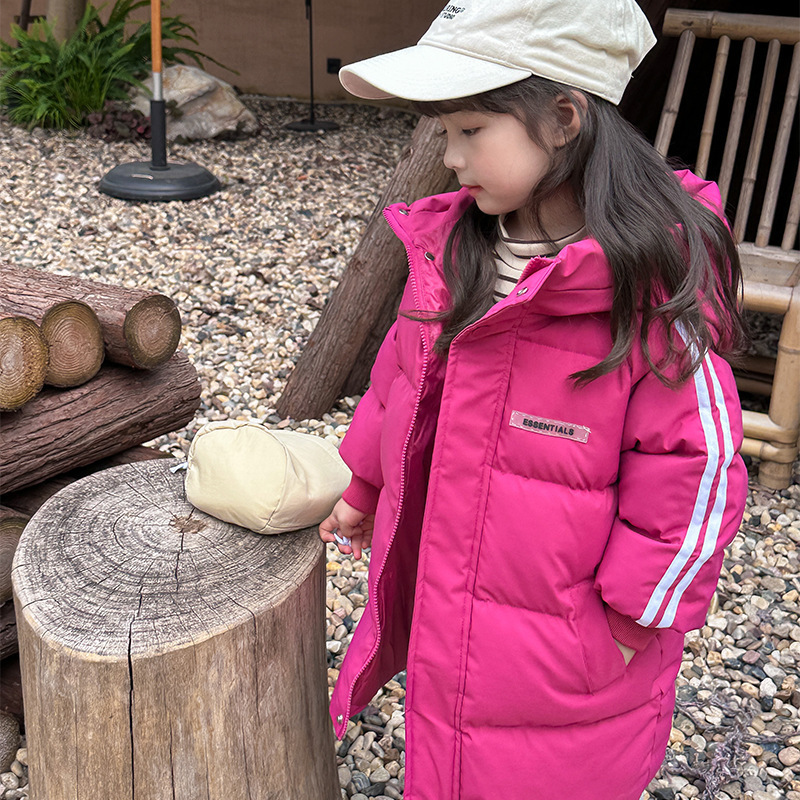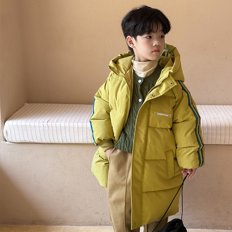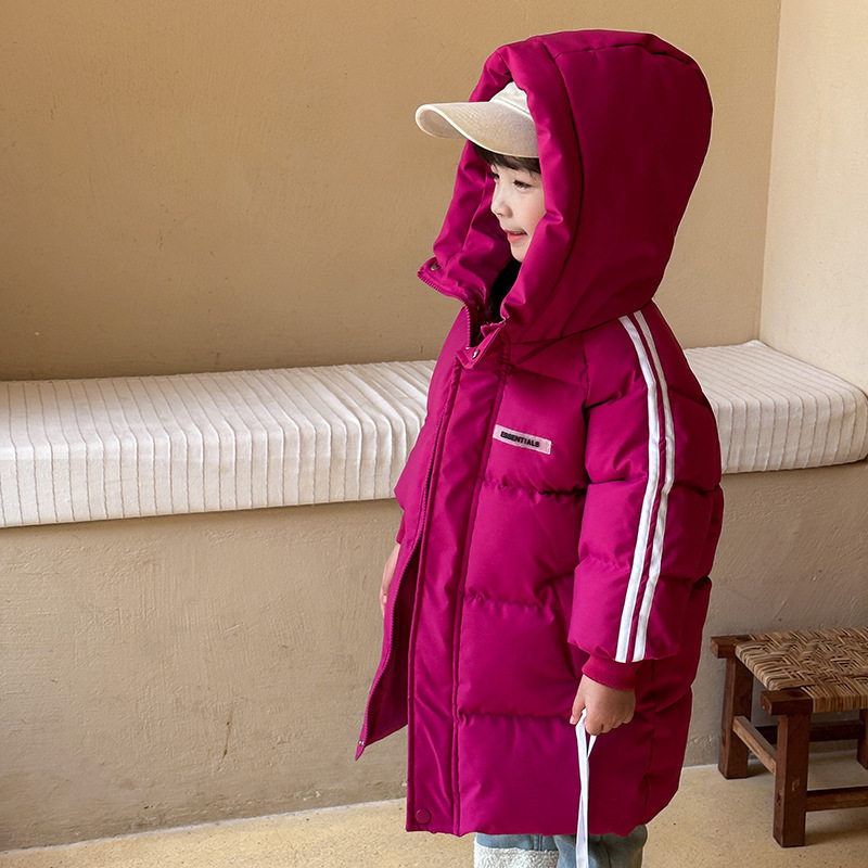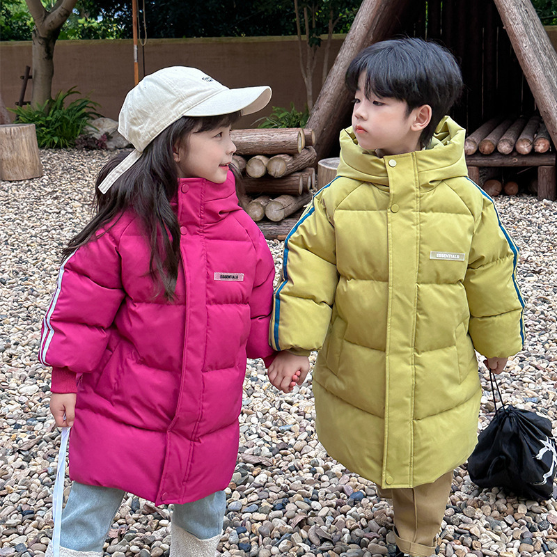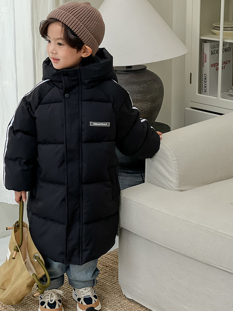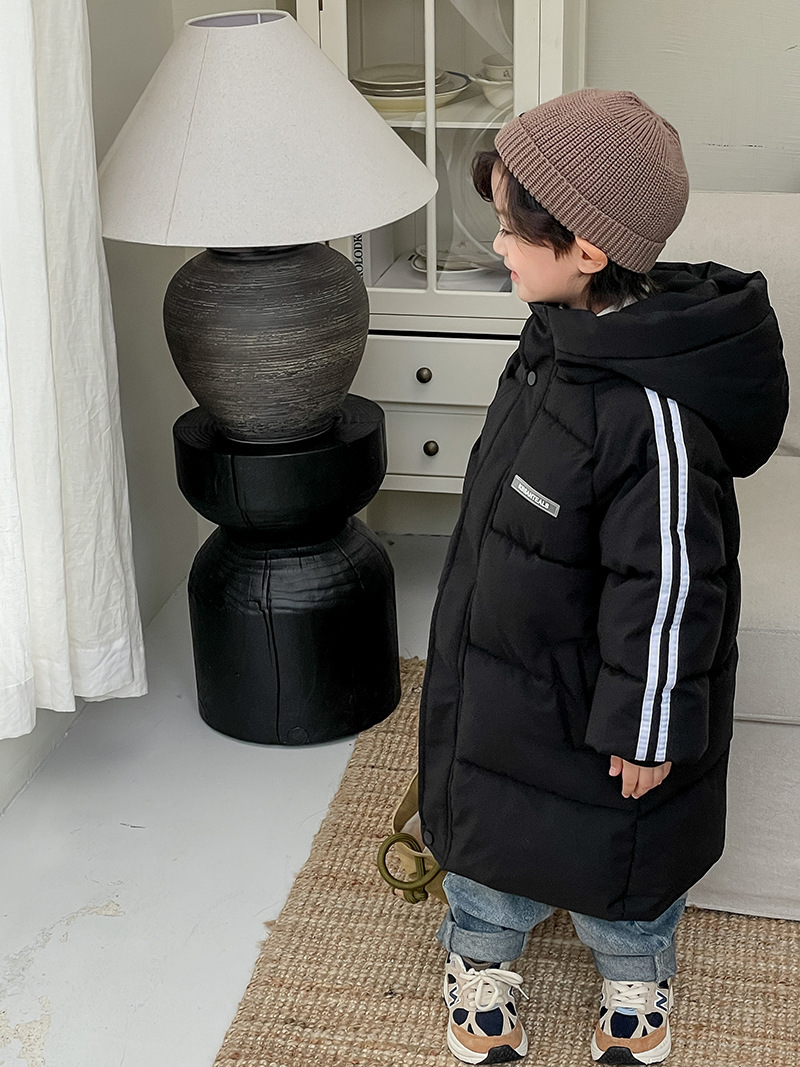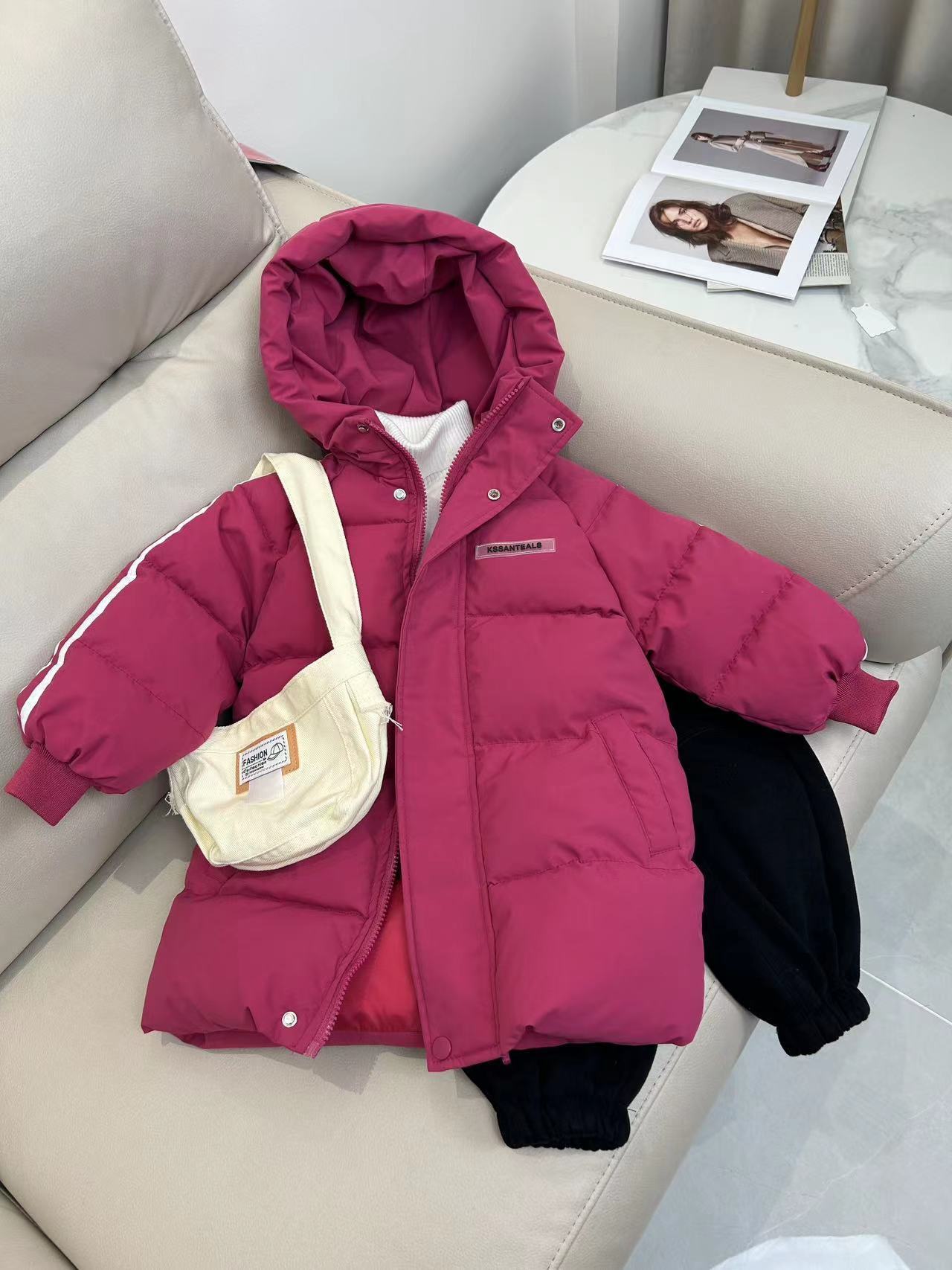 俊淳 反季清仓第一波!直接清仓干到底!一年碰不到的如此性价比!抢到血赚! 【韩国KR中长款连帽加厚羽绒棉服】 ✅设计属于潮酷韩风,还有撞色条纹设计 ✅面料是先进科技面料,非常好清洗,不仅挡风御寒还防水抗污。 ✅整件棉服手感软糯,加长加厚款,媲美羽绒服! yyds小宝宝穿起来洋气十足!!
