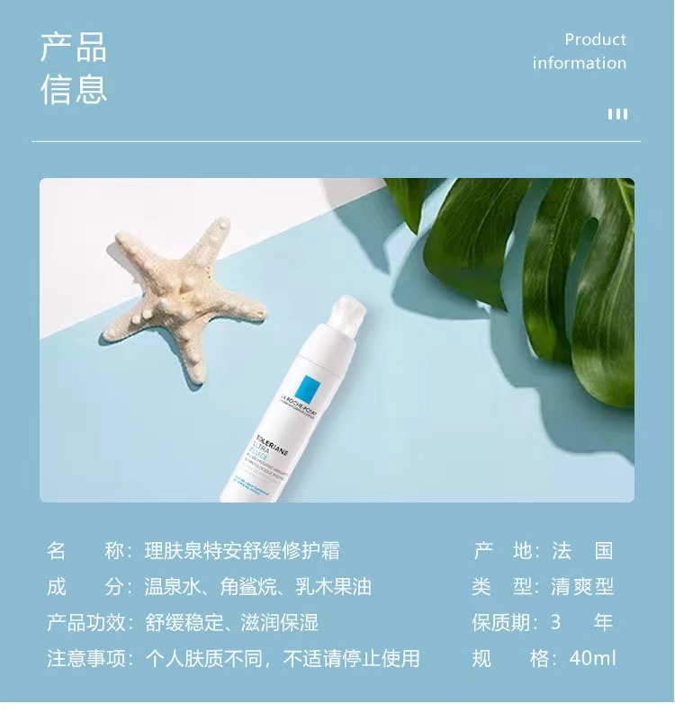 理肤泉特安修复安心霜修护乳 乳液40ml舒缓滋润