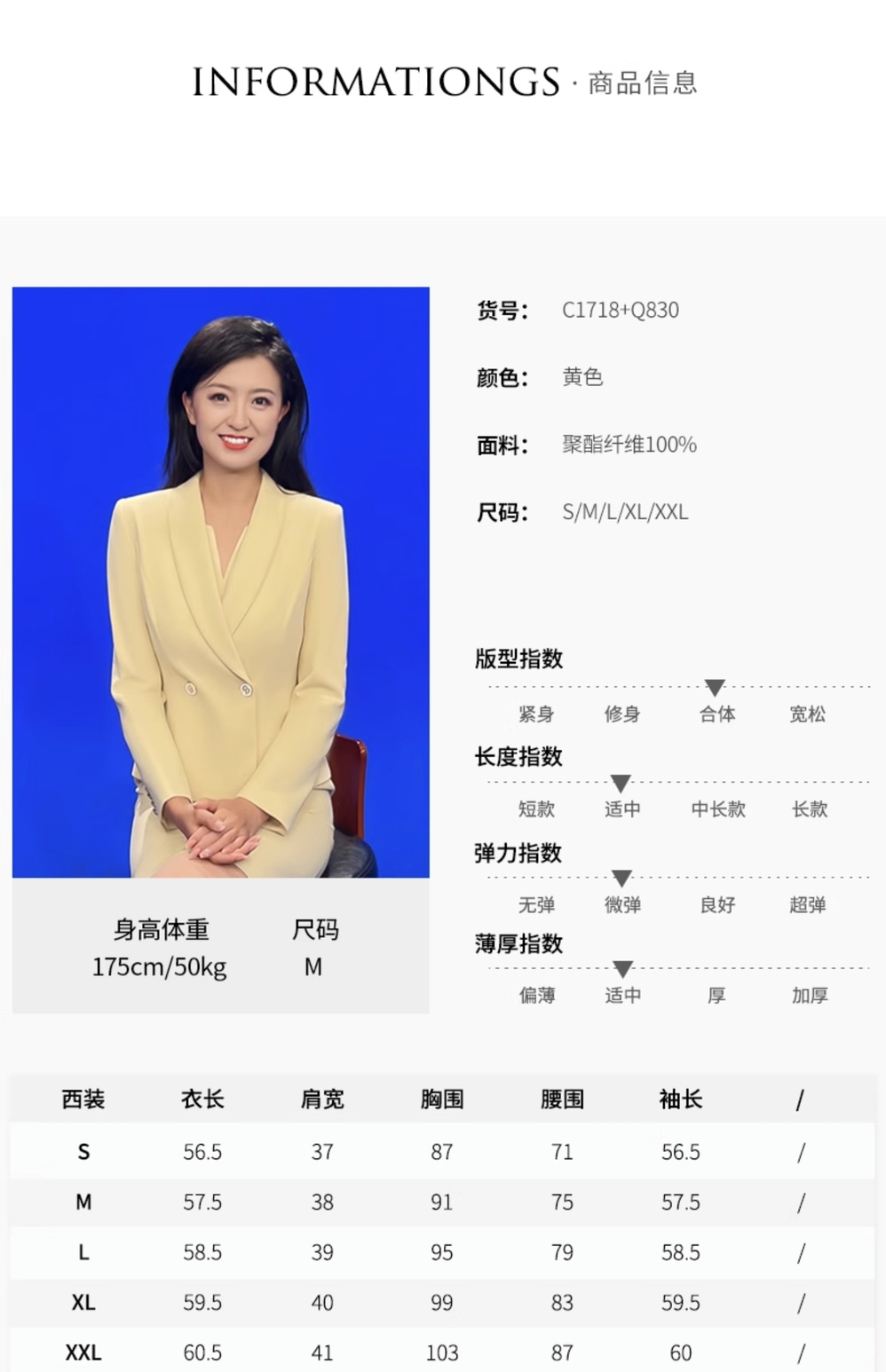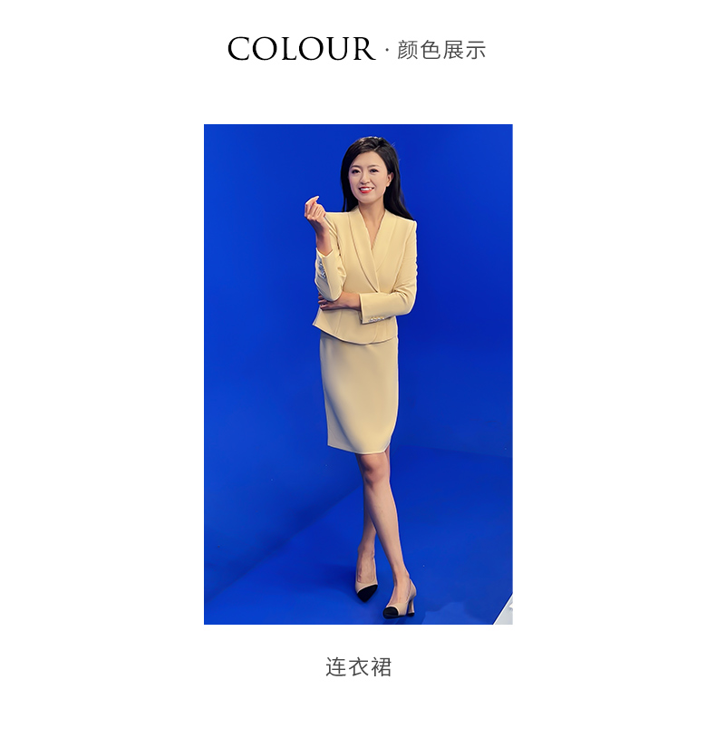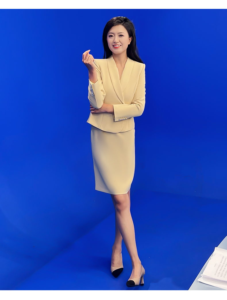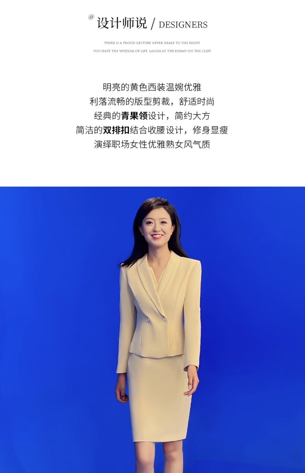 IWY/黄色播音生艺考主持人礼服女气质名媛风西装连衣裙套装裙女C1718+Q830