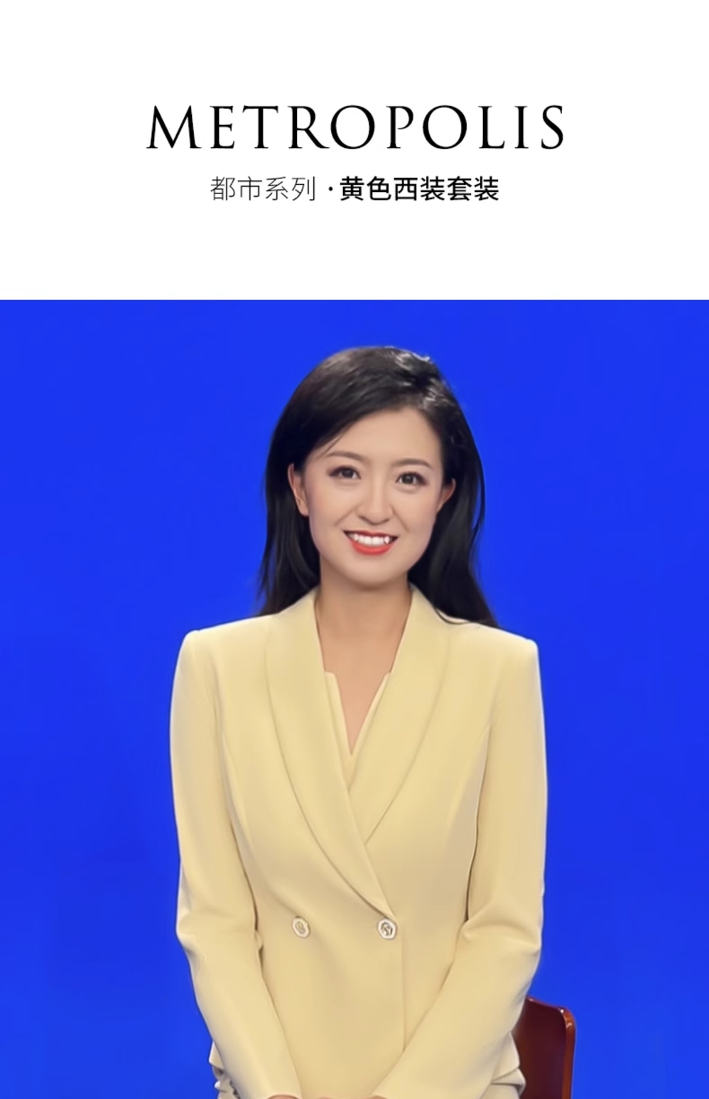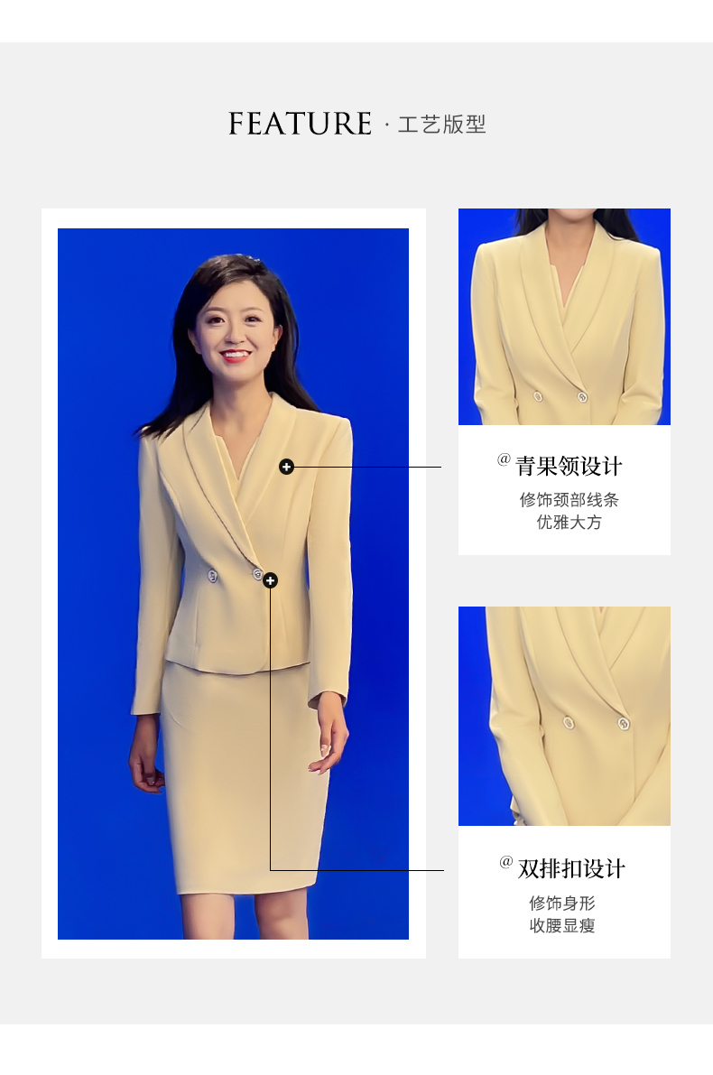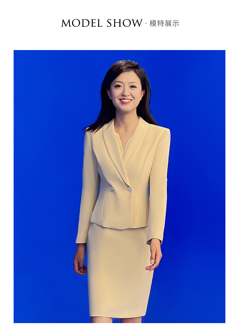 IWY/黄色播音生艺考主持人礼服女气质名媛风西装连衣裙套装裙女C1718+Q830