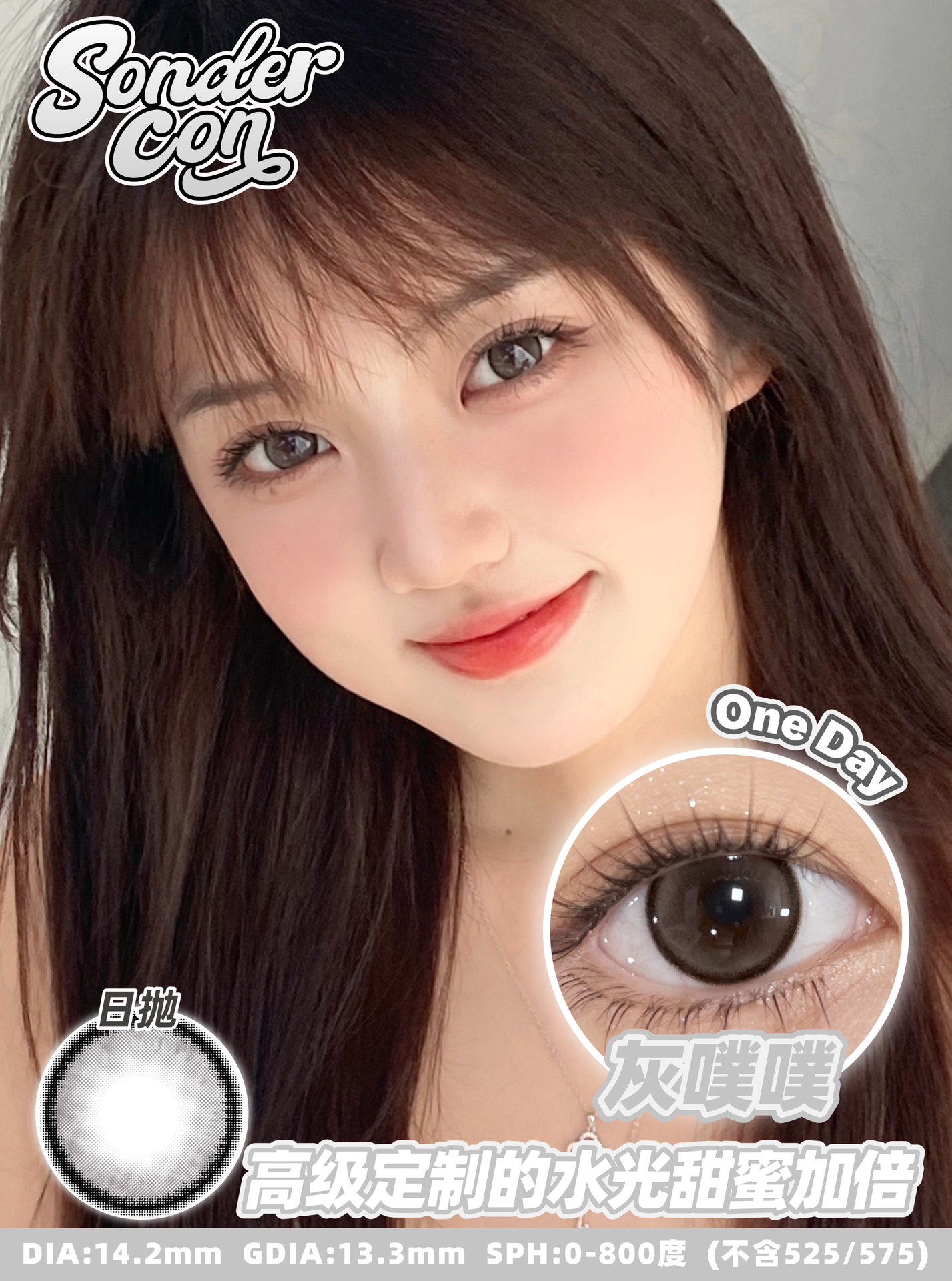sondercon日抛 灰噗噗 14.2mm 含硅水凝胶 日抛无售后!!