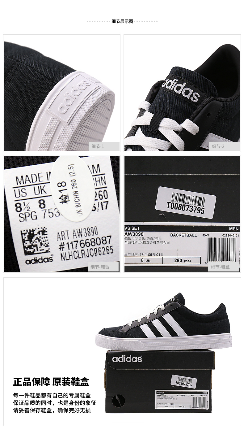 adidas/阿迪达斯休闲鞋男鞋运动鞋低帮舒适板鞋时尚帆布鞋AW3890
