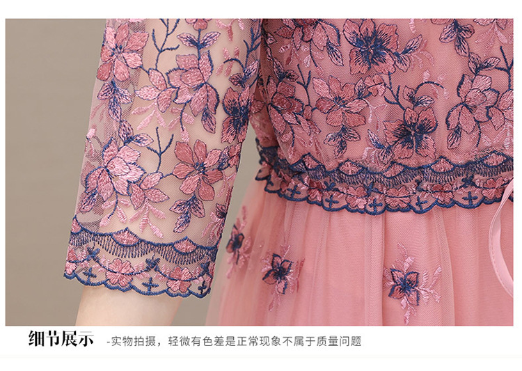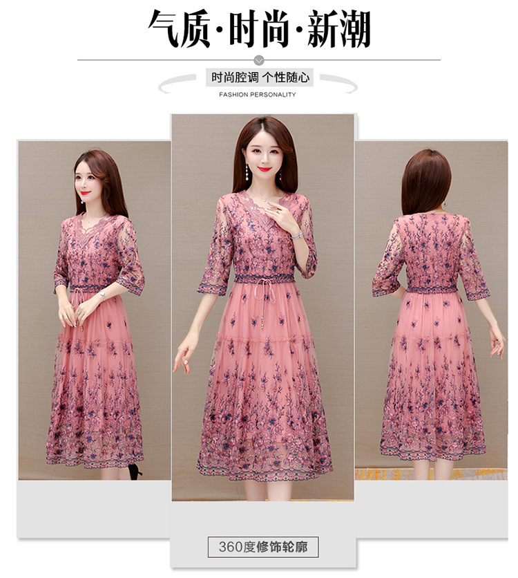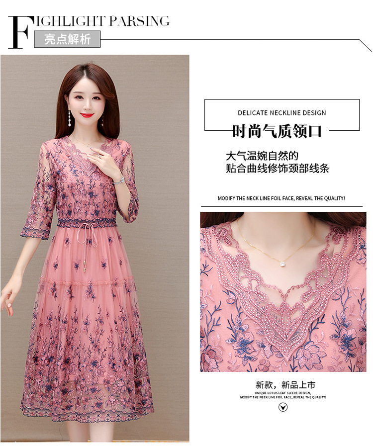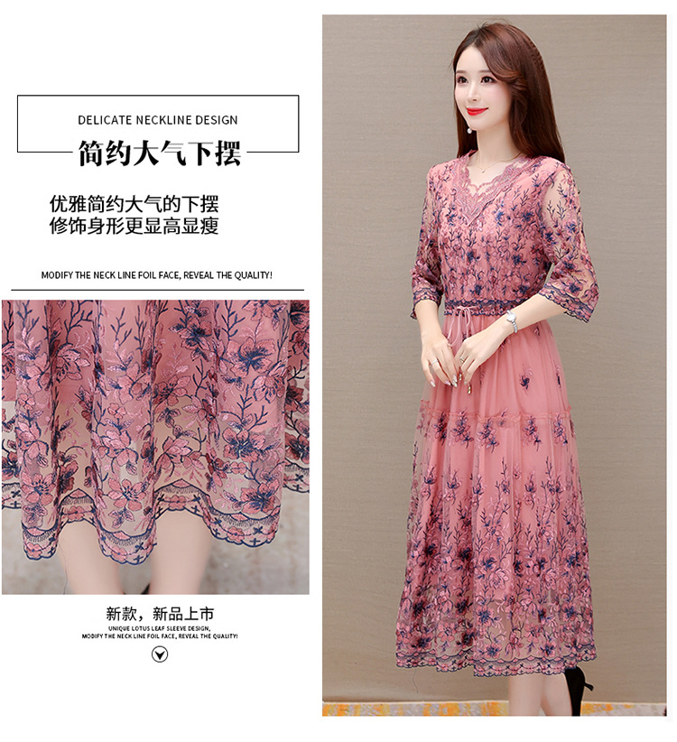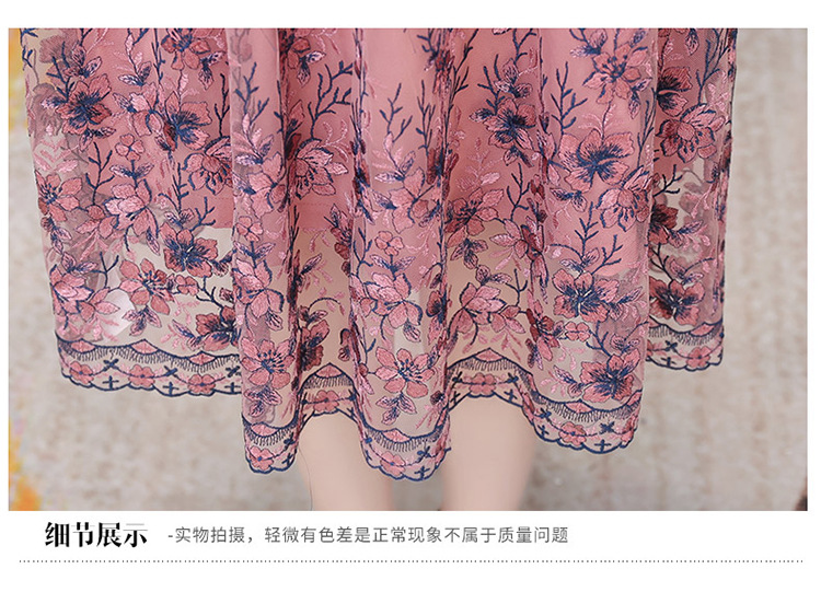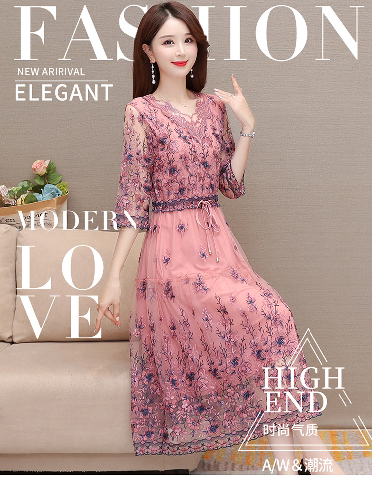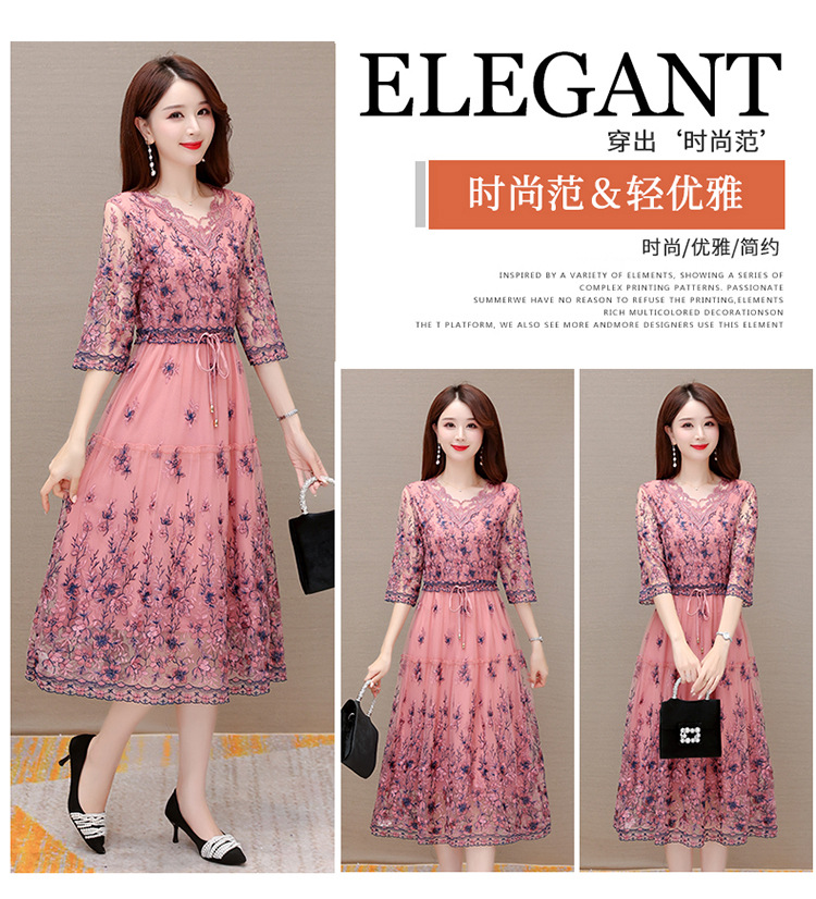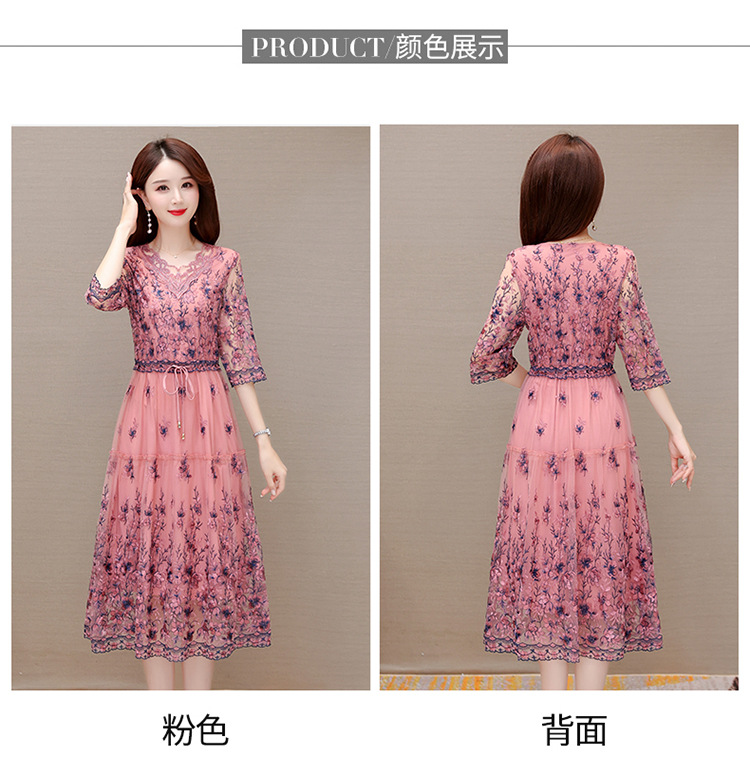 夏季新款,重工刺锈裙中长款女装A字裙中袖网纱连衣裙QYM-LRX-GM803-Y