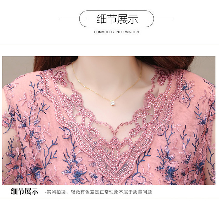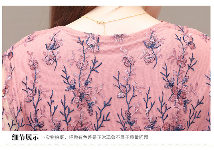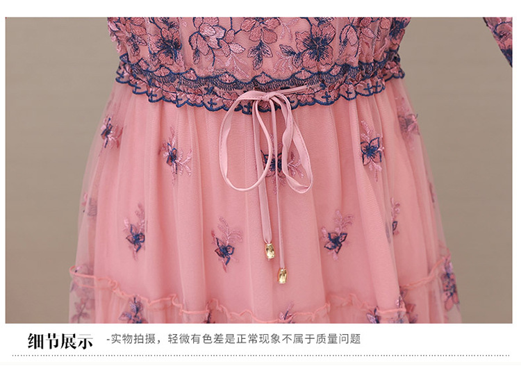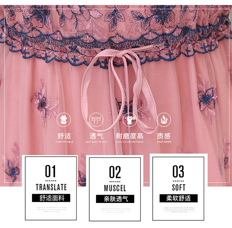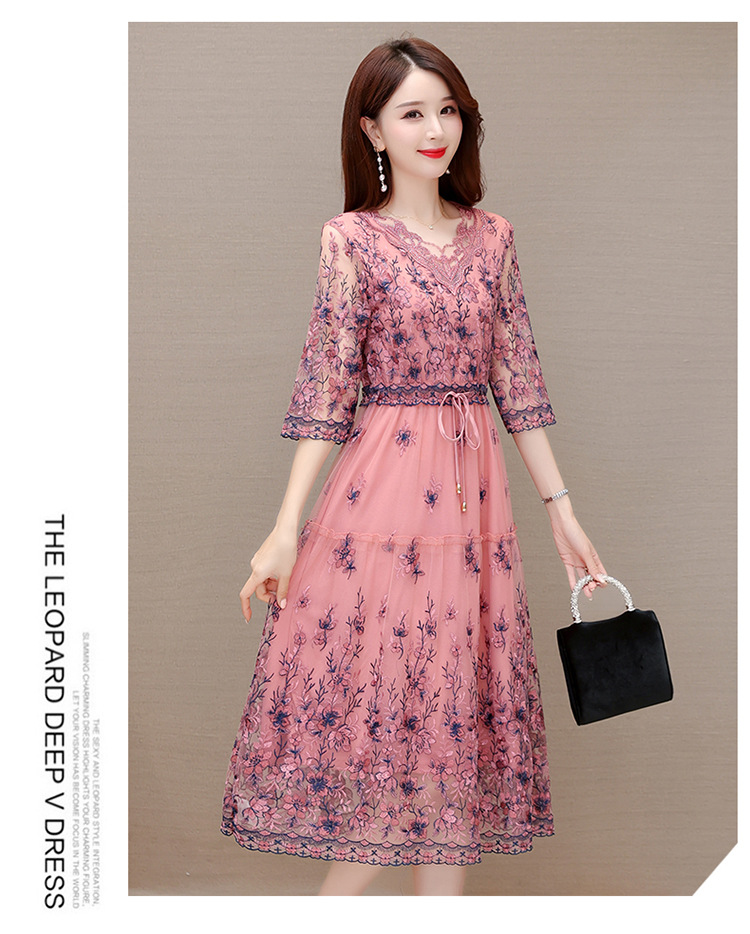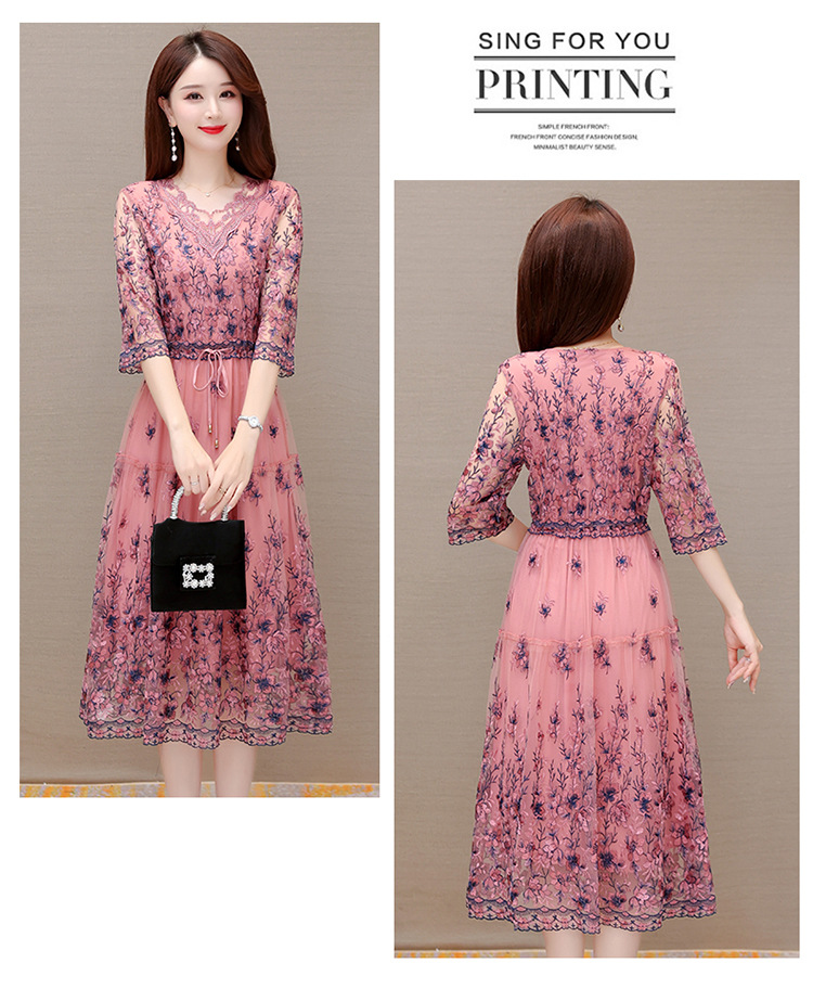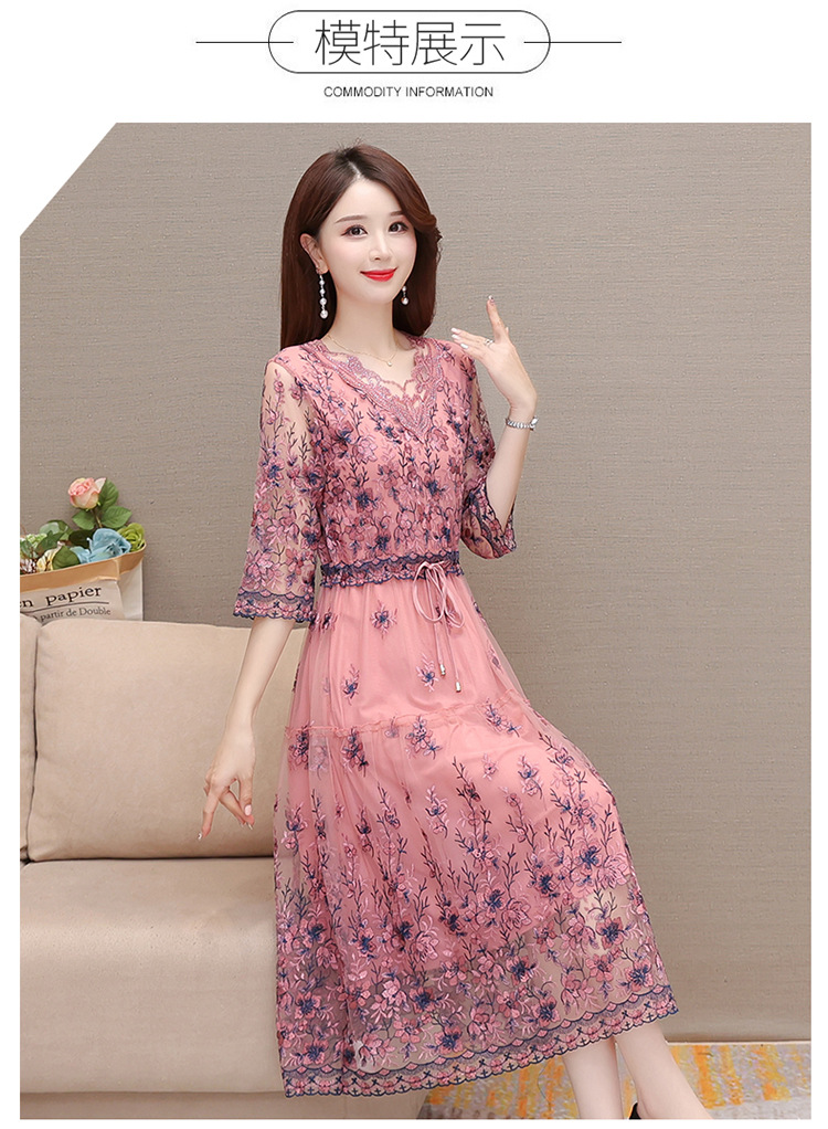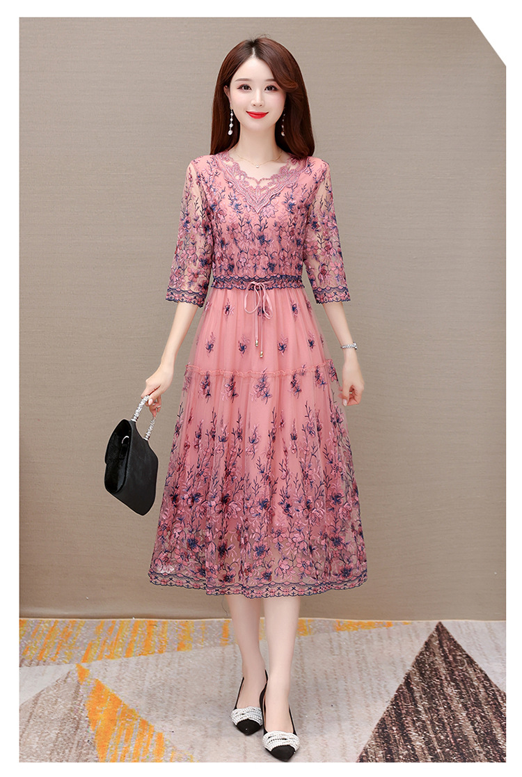 夏季新款,重工刺锈裙中长款女装A字裙中袖网纱连衣裙QYM-LRX-GM803-Y