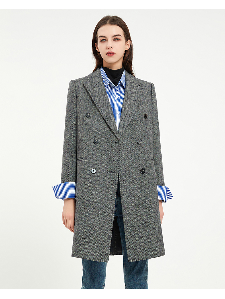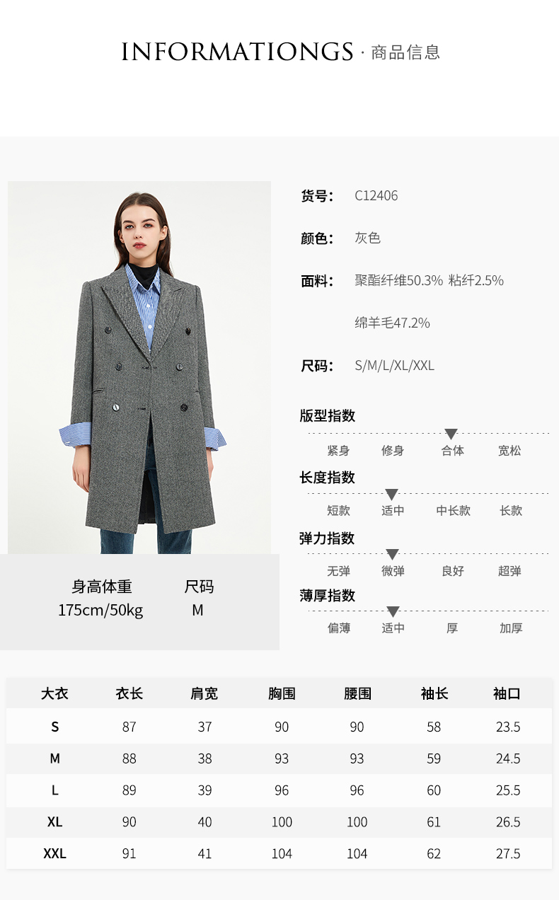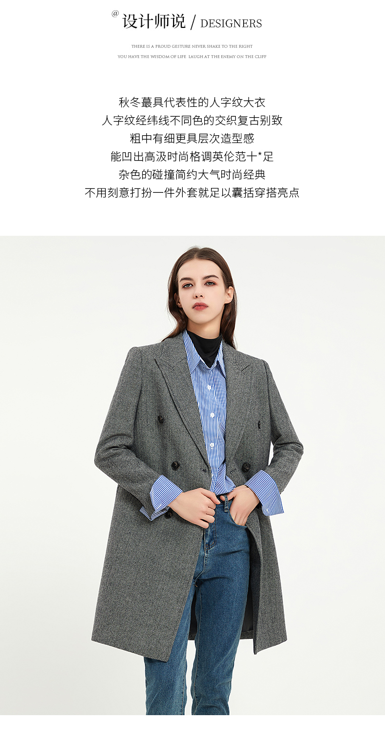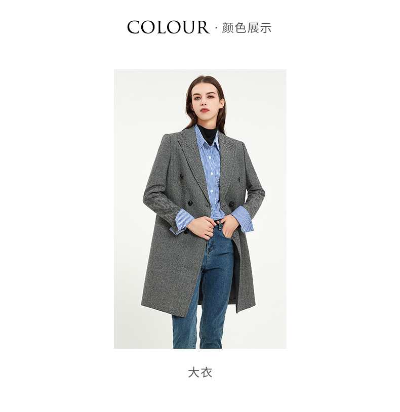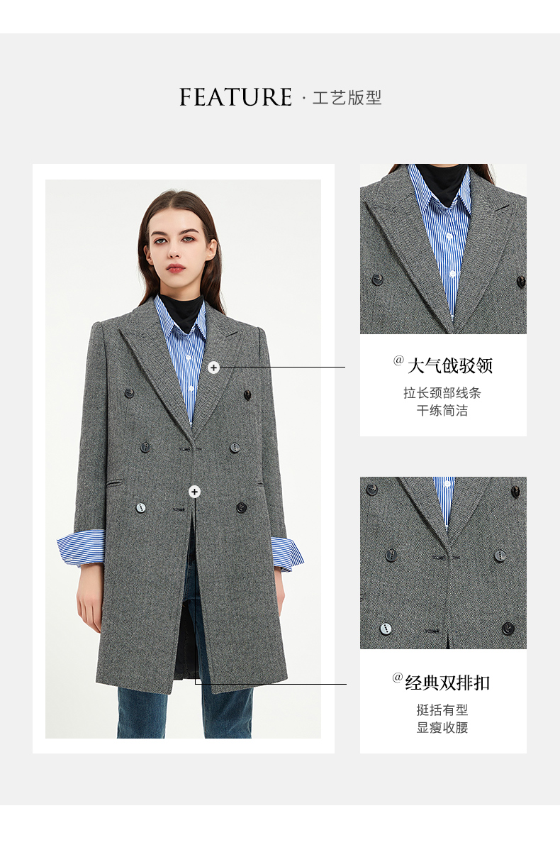IWY/灰色秋冬加厚羊毛西装外套女时尚高端保暖毛呢大衣职业正装C12406