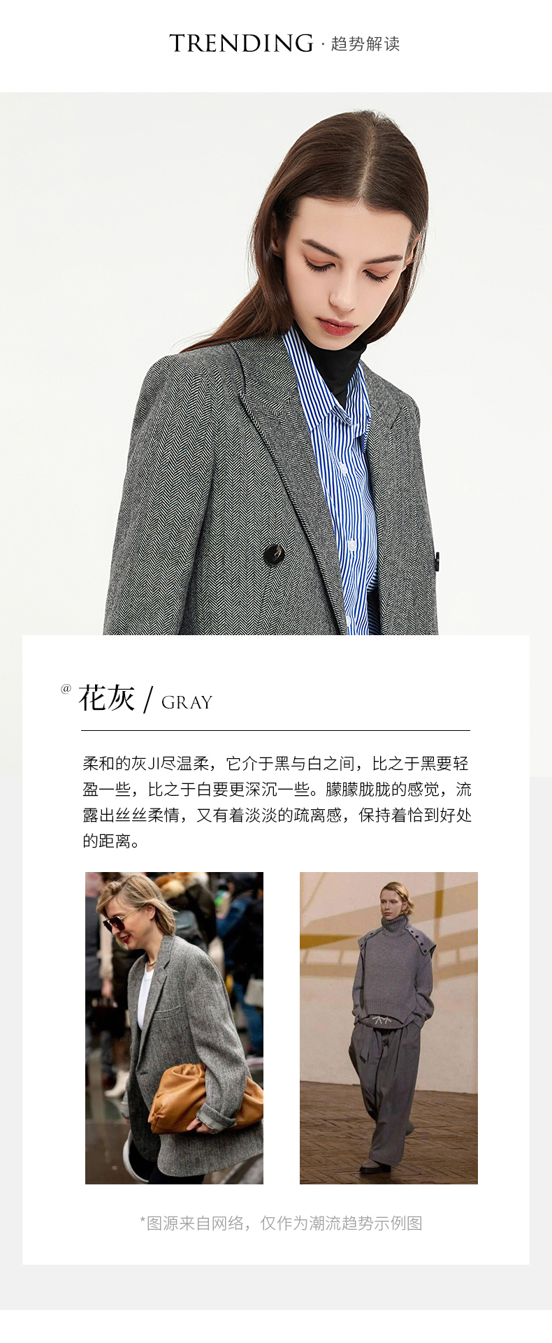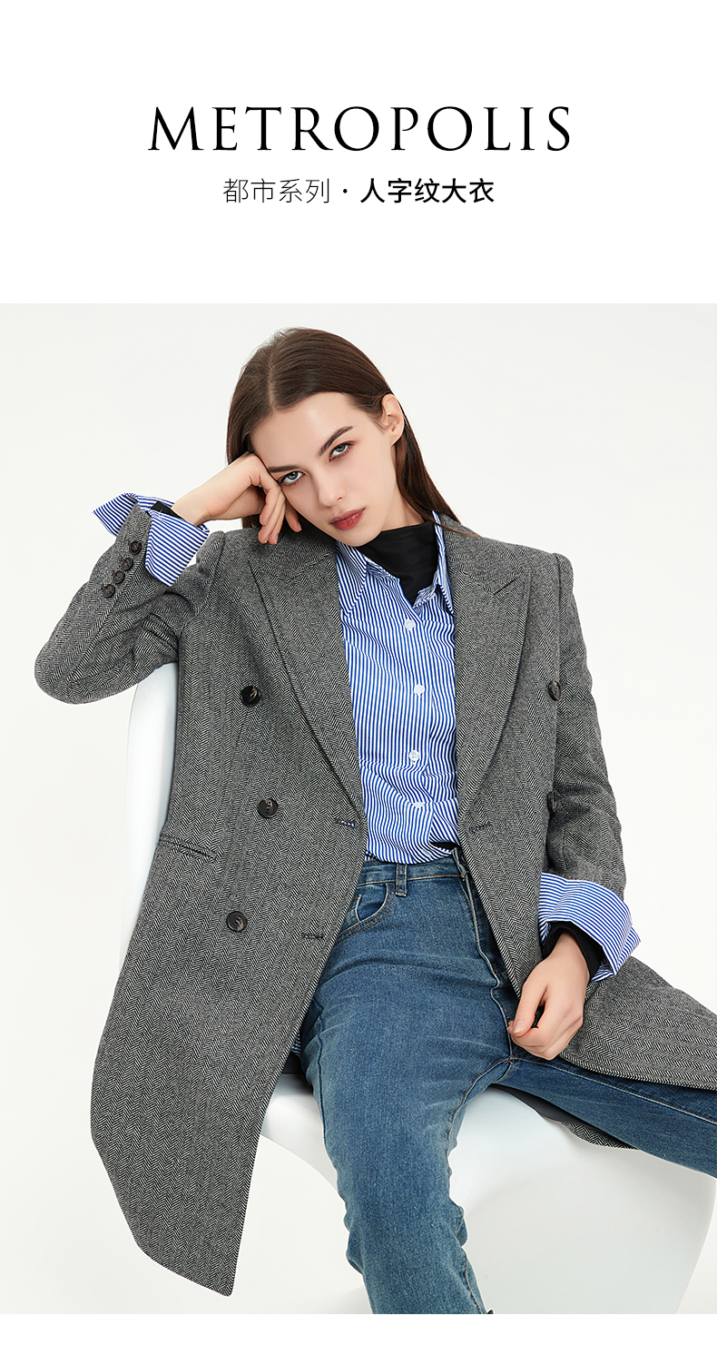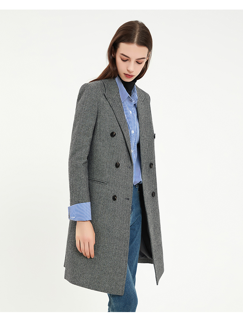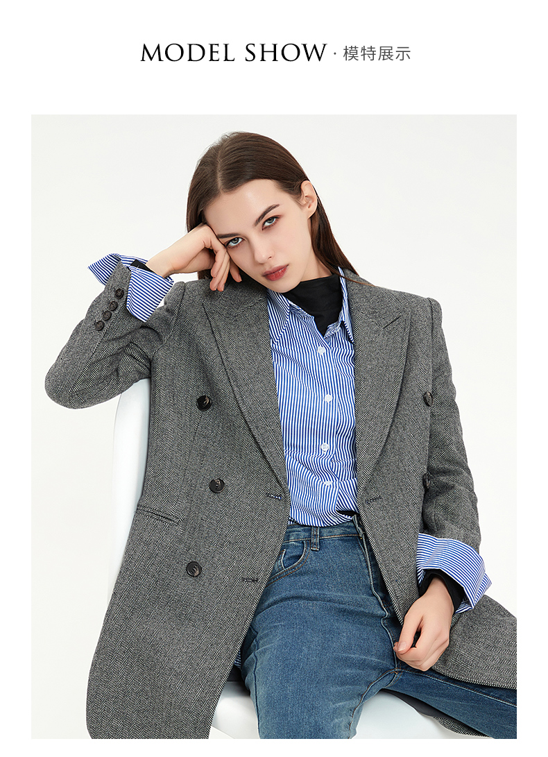 IWY/灰色秋冬加厚羊毛西装外套女时尚高端保暖毛呢大衣职业正装C12406