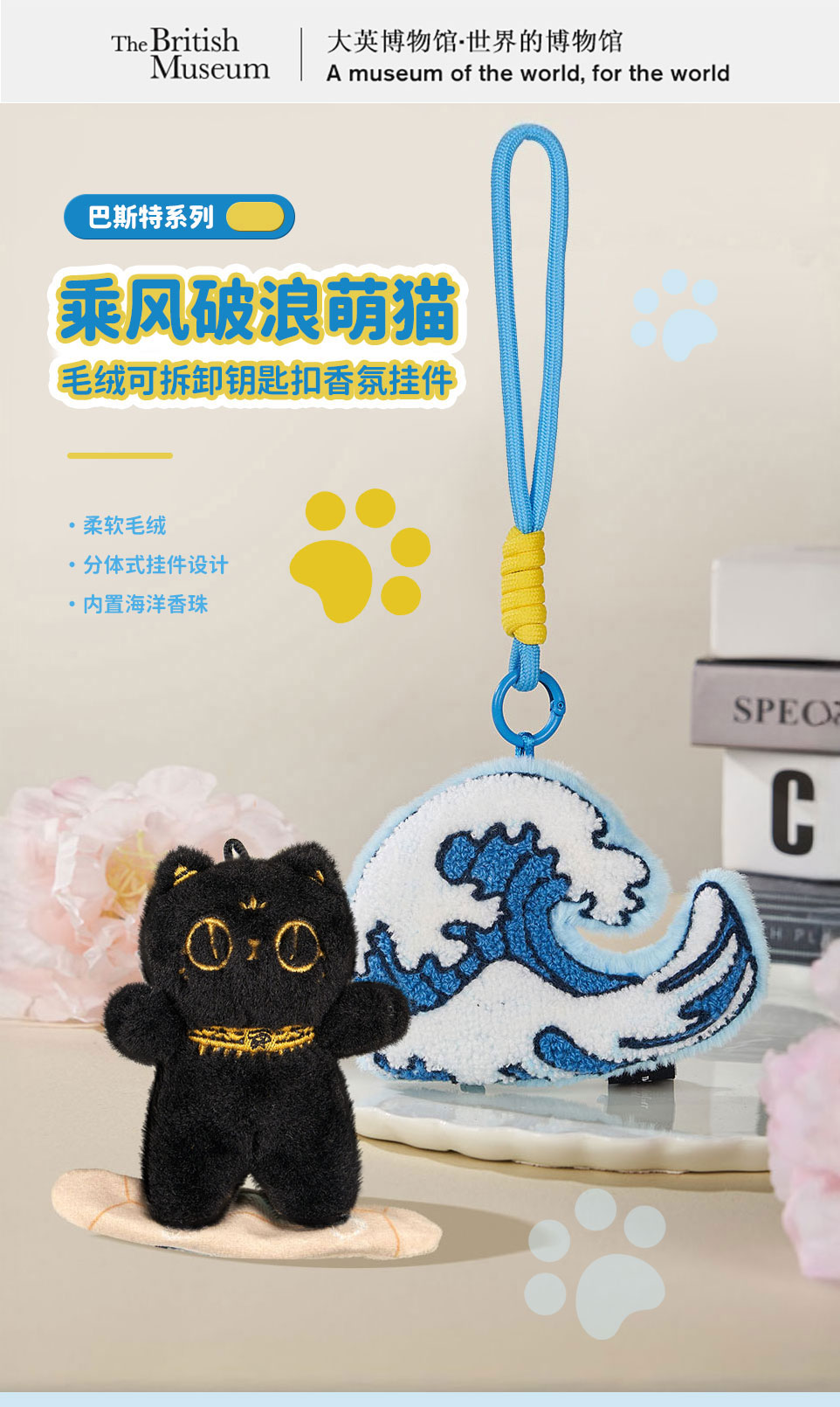 大英博物馆 巴斯特系列 乘风破浪萌猫毛绒可拆卸钥匙扣香氛挂件