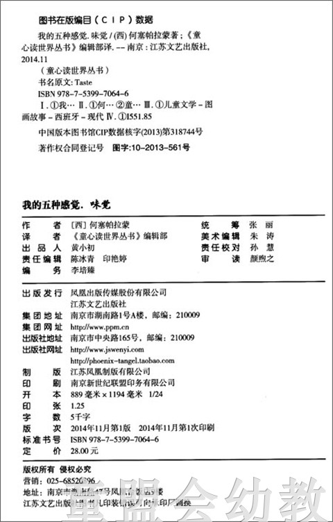 我的五种感觉:味觉 何塞帕拉蒙 3-4-5-6岁儿童读物 正版