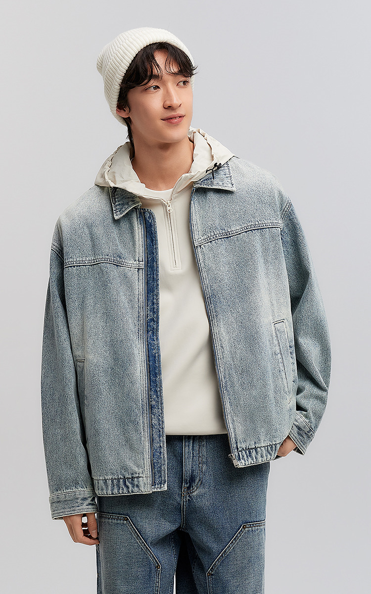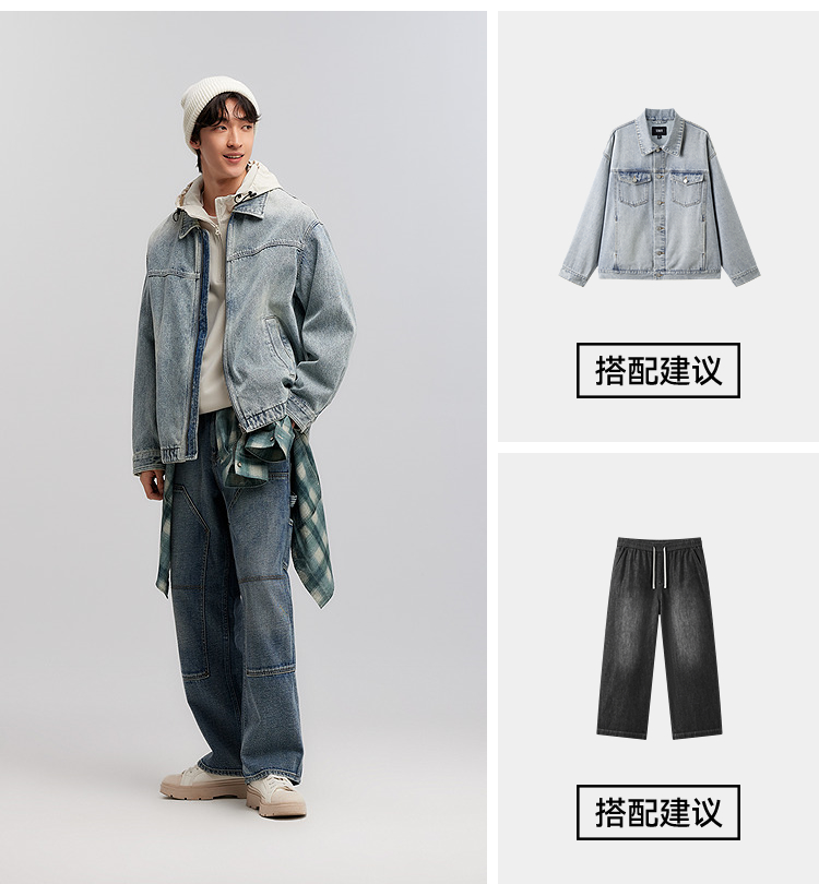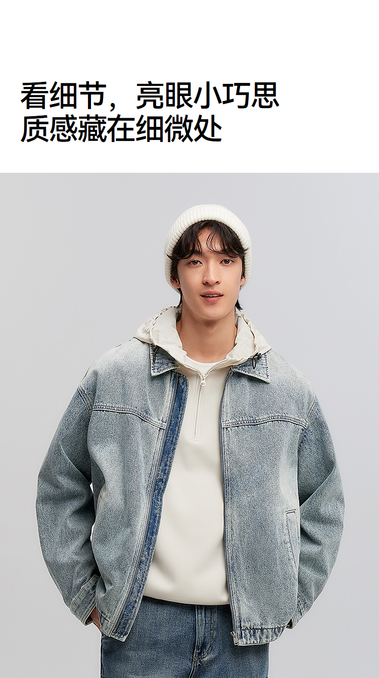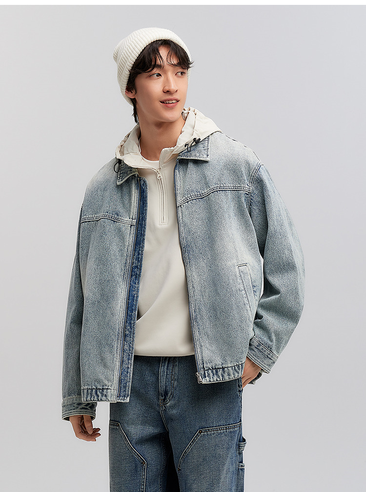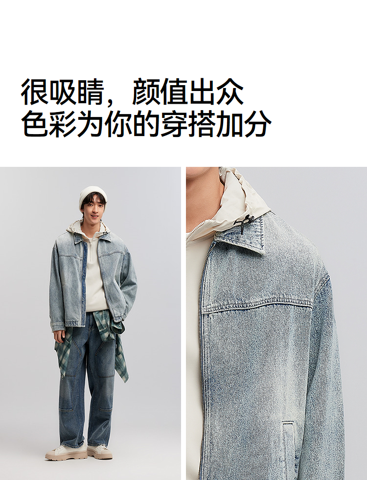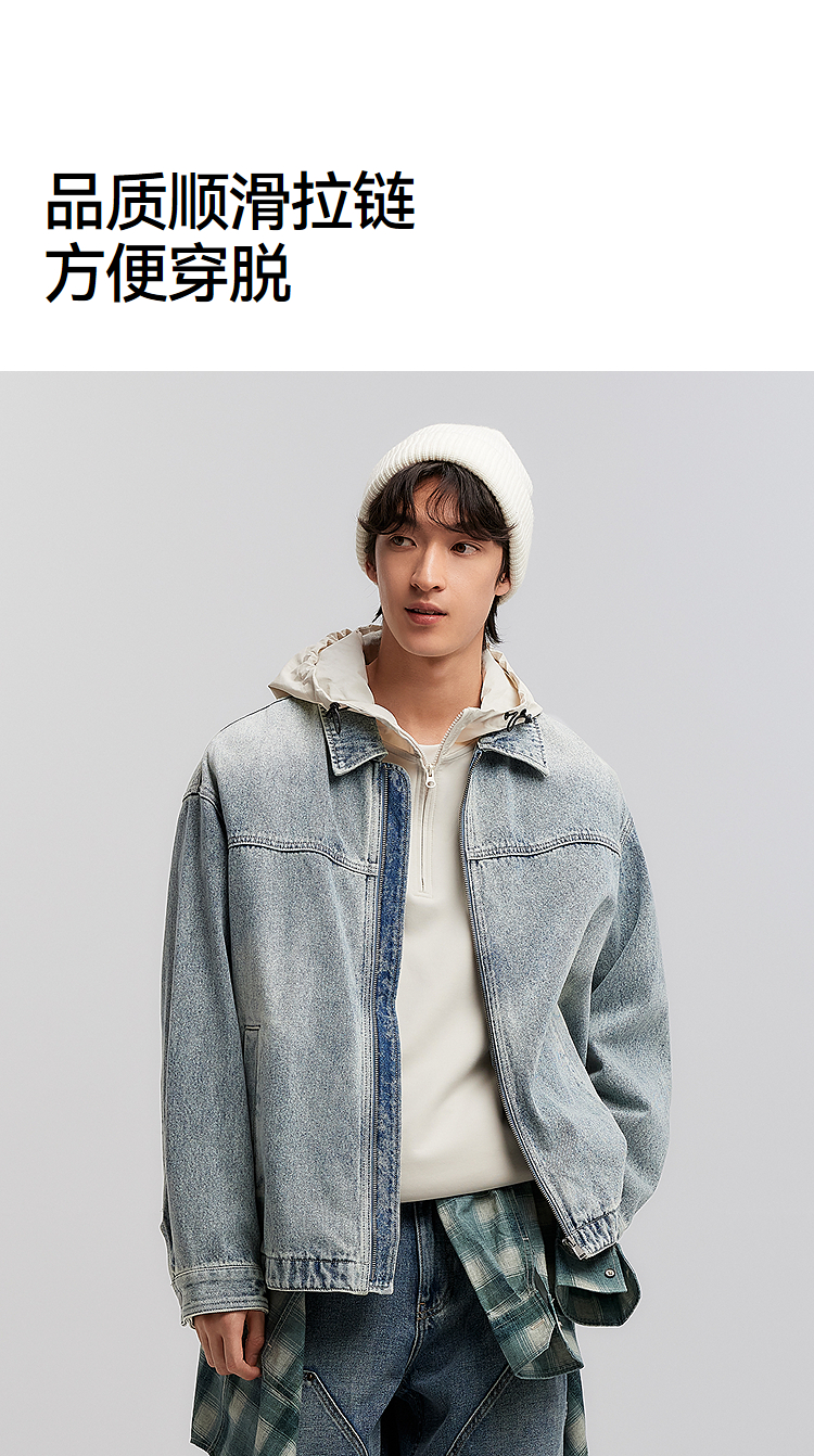 森柔|森马夹克男春季复古牛仔外套小宽松舒适翻领上衣时尚流行潮