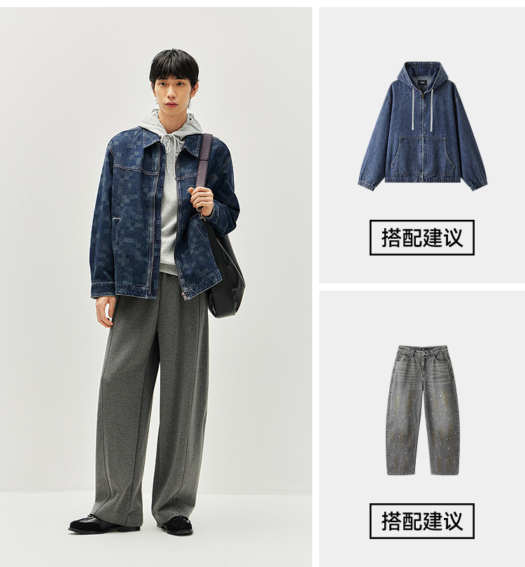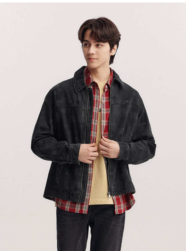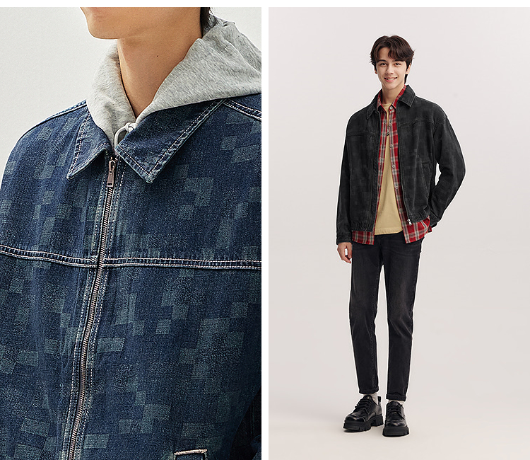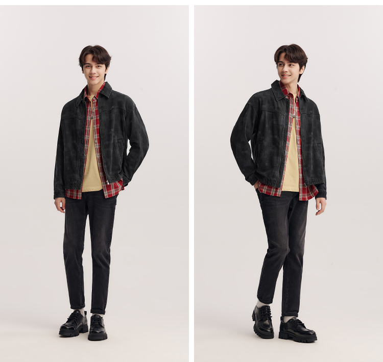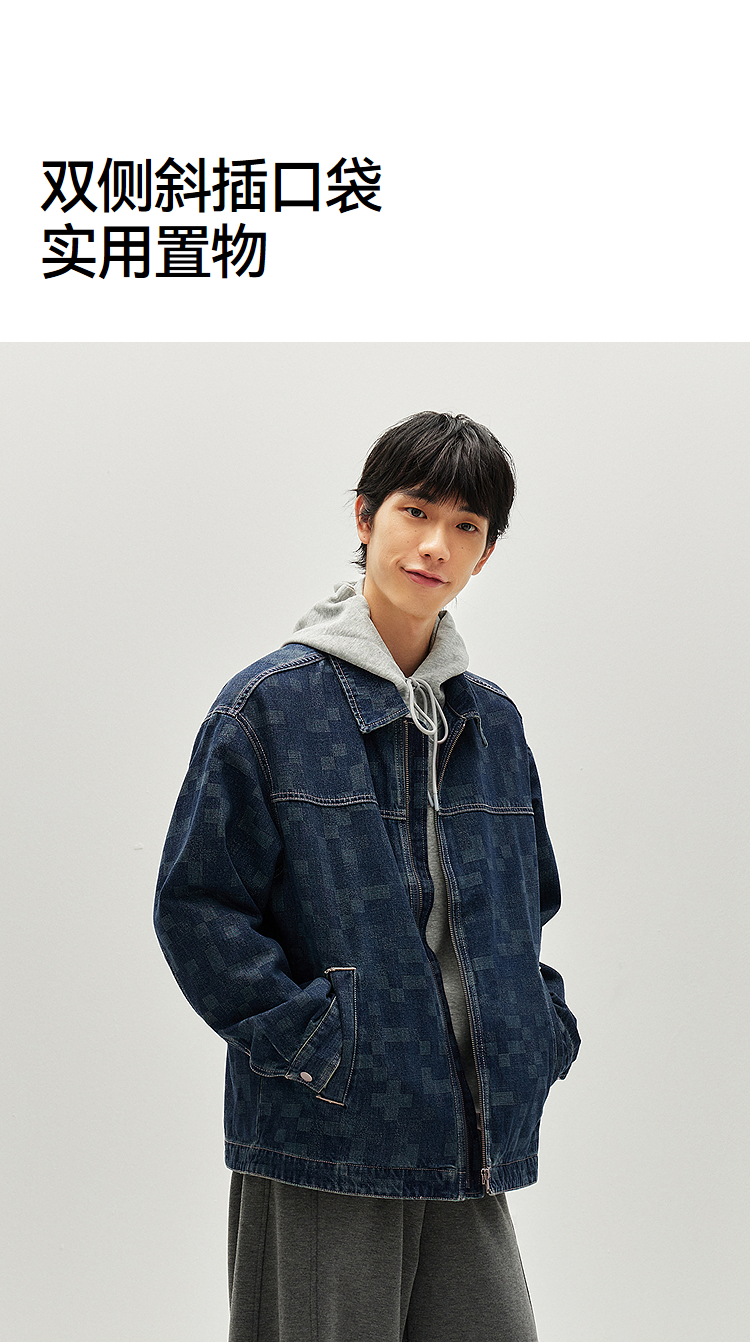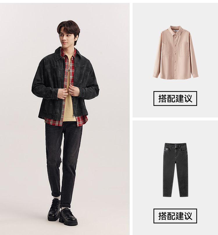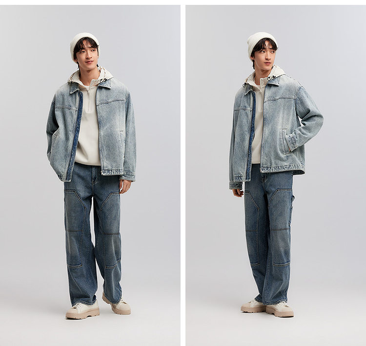森柔|森马夹克男春季复古牛仔外套小宽松舒适翻领上衣时尚流行潮
