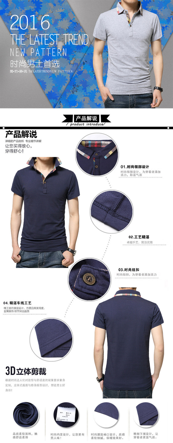【上衣男】新品男装夏季男士短袖纯棉t恤 韩版潮流男式休闲Polo衫纯色衣服男