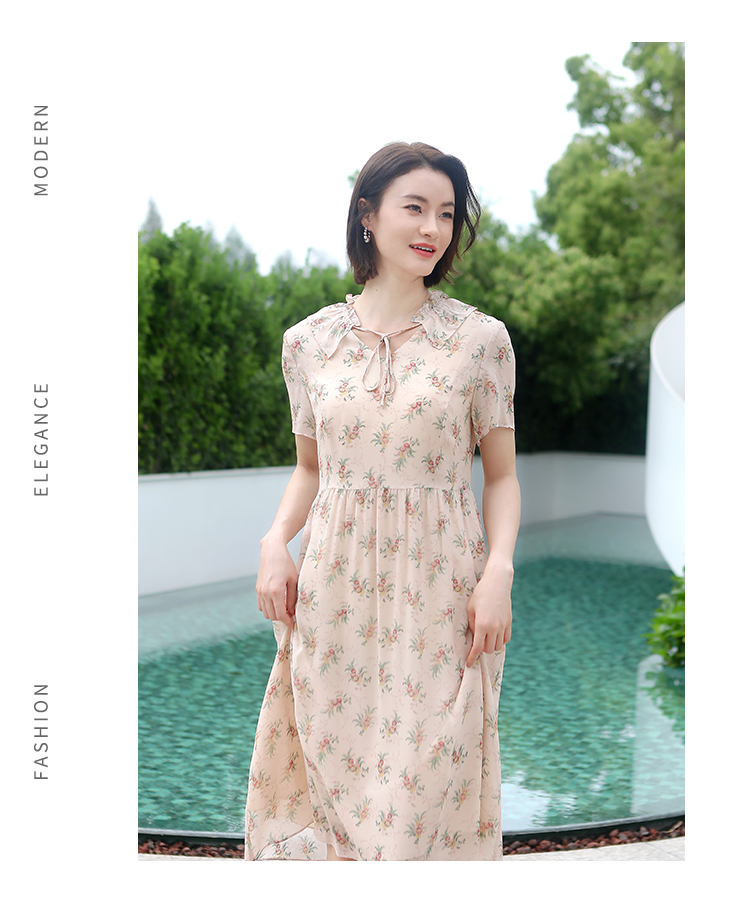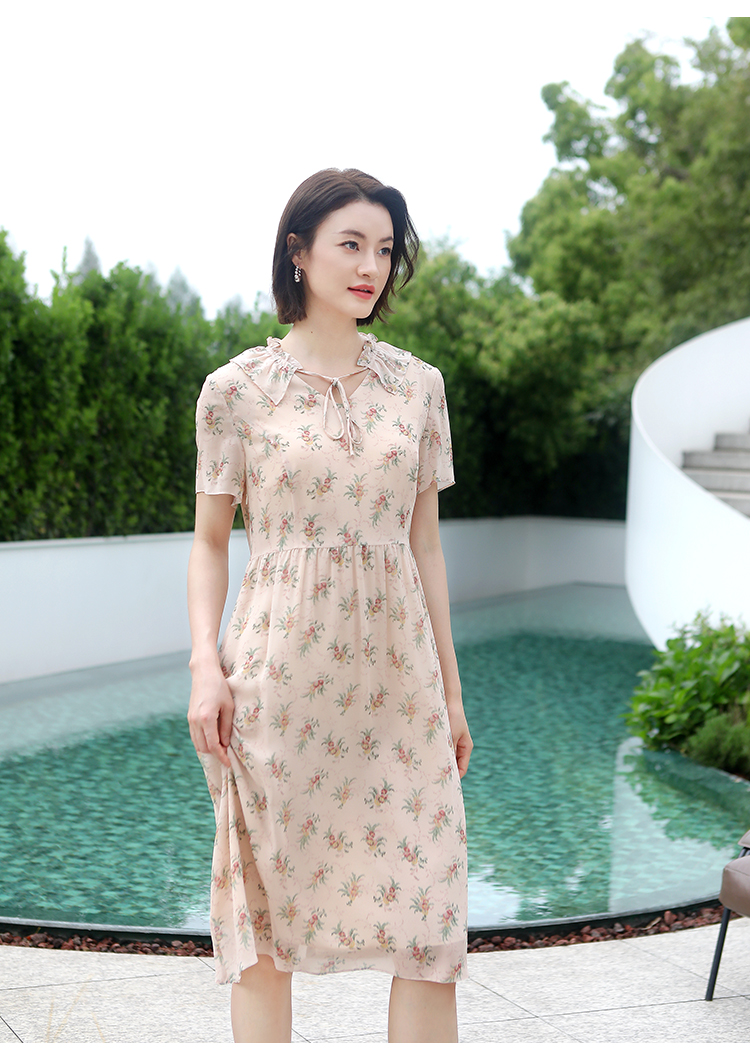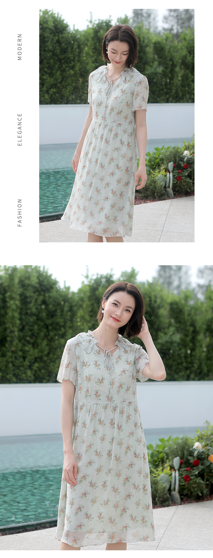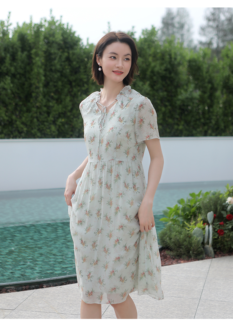 佐尔美夏季新款 优雅气质碎花桑蚕丝中长连衣裙女E32LS71