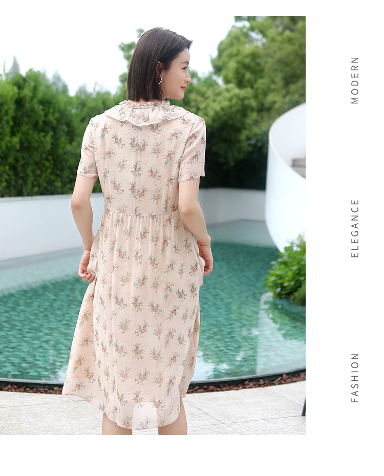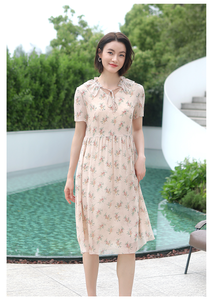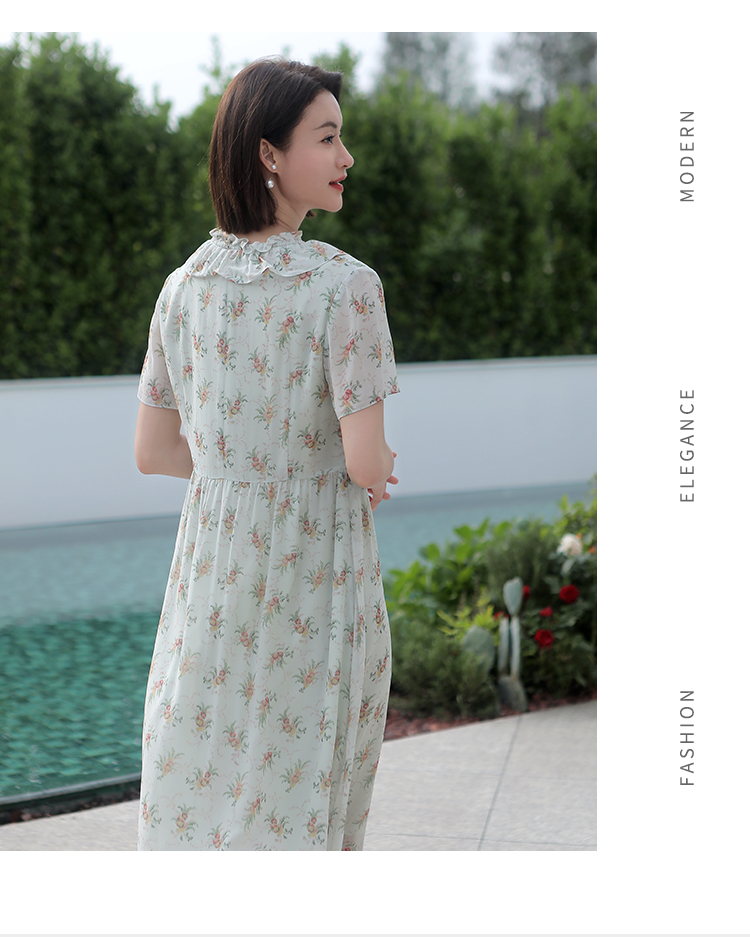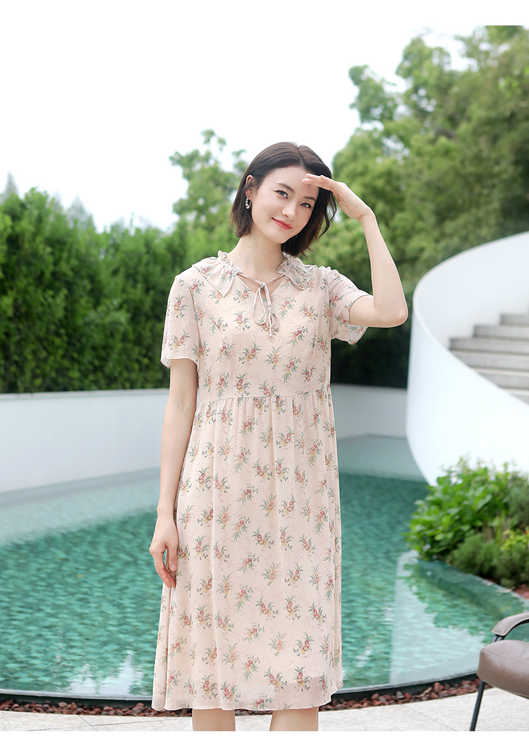 佐尔美夏季新款 优雅气质碎花桑蚕丝中长连衣裙女E32LS71