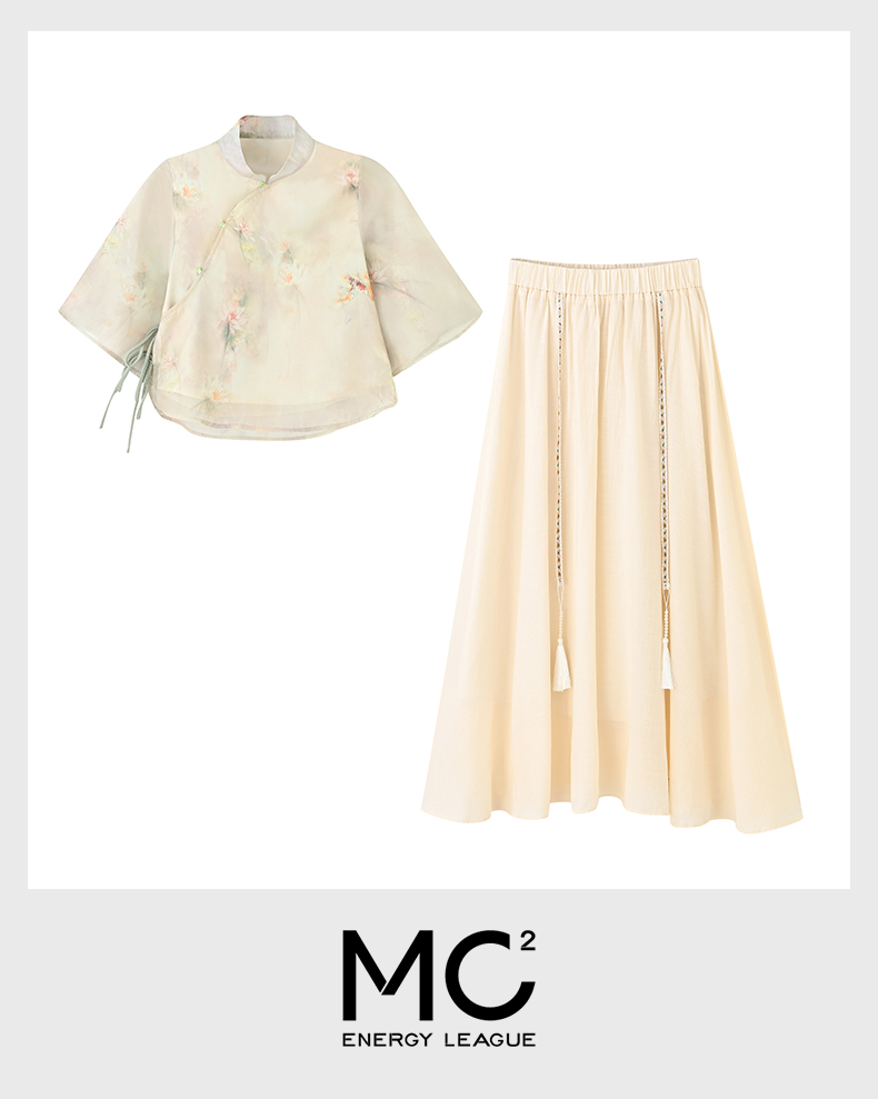 女装斜门襟雪纺印花上衣配半裙两件套-827S4221006