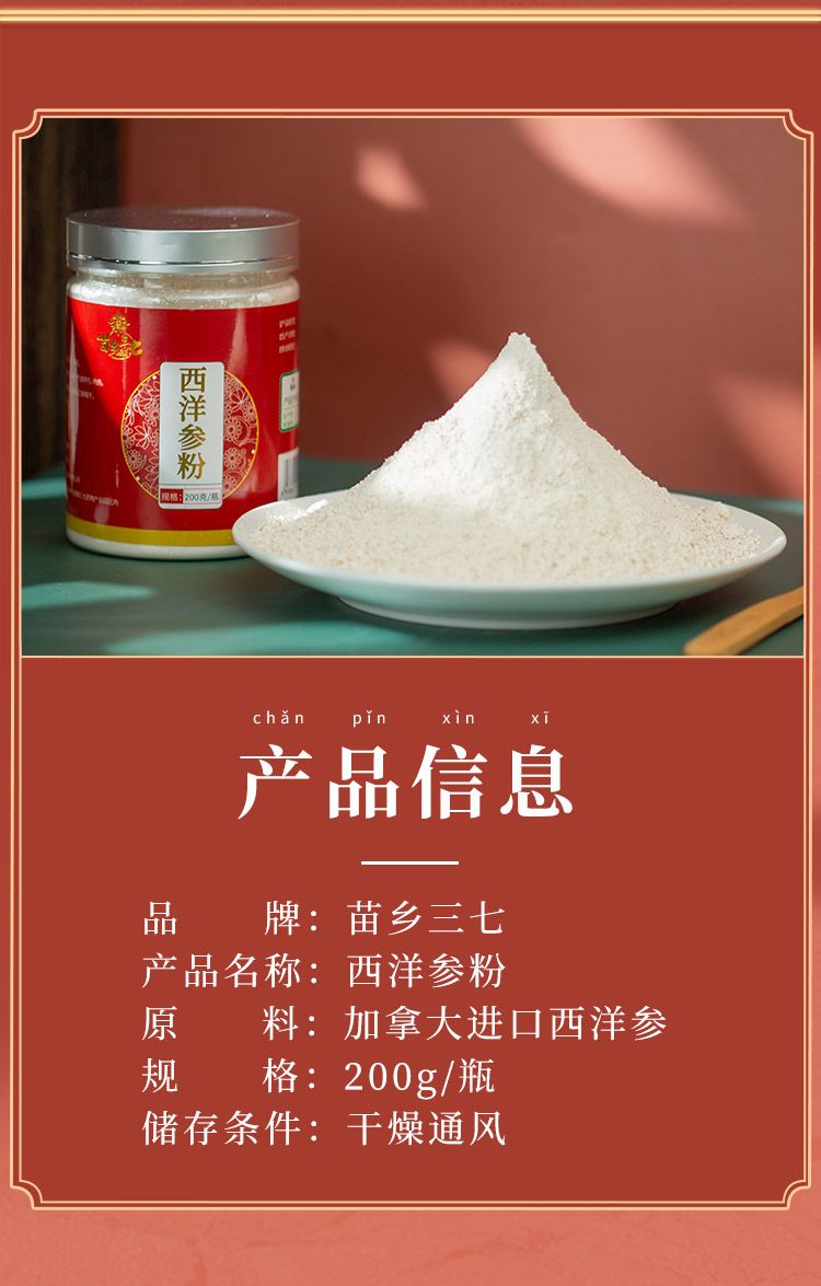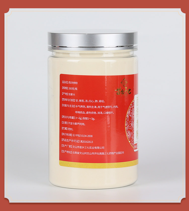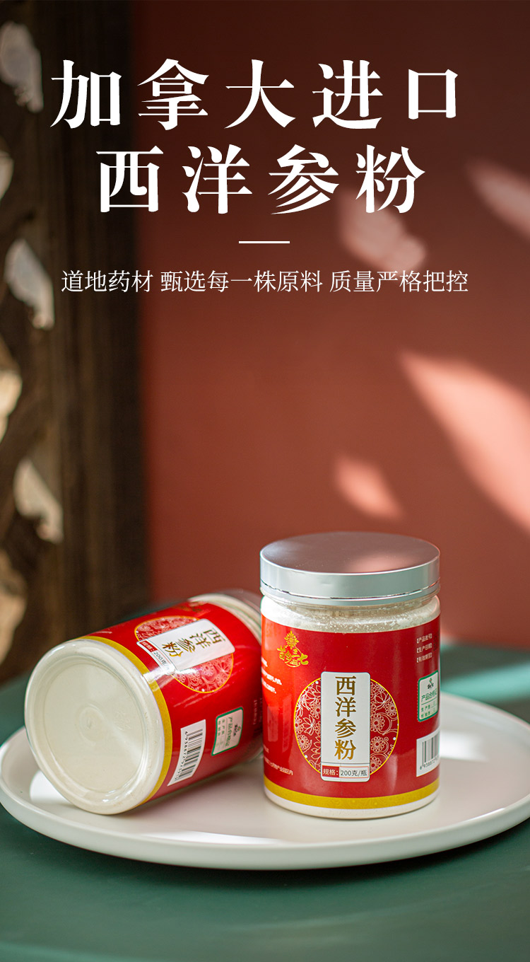 苗乡西洋参粉瓶装200克/瓶 加拿大进口西洋参粉 道地西洋参