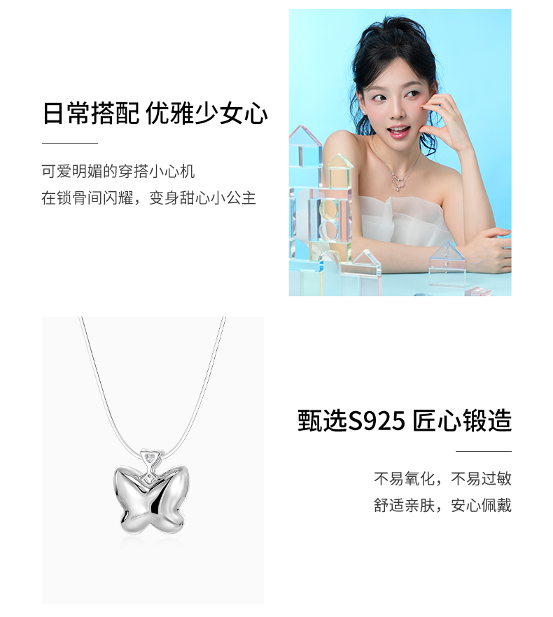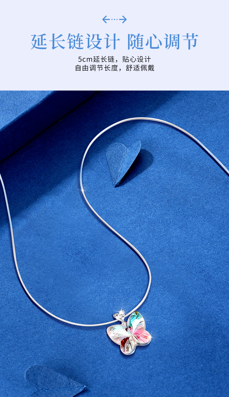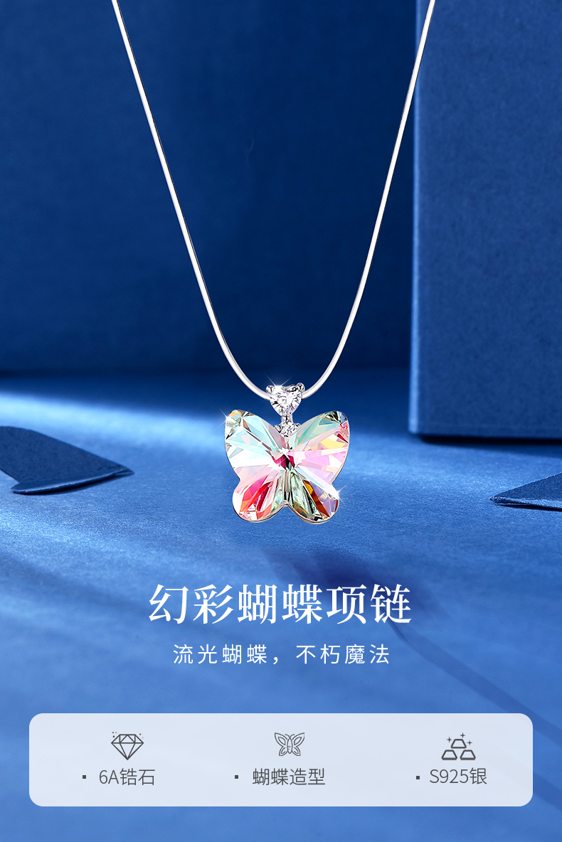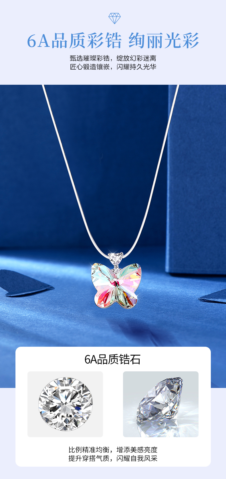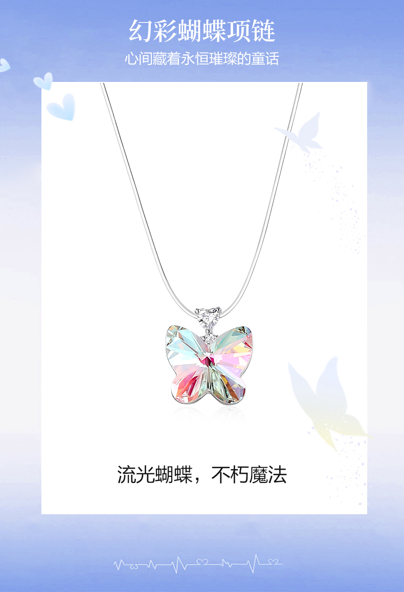 卡蒂罗/KADER 幻彩蝴蝶项链 光影系列星光蝴蝶闪闪蝶舞可调节锁骨链 炫彩锆石元气甜心纯银吊坠