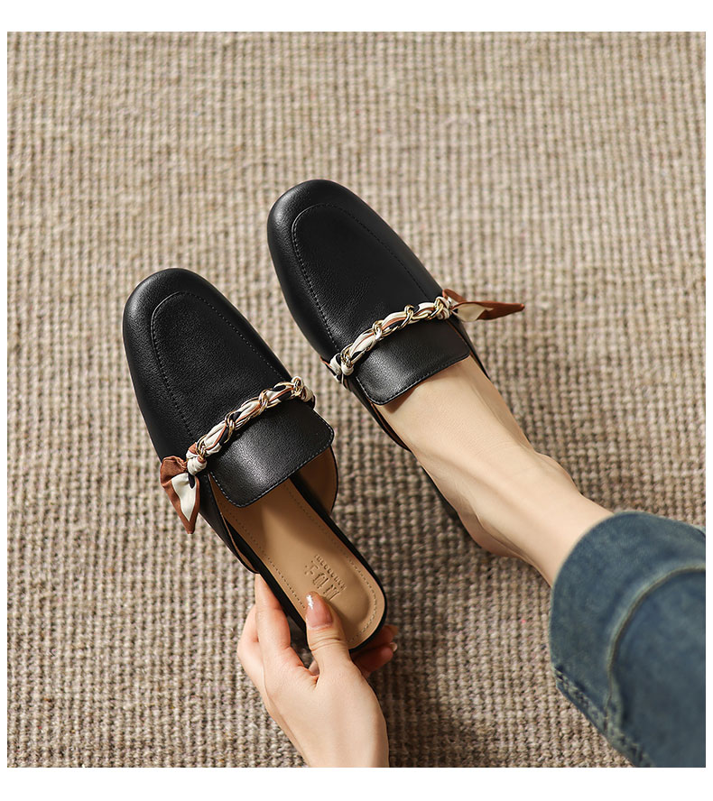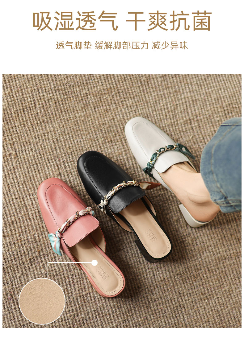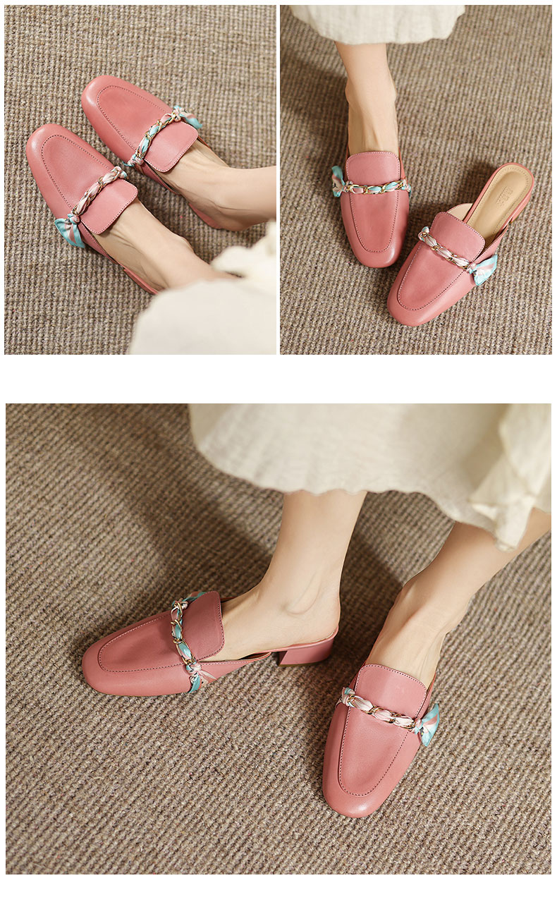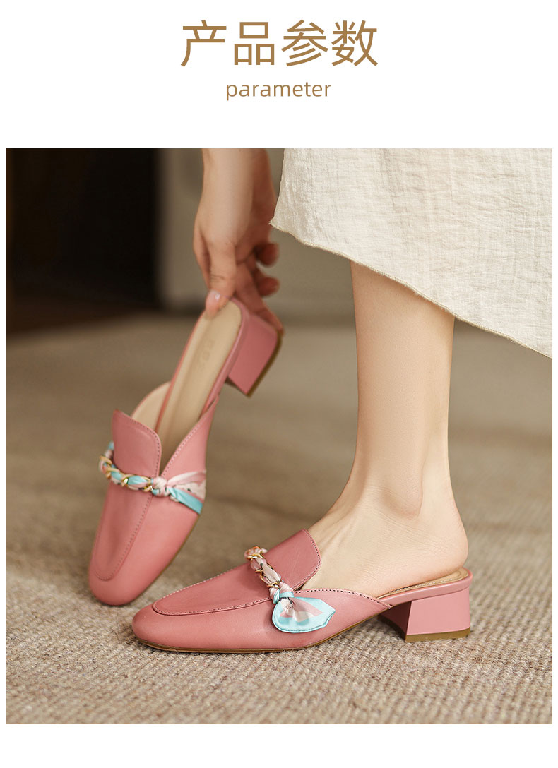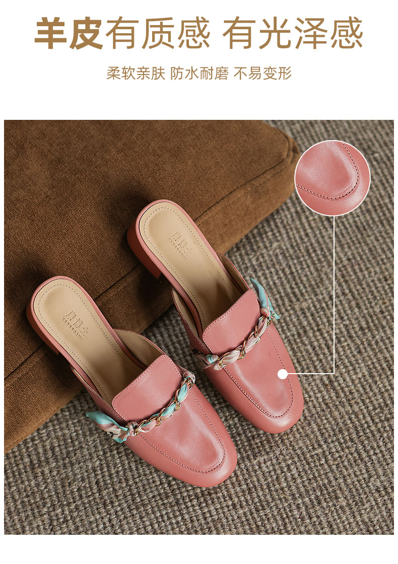 阿么手工女鞋推荐粉色百搭真皮穆勒拖鞋多巴胺2025新款包头拖4.5CM